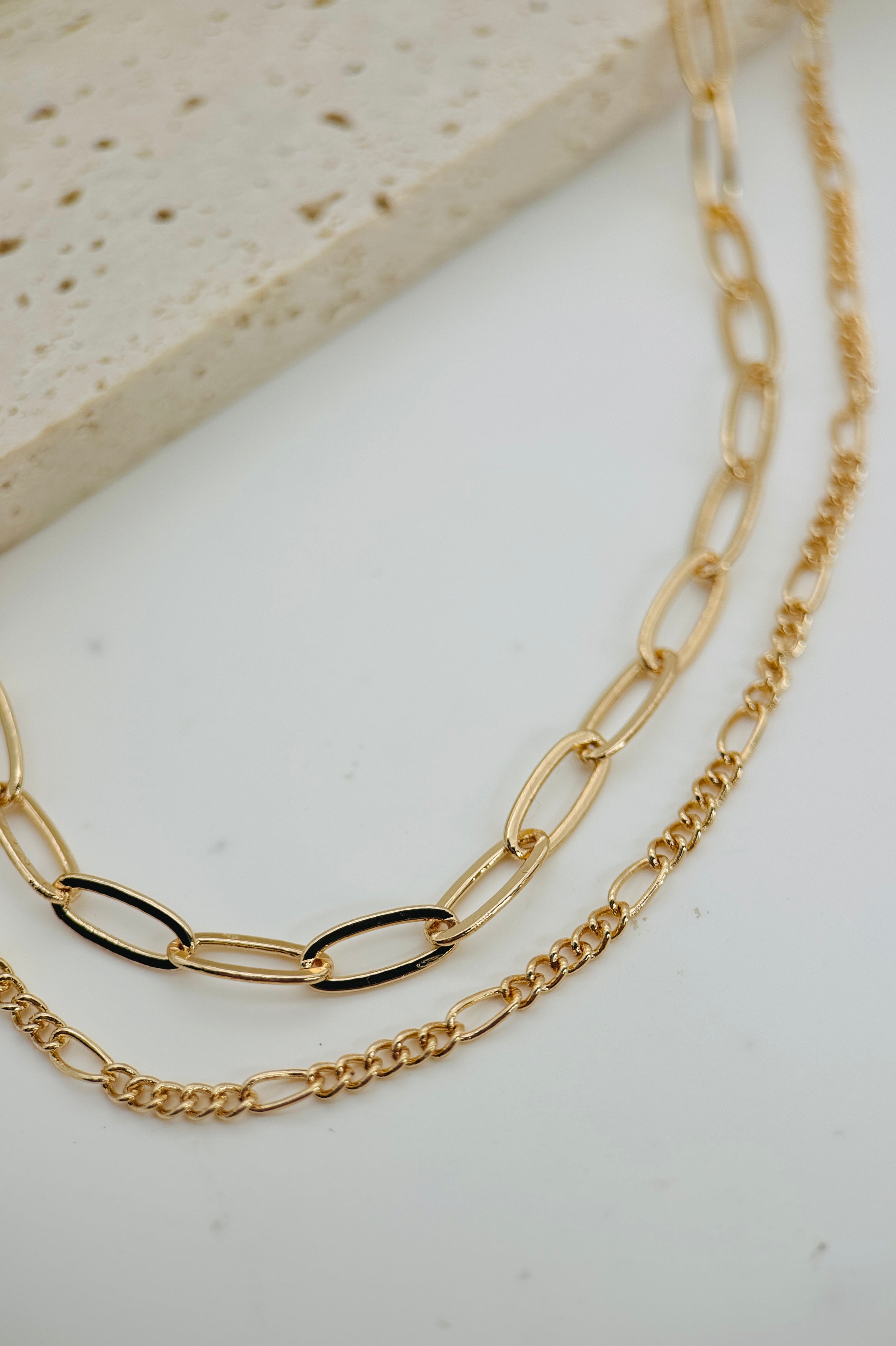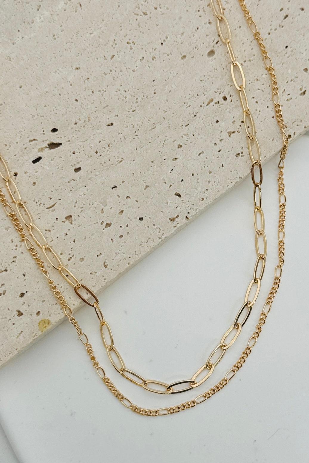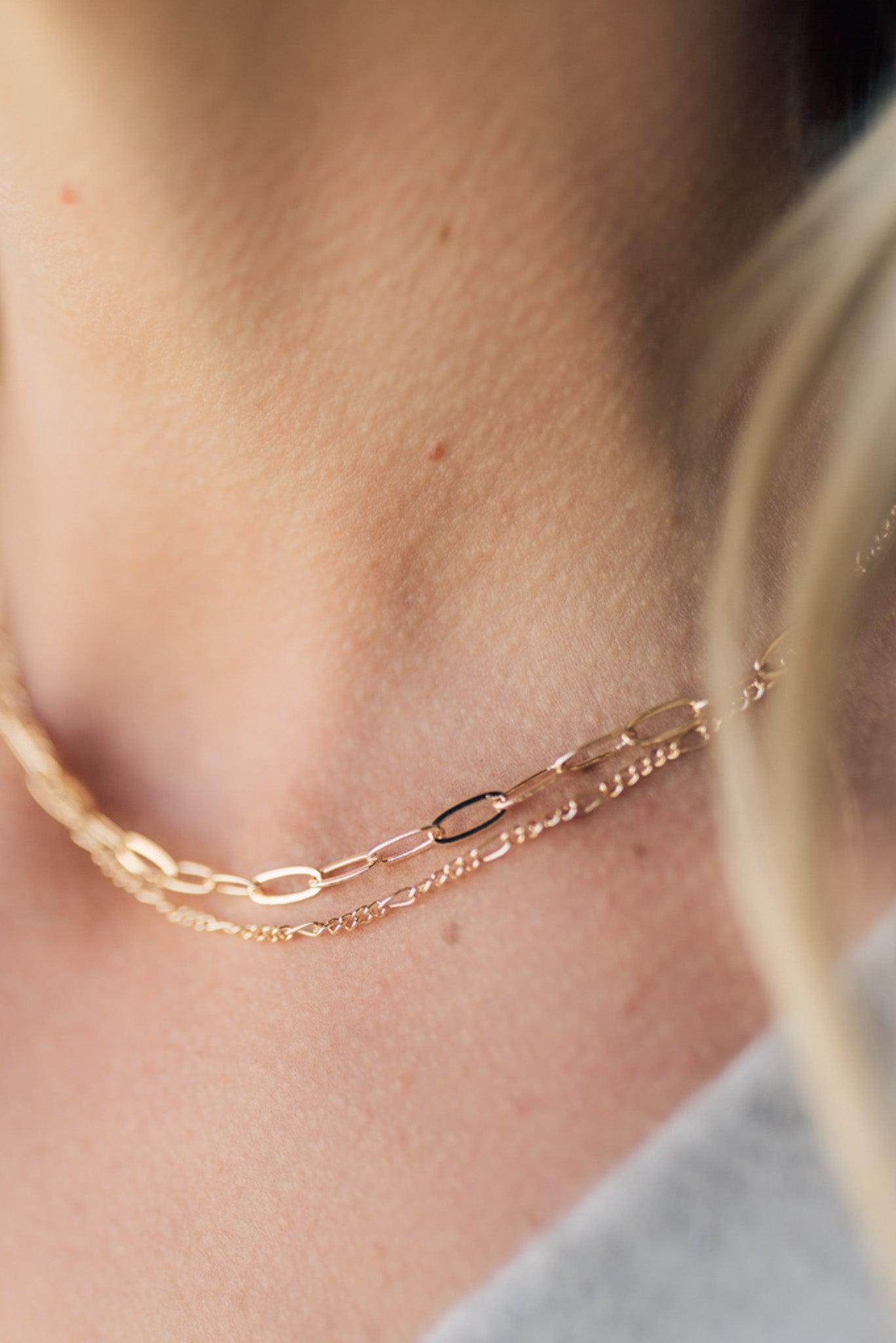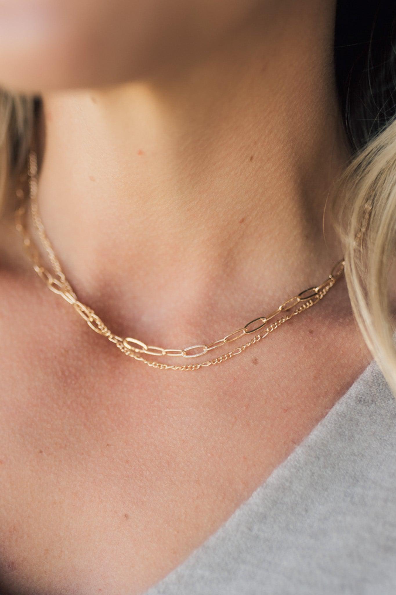 Sleek and modern, our Double Minimal Necklace features two interlocked layers of minimalist chain for a unique look. Perfect for any occasion, this timeless piece is sure to become a favorite.