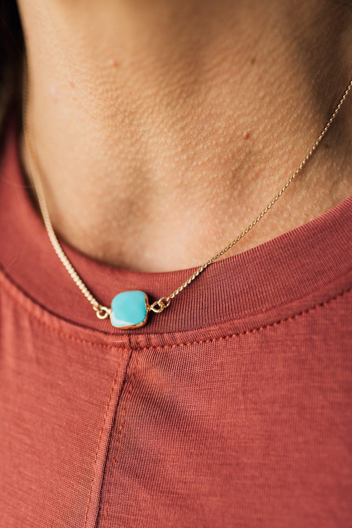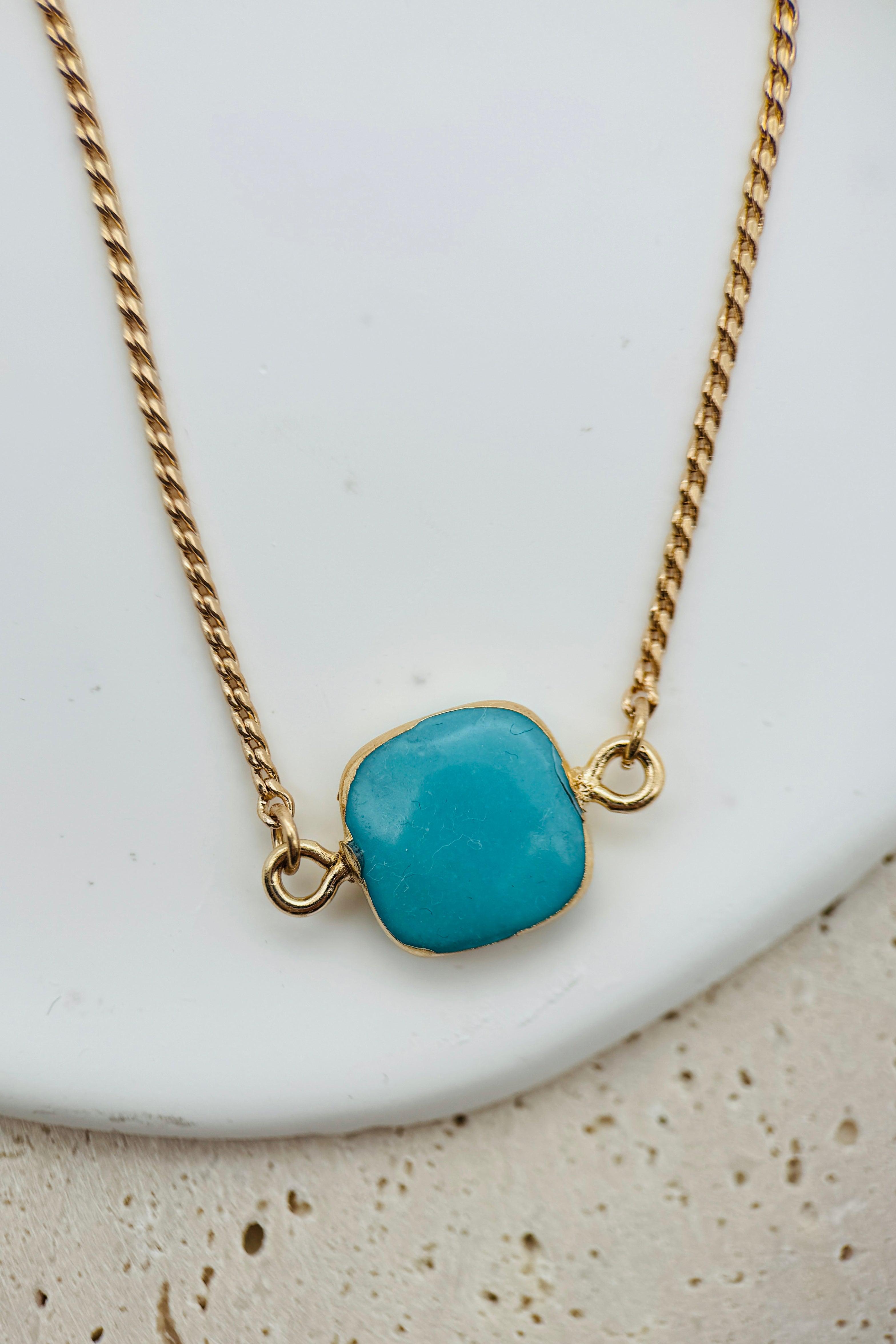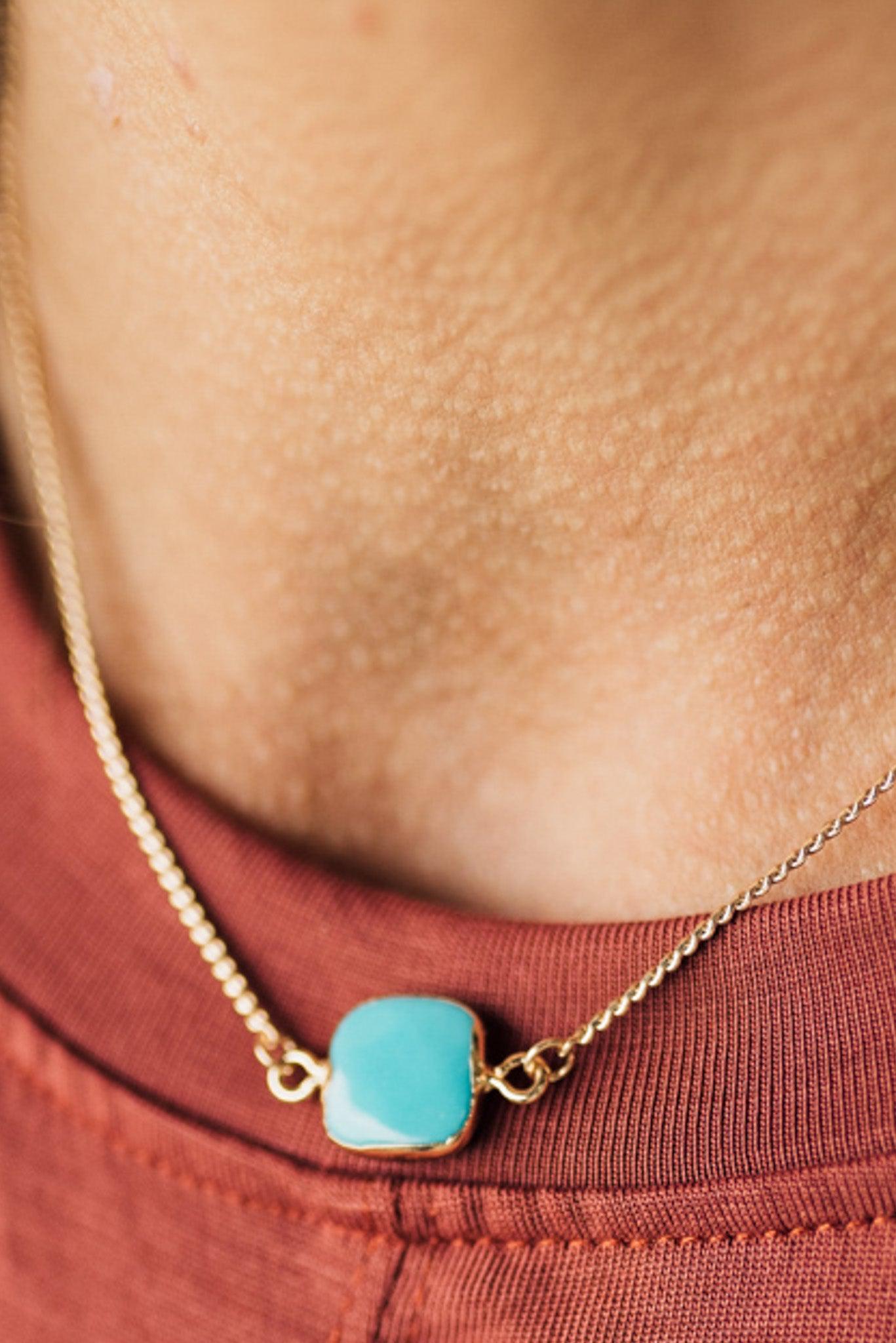 Rock your style with our Square Stone Charm Necklace! This playful accessory features a square semi precious stone, adding a touch of quirk to any outfit. Perfect for those who don't take themselves too seriously, this necklace is sure to make a fun and unique statement.