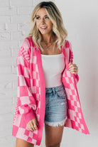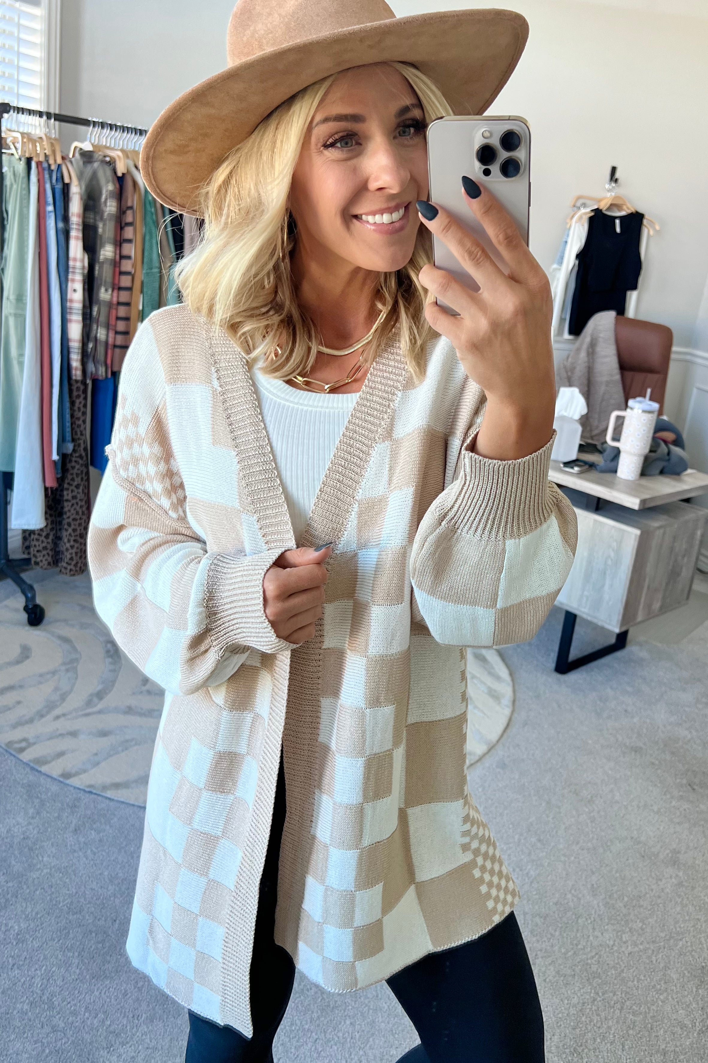 This Checked Out Cardigan is the perfect choice for fashionable and functional layering! Made from high quality and durable materials, it features a trendy check pattern with ribbed trim for extra style. This boyfriend fit cardigan is a must-have for any wardrobe.