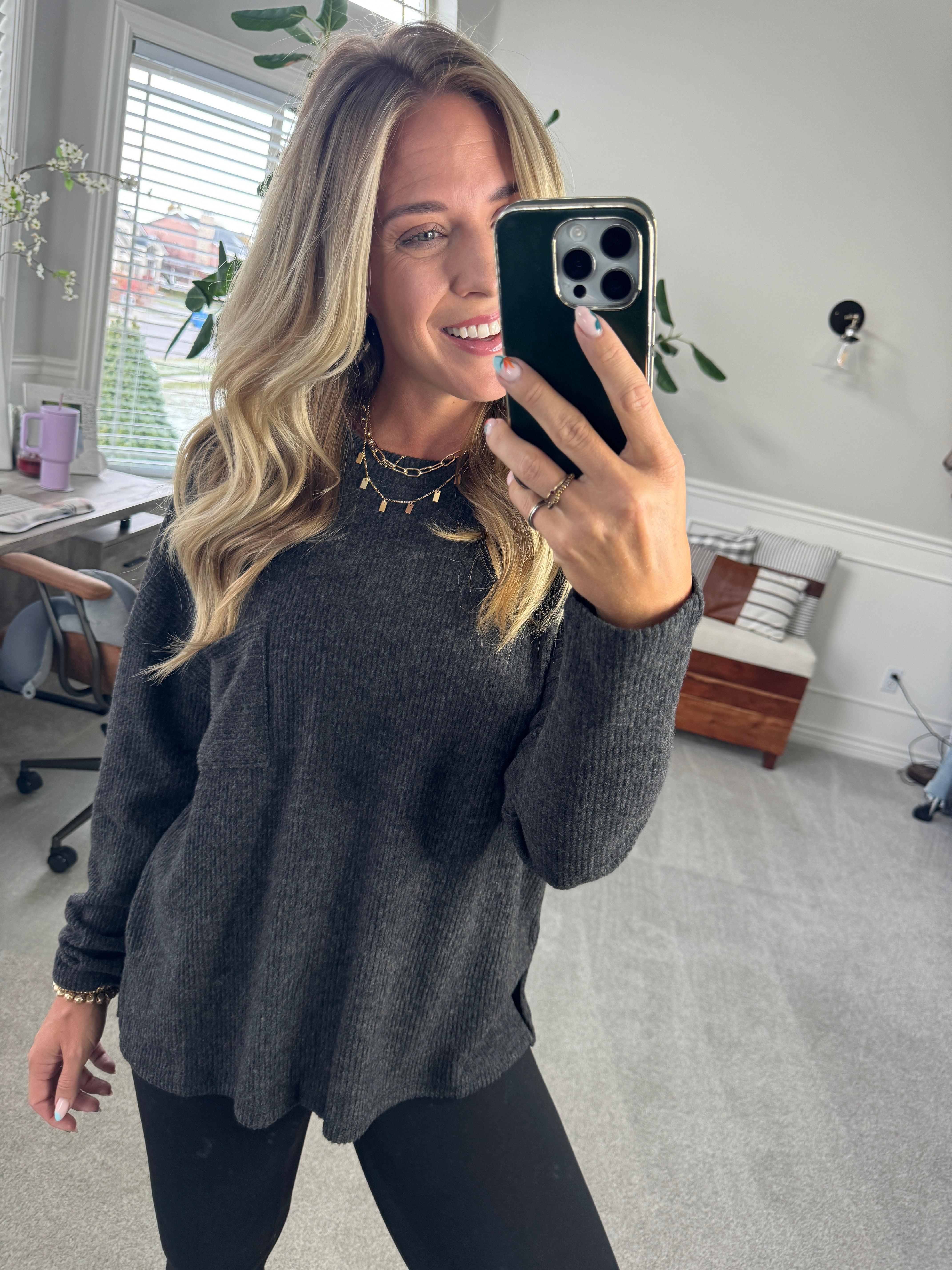 Upgrade your sweater game with our Brushed Ribbed Pocket Tee. The brushed finish and ribbed texture provide a soft and worn in feel. The drop shoulder and slim sleeve add a trendy touch, while the left front chest pocket adds convenience. With a side slit and straight hemline, this tee is both stylish and comfortable.