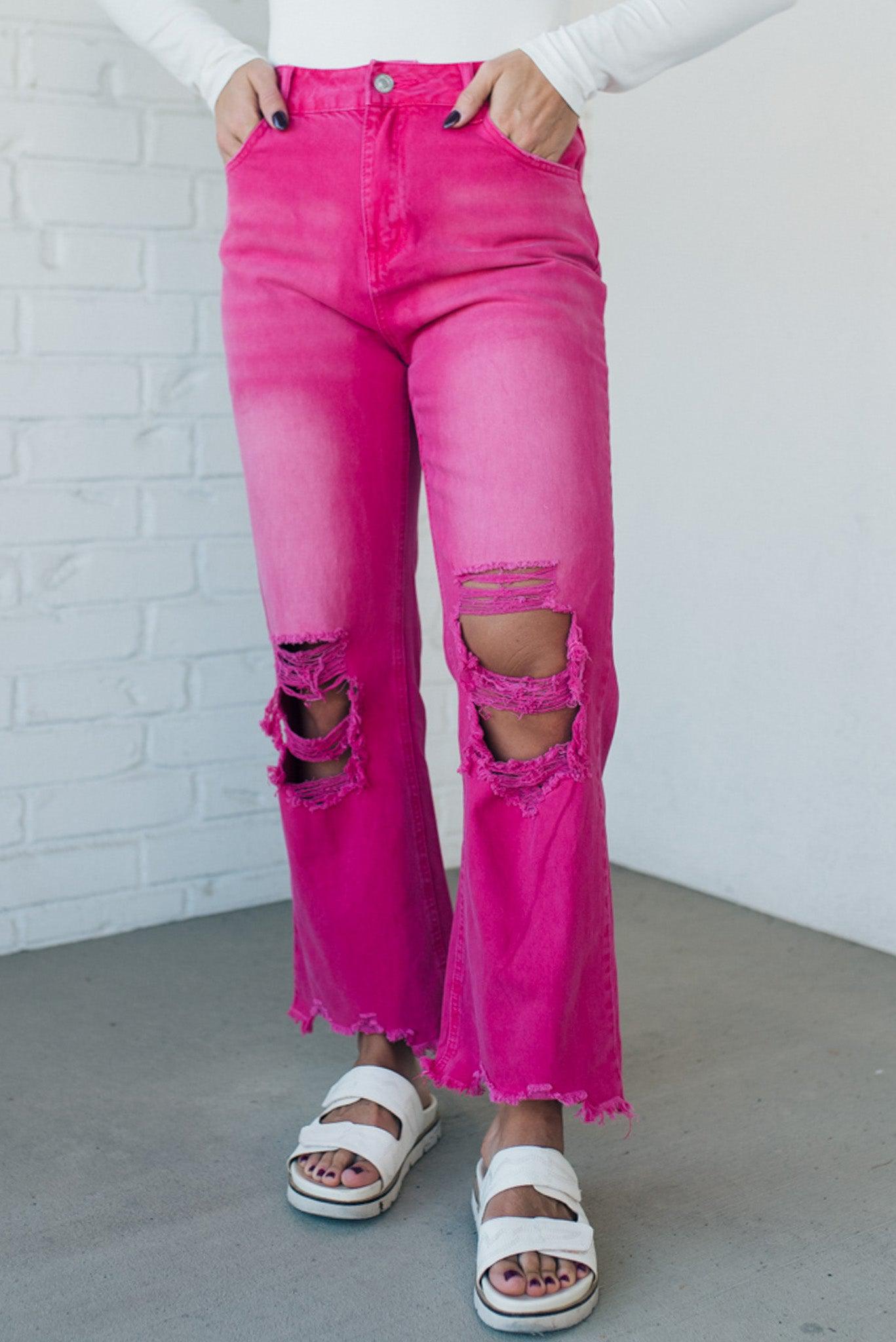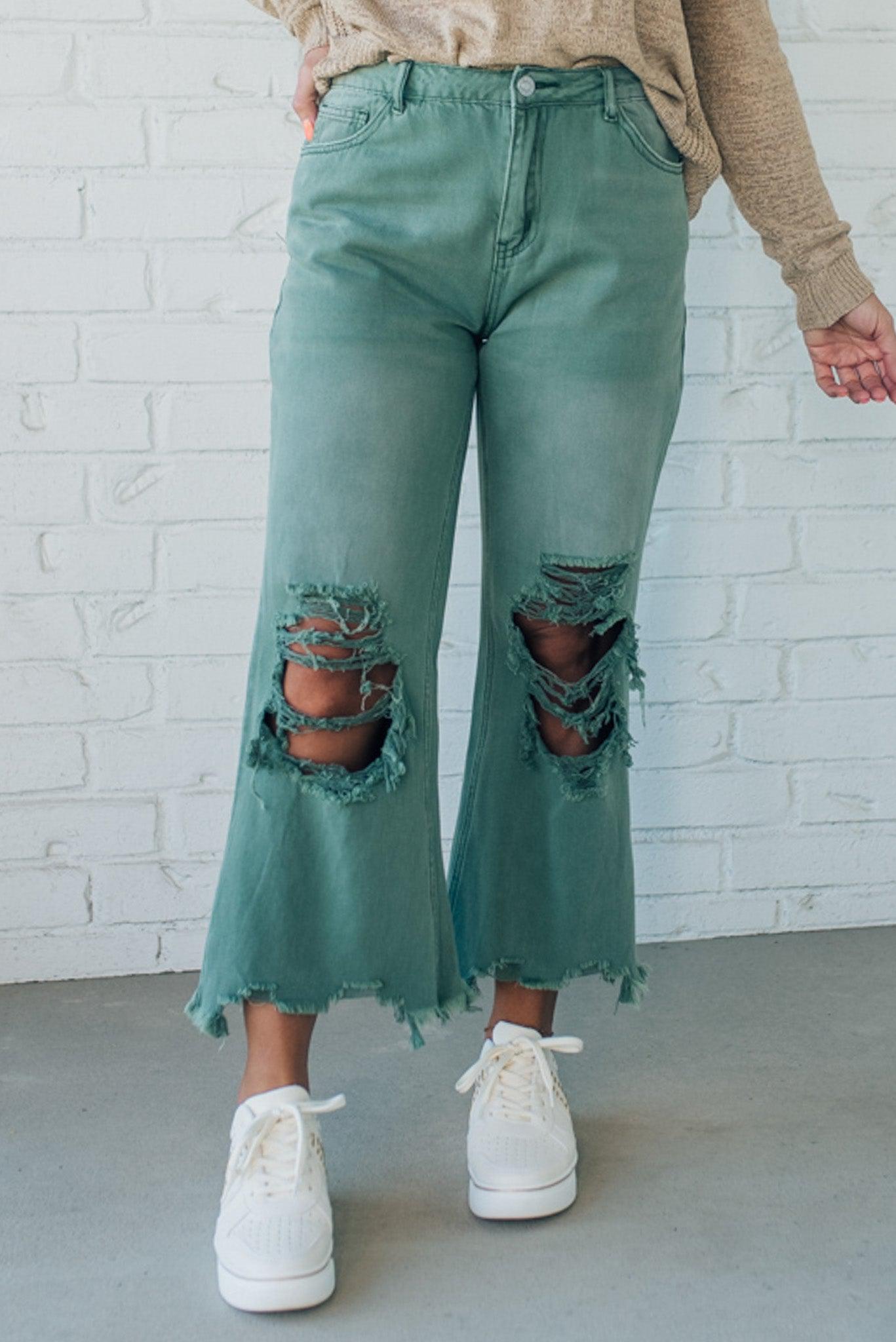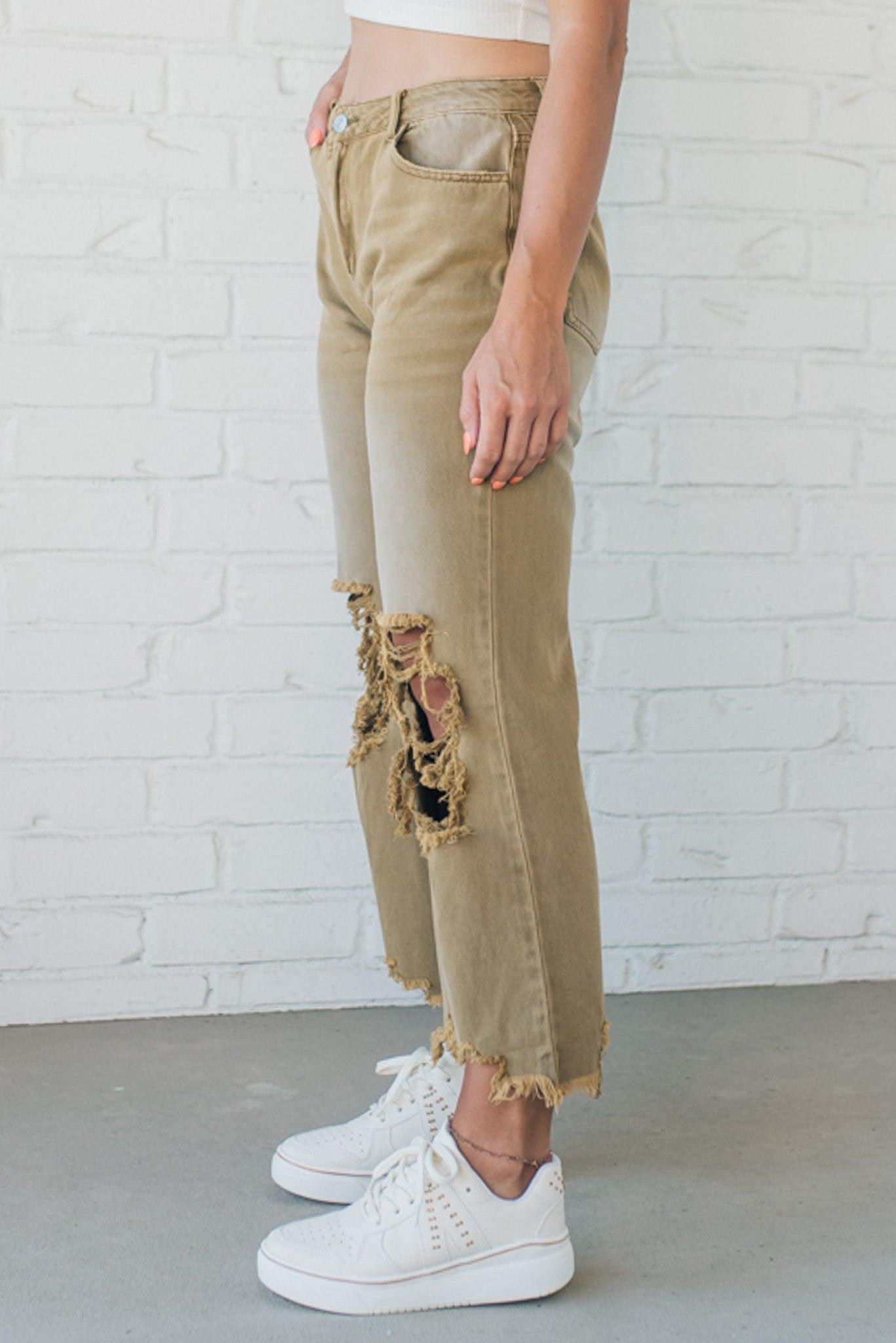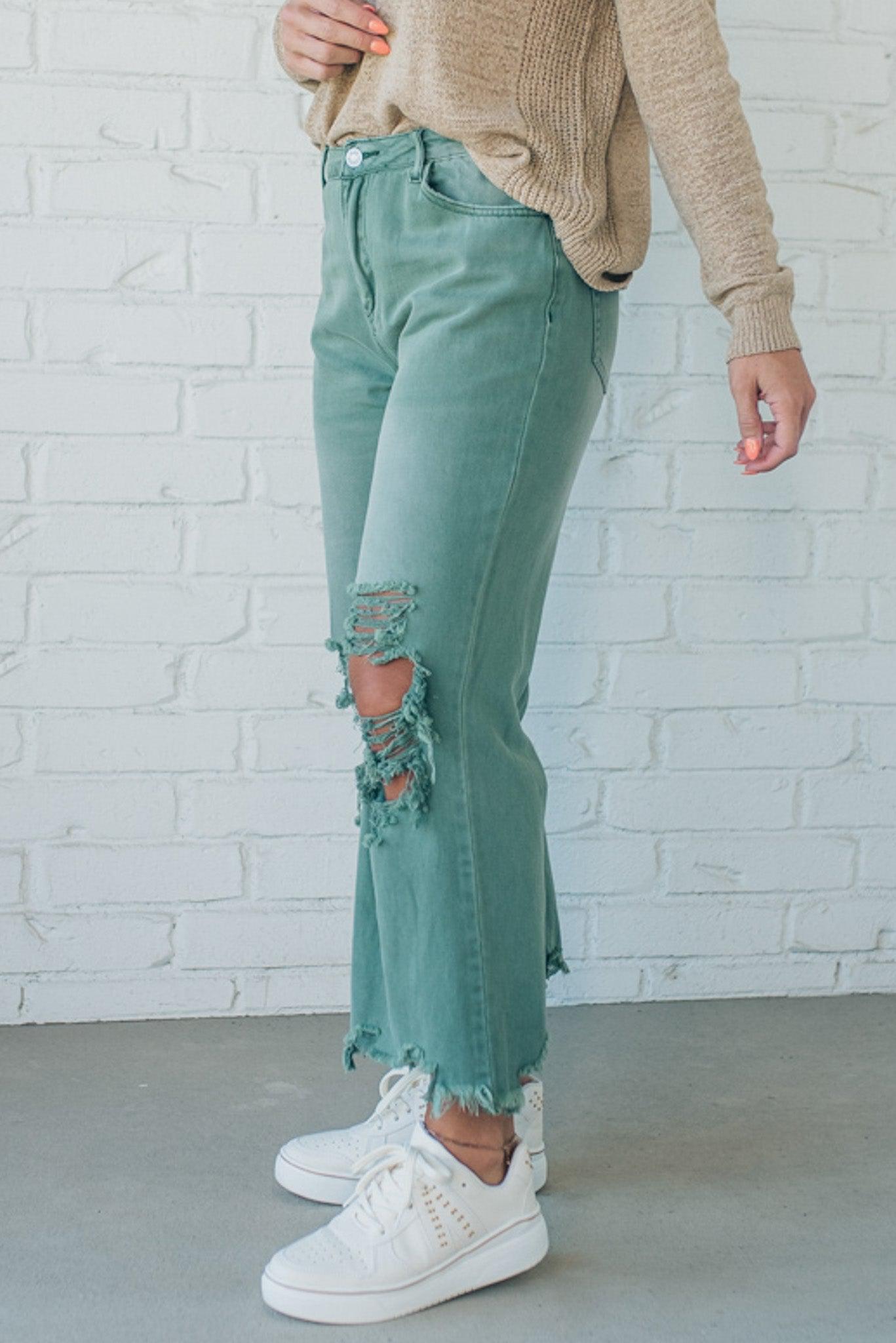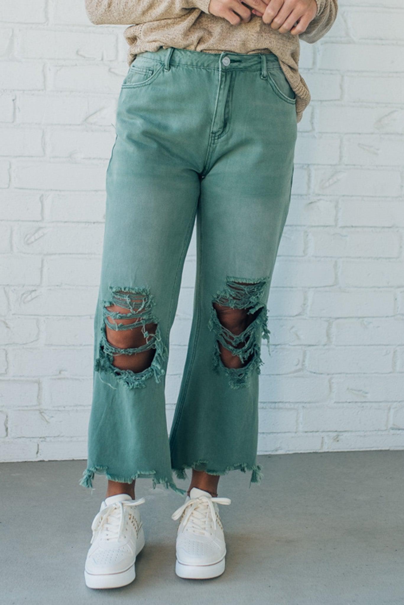Riah Distressed and Washed Wide Leg Pants - BIBI