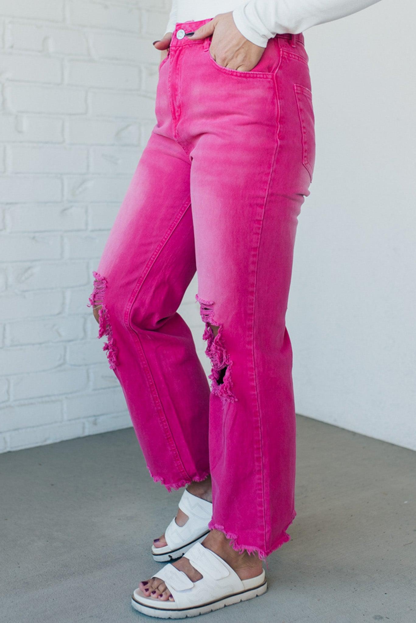 These Riah Distressed and Washed Wide Leg Pants are designed with style and comfort in mind. Features include a wide leg silhouette, destroyed open knee, torn edge, mid ride fit, and roomy finish. Ideal for a day at the office or a night out on the town for an edgy look!