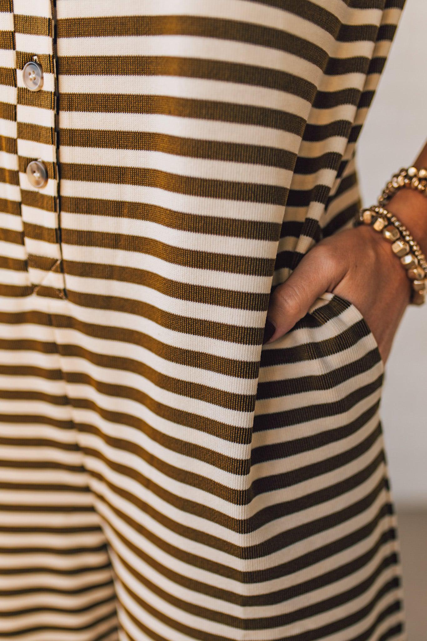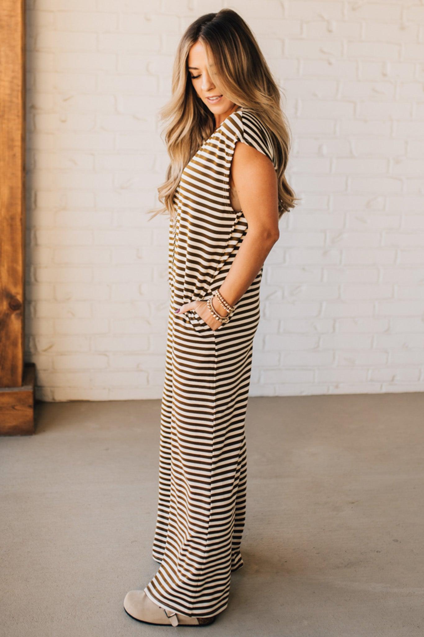 Unleash your fun and carefree side with the Charly Striped Jumpsuit. Made with stripe knit fabric and featuring a button closure and drop shoulder design, this jumpsuit offers a comfortable and playful look. With side pocket details and a loose fit, you'll be ready to take on whatever the day brings with a wide leg style.