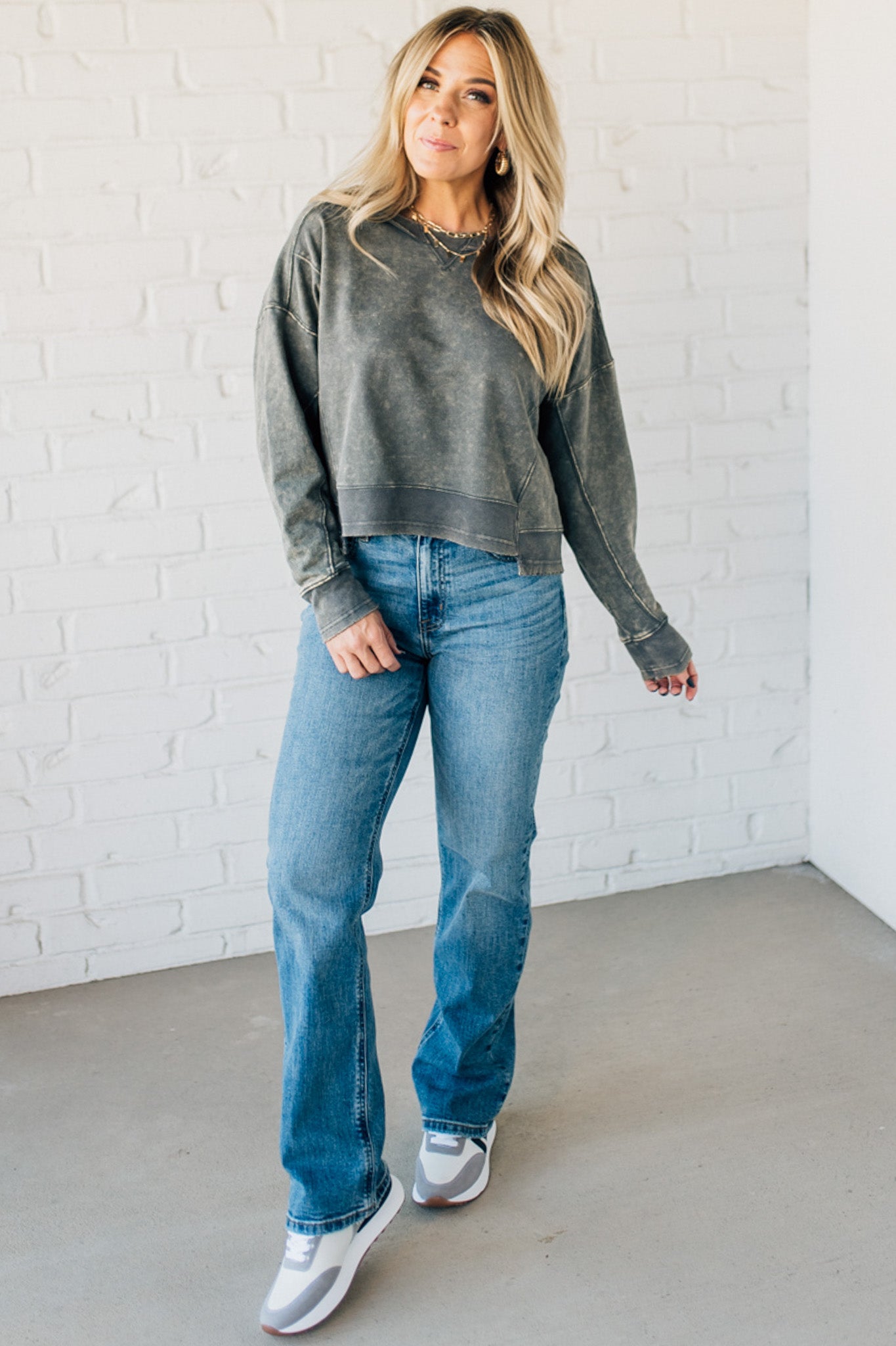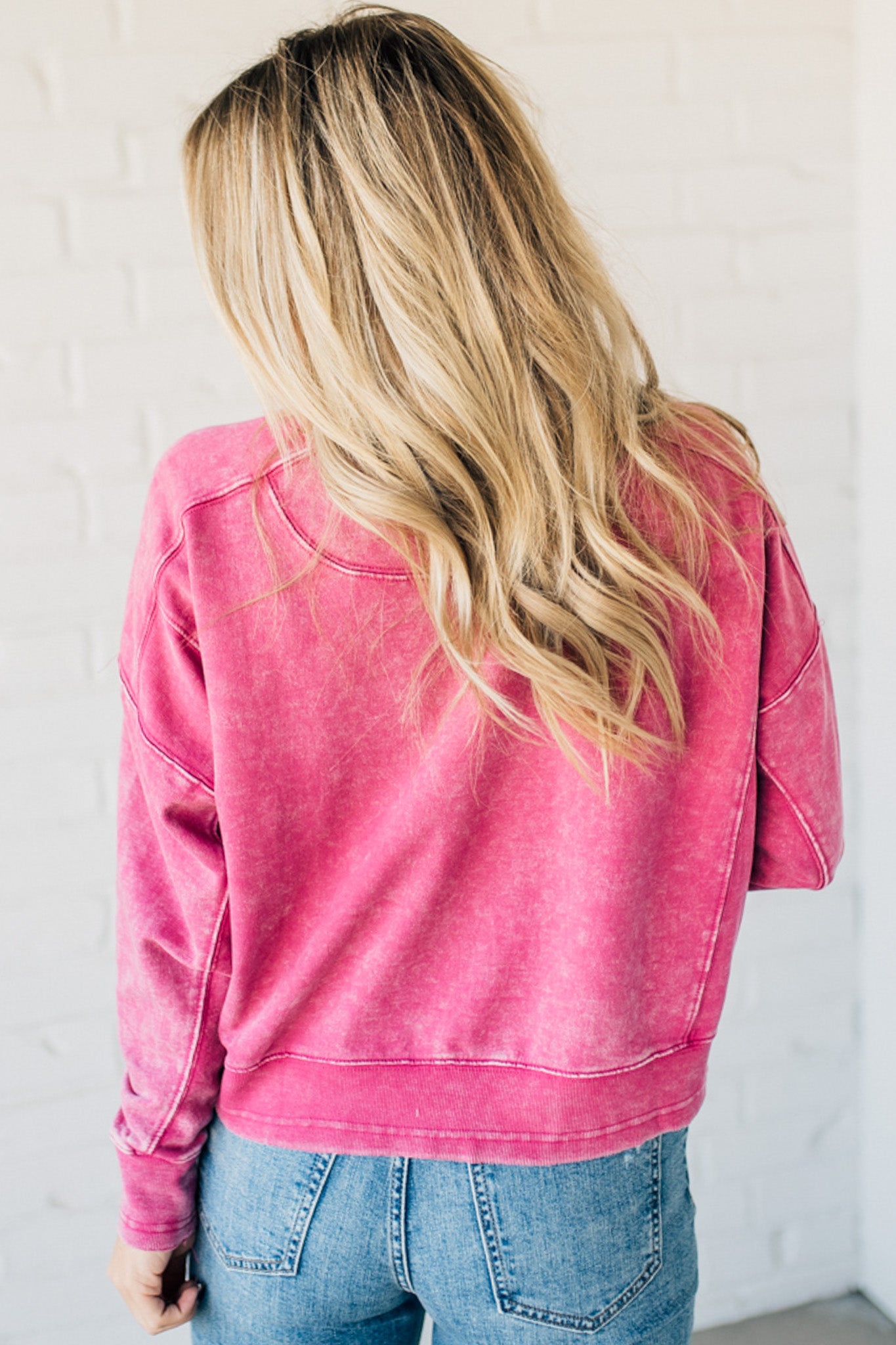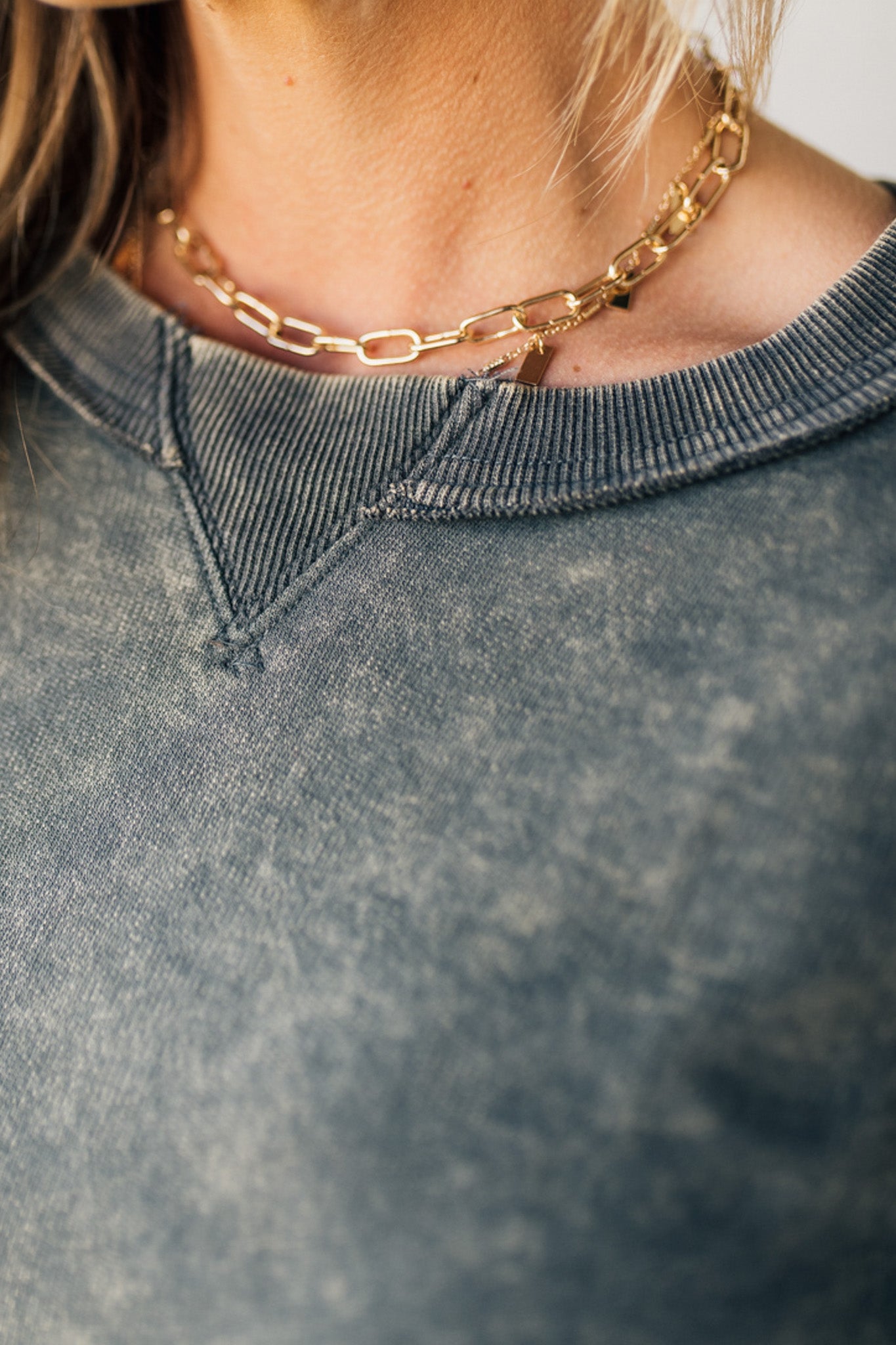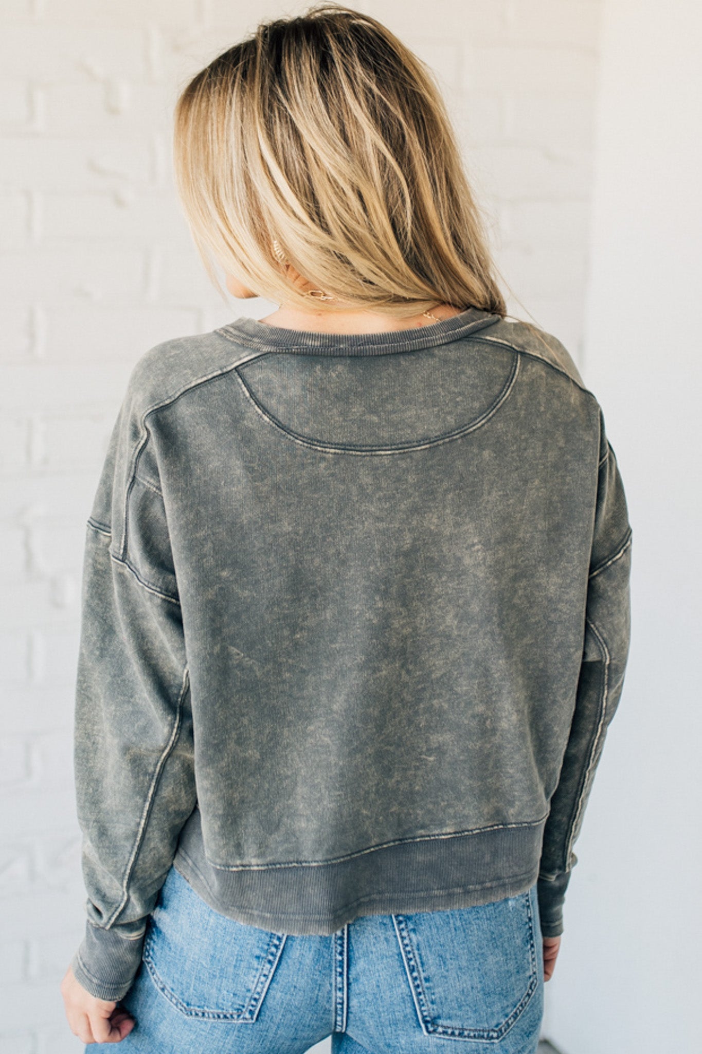 Add some edge to your wardrobe with the Everly French Terry Pullover. Featuring a unique acid wash and raw edge details, this waist-length pullover is perfect for any fashion-forward individual. Its uneven hem adds a touch of unconventional flair. Get ready to rock this versatile and trendy piece!