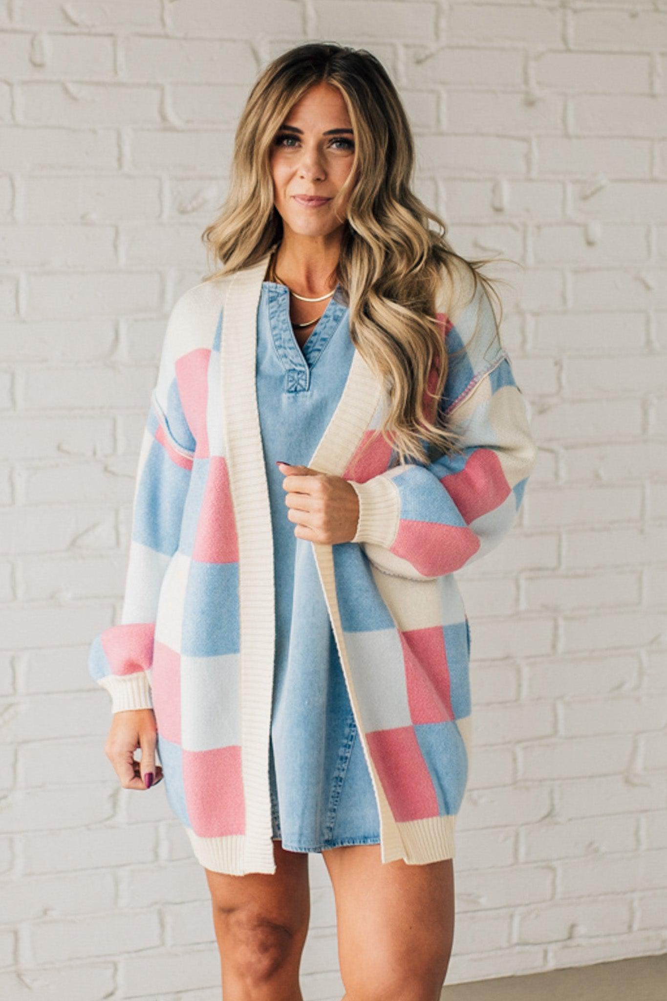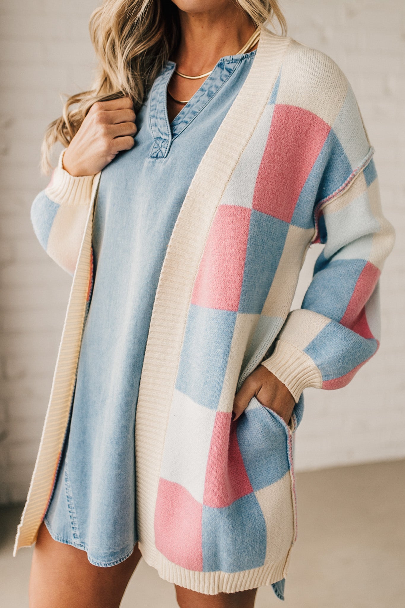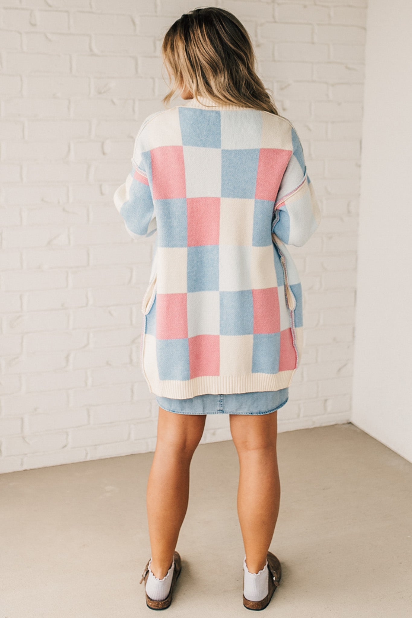 Unleash your playful side with the Isla Checkered Cardigan. This knitwear showcases a timeless, versatile checkered pattern for endless styling options. The relaxed, drop shoulder silhouette and exposed seams add a modern and artisanal touch, while ensuring comfort. Elevate your wardrobe with this quirky and cozy piece.