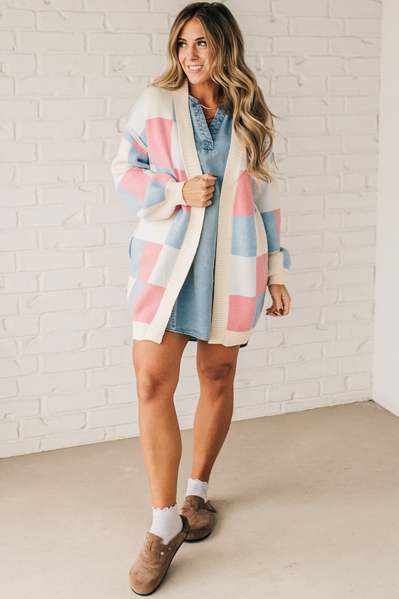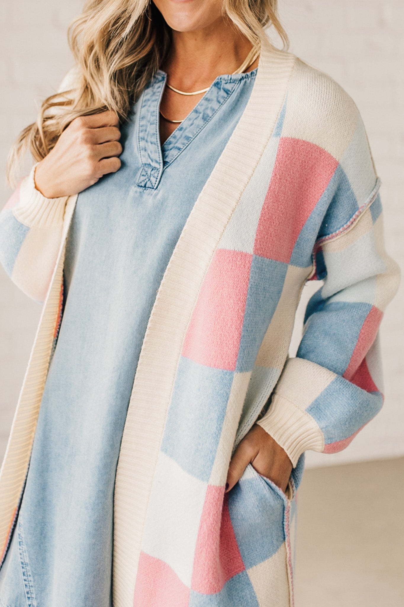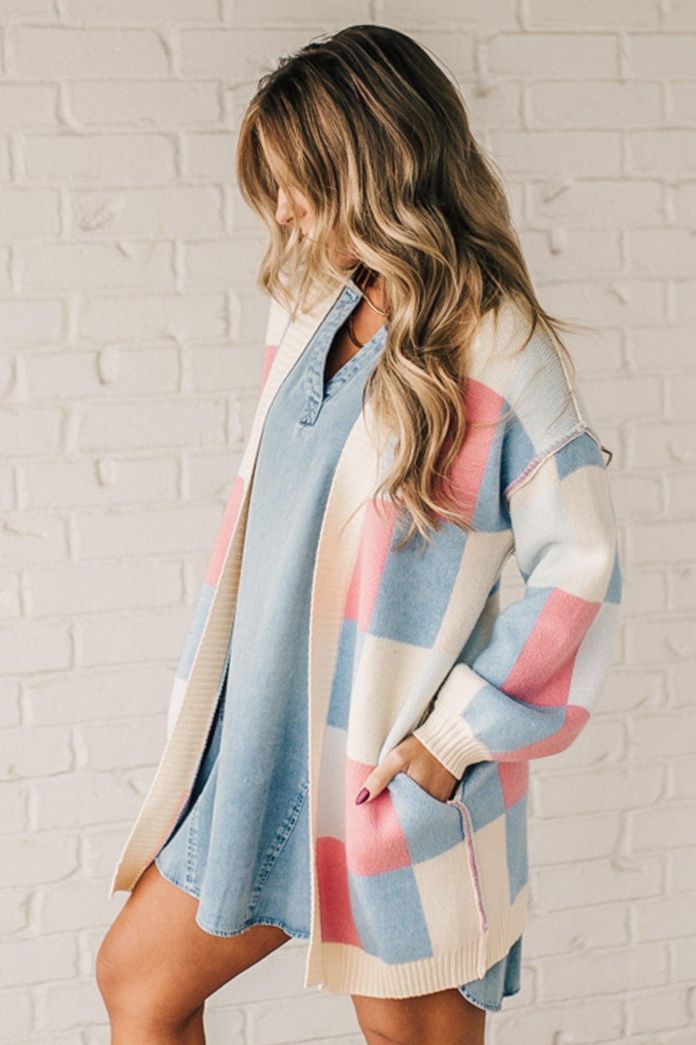 Unleash your playful side with the Isla Checkered Cardigan. This knitwear showcases a timeless, versatile checkered pattern for endless styling options. The relaxed, drop shoulder silhouette and exposed seams add a modern and artisanal touch, while ensuring comfort. Elevate your wardrobe with this quirky and cozy piece.