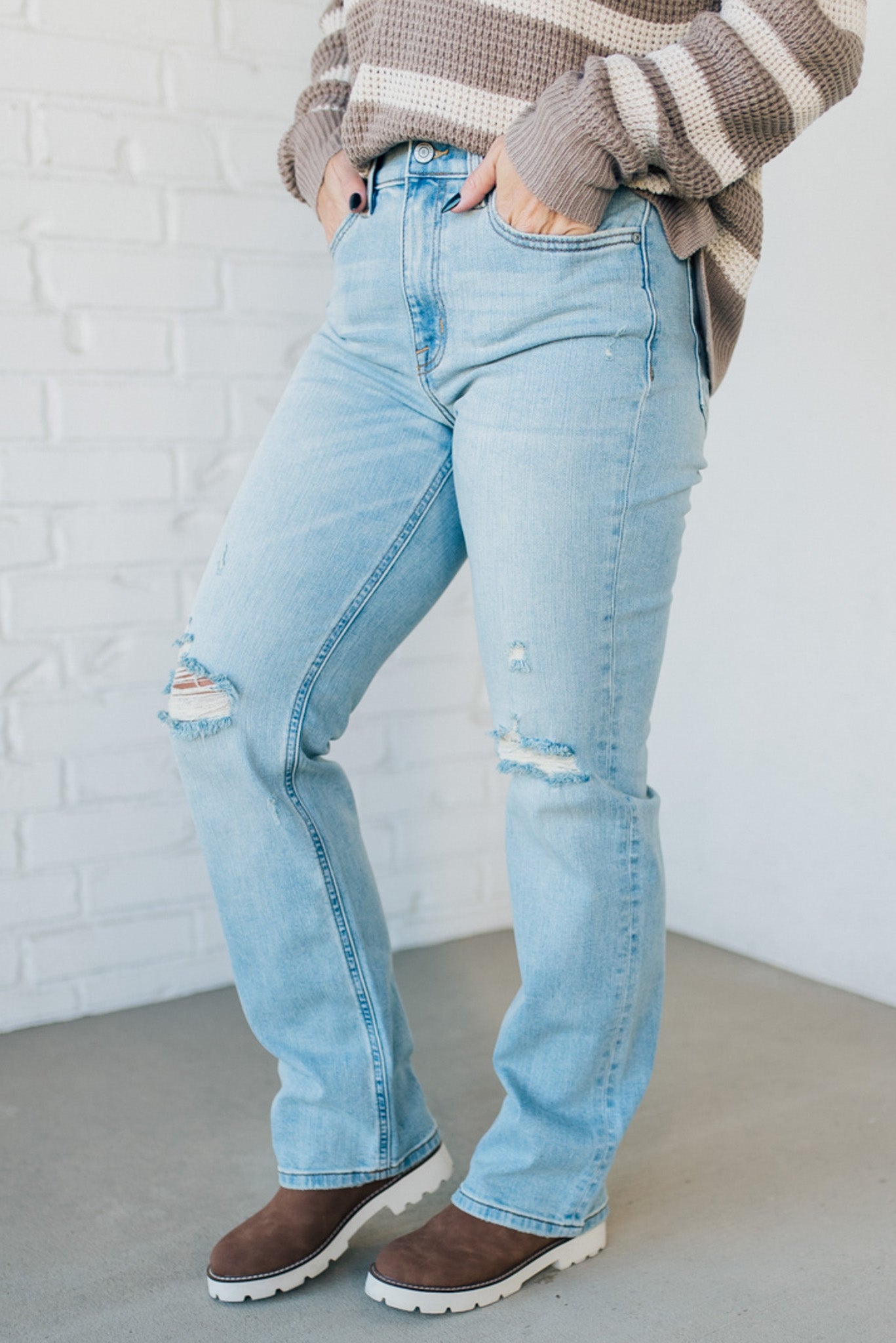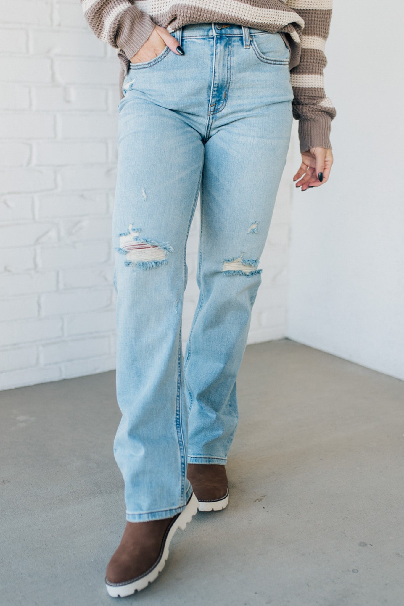 Get ready to rock the dad jean trend with our Maverick High Rise Dad Jeans! These relaxed fit straight jeans come in a light wash with fading, whiskering, light tinting, and slight distressing for that effortlessly cool look. The five-pocket design and belt loops provide both style and functionality, while the hidden zip fly with button closure keeps it sleek. With an 11 inch high rise and 31 inch inseam, these jeans offer a loose fit from thigh down for ultimate comfort. Say goodbye to boring jeans and hello to the ultimate cool dad look!