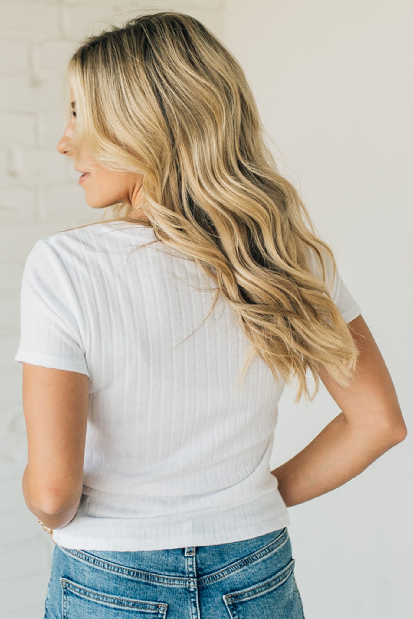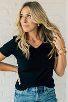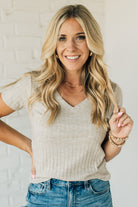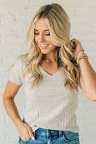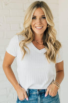 Perfect for adding some trendy flair to your wardrobe! Get ready to rock this Miles Brushed Ribbed V-Neck Tee! With its unique vertical ribbed design and soft brushed finish, this short sleeve V-neck top is guaranteed to be your new favorite. 92% Rayon 8% Spandex