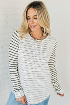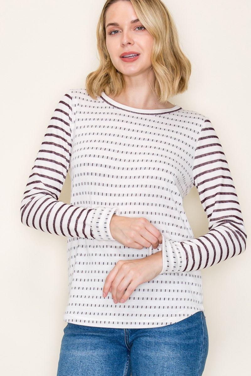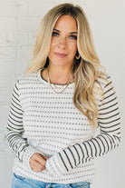 Morse Long Sleeve Stripe Sweater Top is a stylish and comfortable choice for everyday wear. Its color combination is eye-catching and vibrant. The lightweight sweater construction is designed for optimal comfort. Its dash design creates a classic silhouette with a hip-length and long sleeve design. Combined, these features make for a fashionable and timeless look.