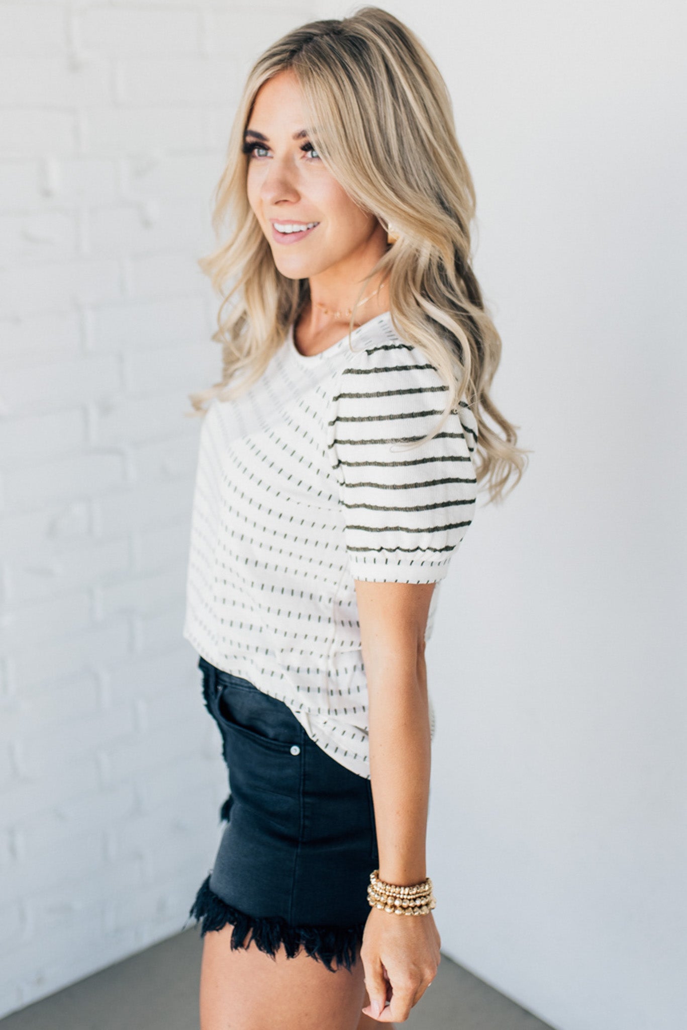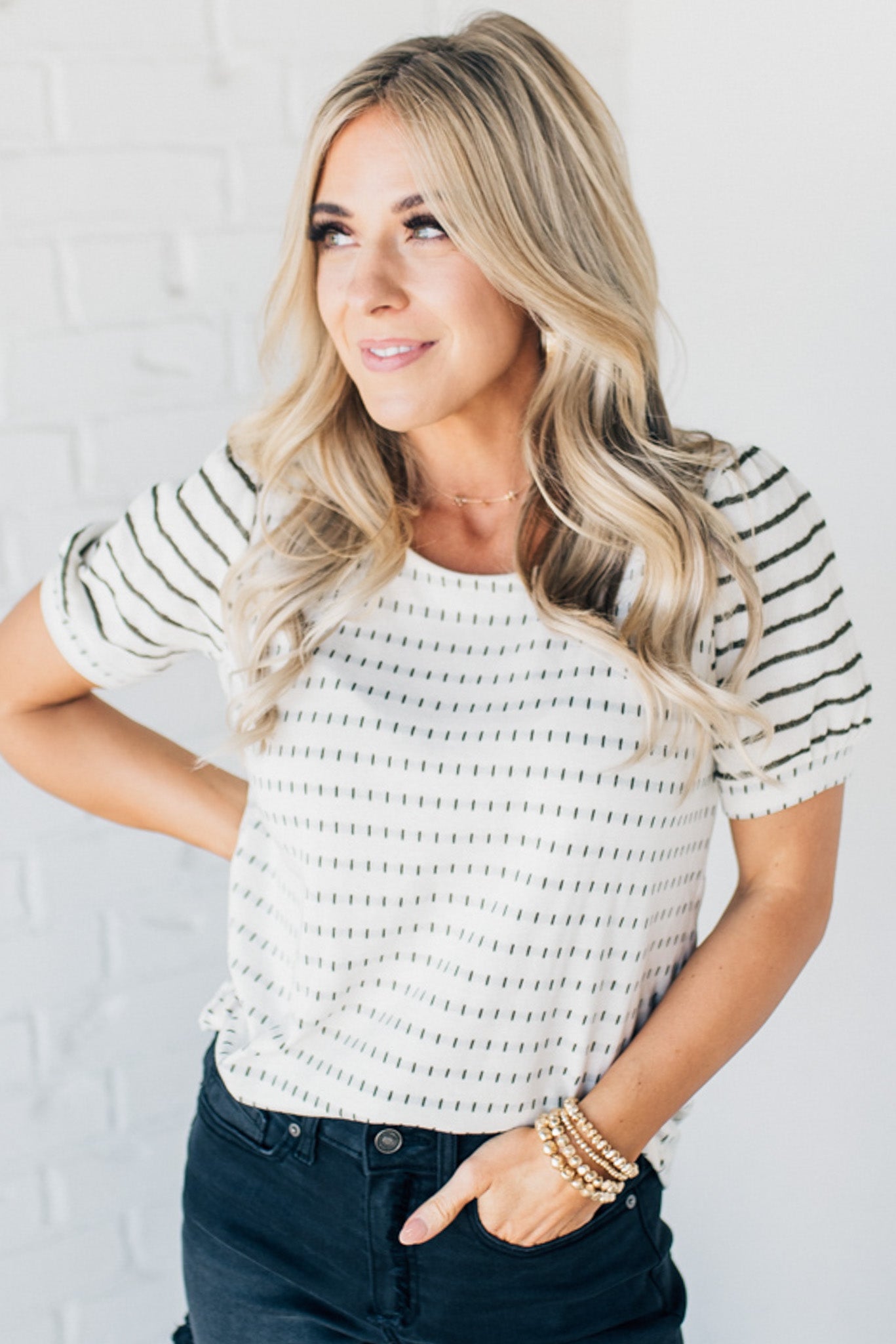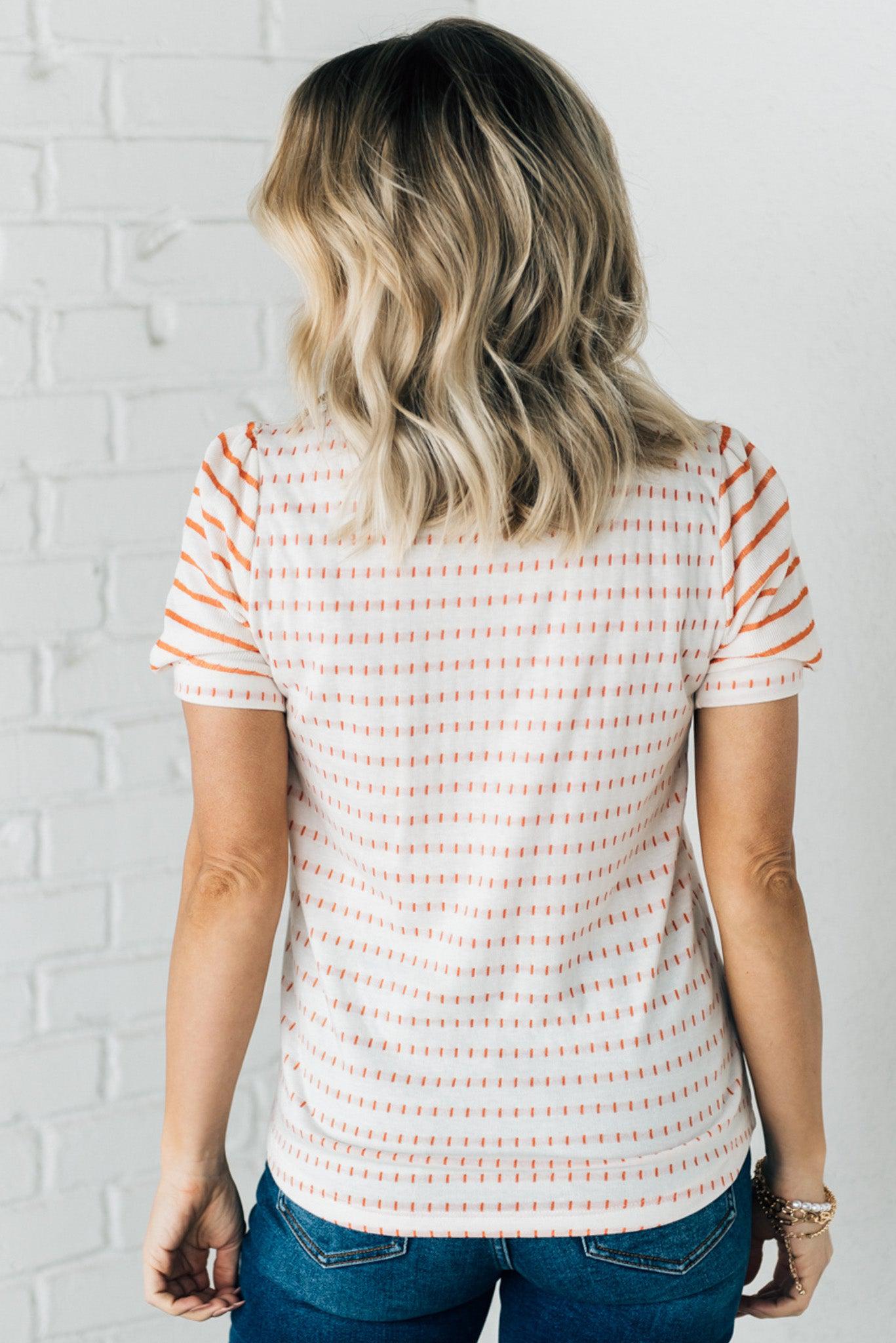 Morse Stripe Sweater Tee is a stylish and comfortable choice for everyday wear. Its rust orange and ivory color combination is eye-catching and vibrant. The lightweight sweater construction is designed for optimal comfort. Its dash design creates a classic silhouette with a hip-length and puff sleeve design. Combined, these features make for a fashionable and timeless look.