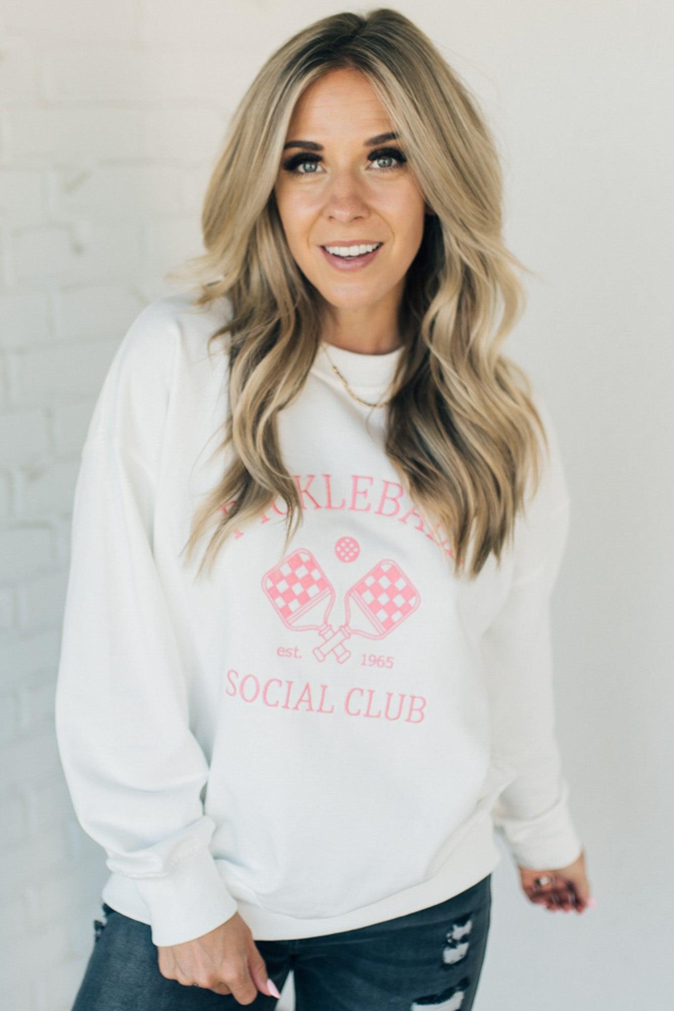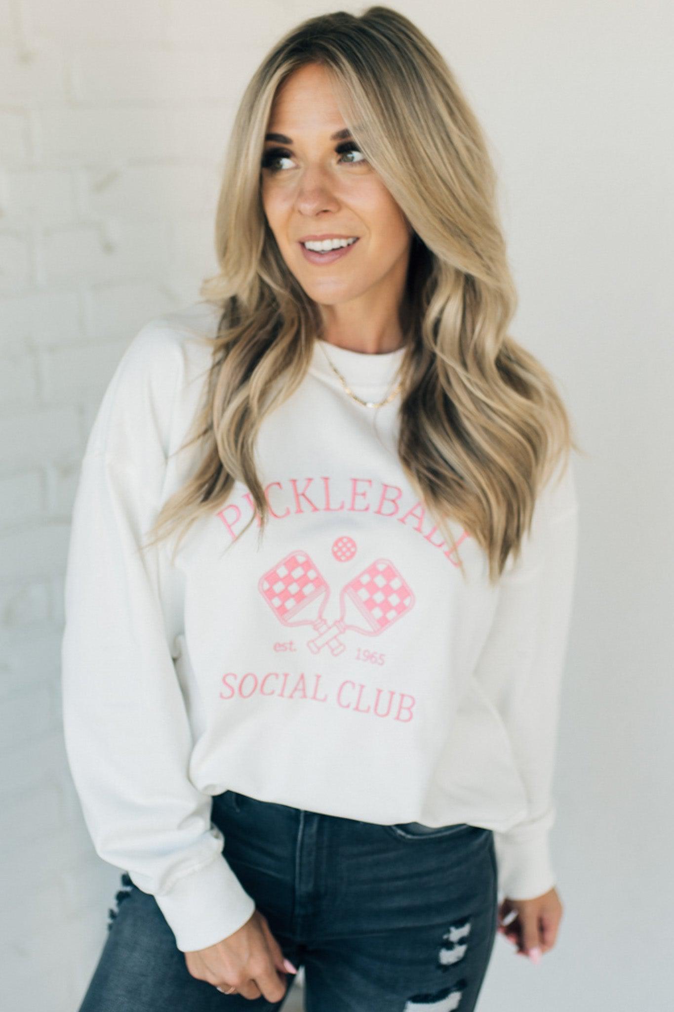 Get your serve on in style with our Pickleball Pullover! Made from comfy French Terry material, this oversized sweatshirt is perfect for your next social club match. Get ready to slay the court and make a statement with our Pickleball Pullover (serve and fashion ace not included).