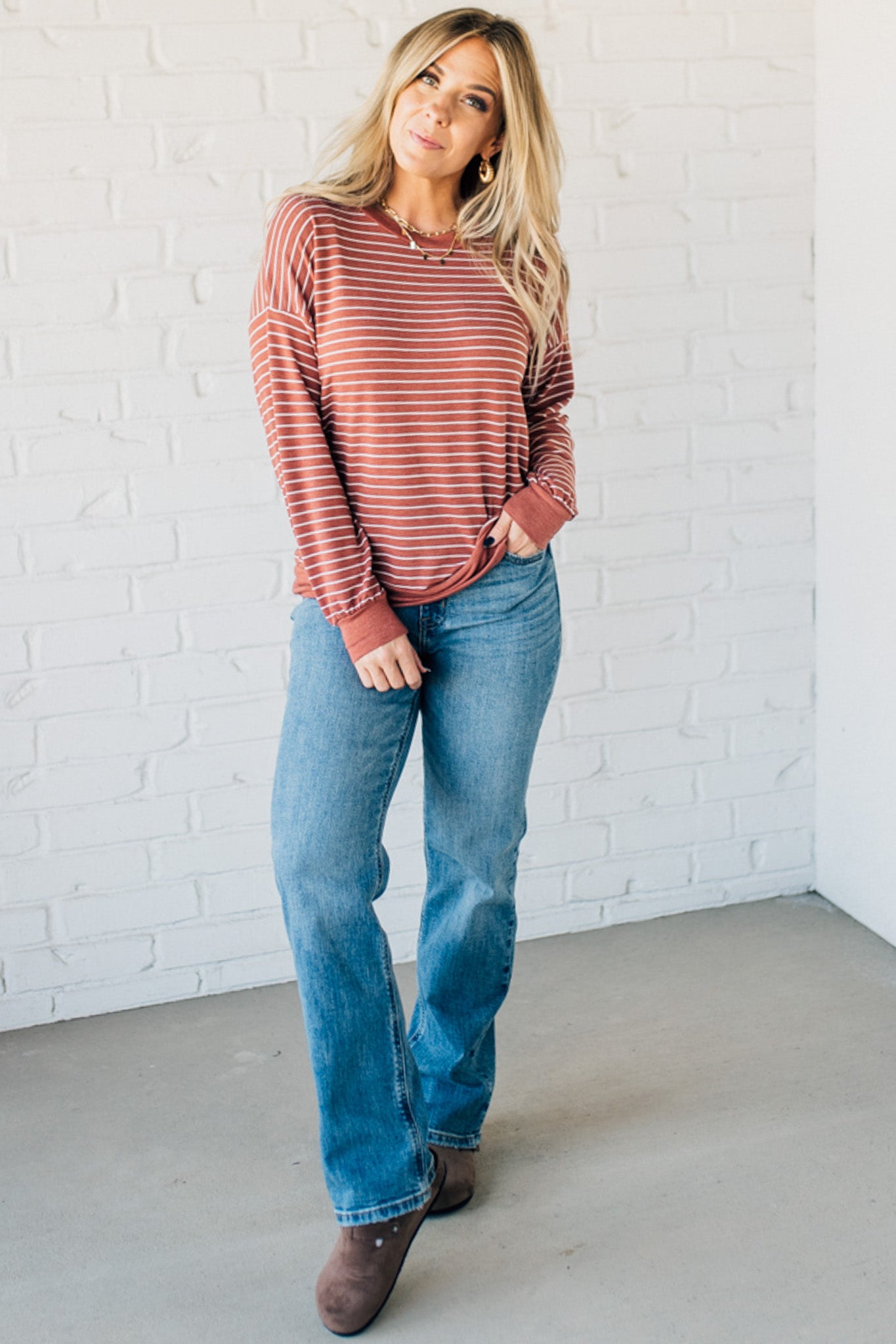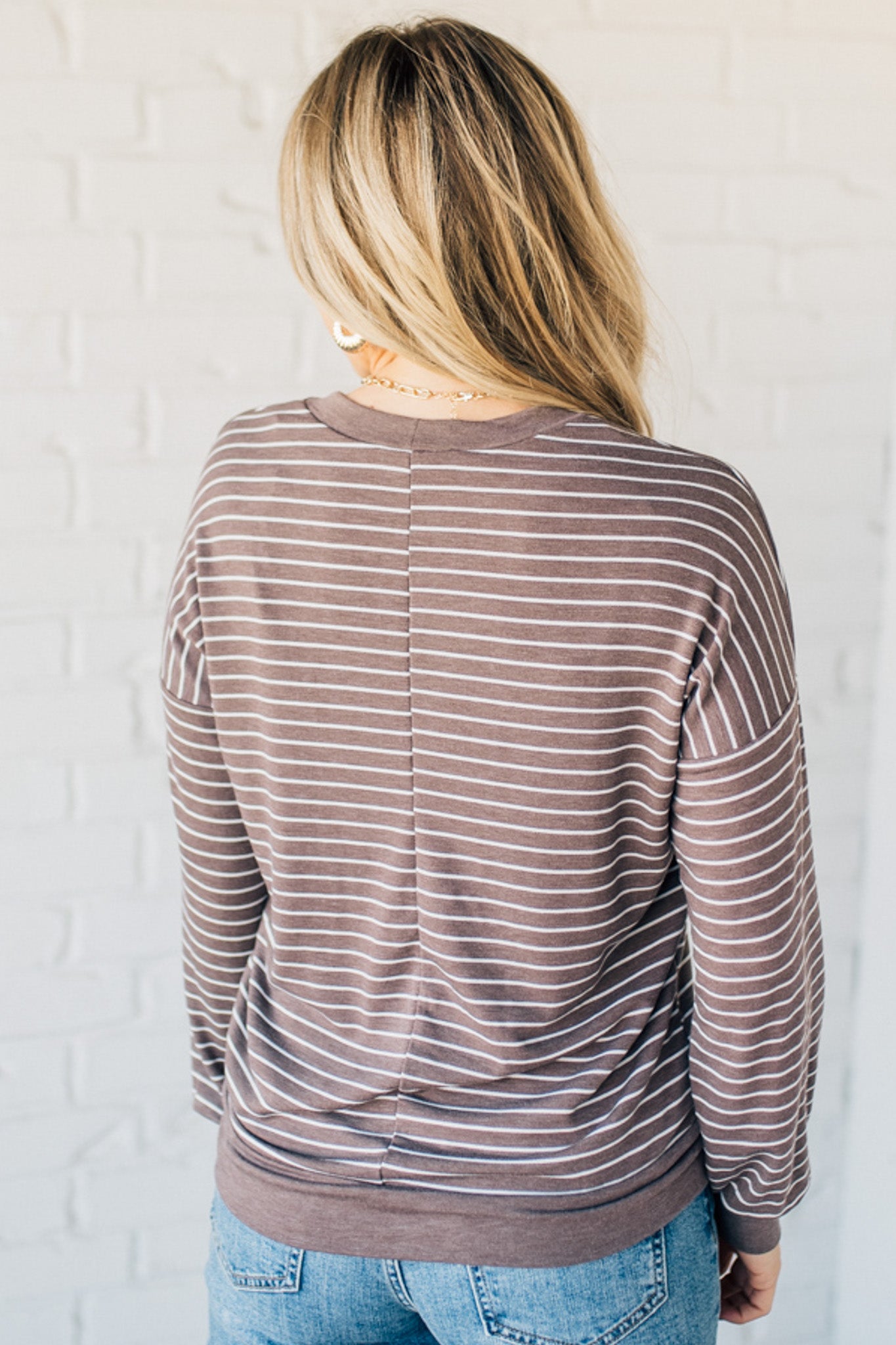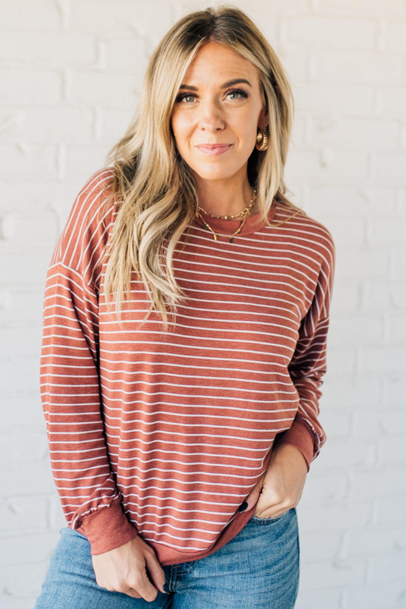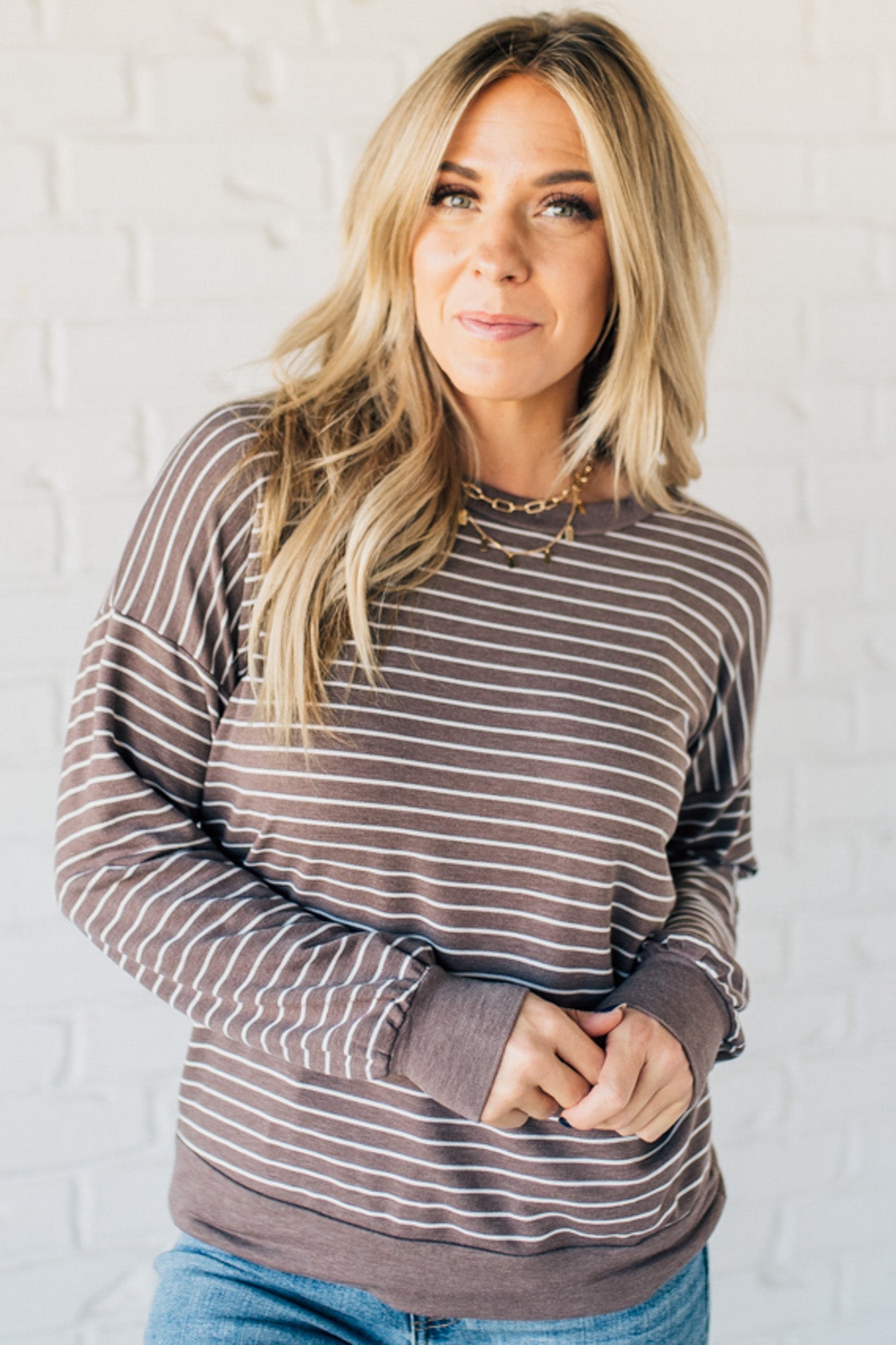 Introducing our Sunday Soft Striped Top - the perfect blend of style and comfort. With a round neck and long sleeves, this terry striped top is not only super soft, but also versatile for any occasion. Upgrade your wardrobe with this must-have piece!