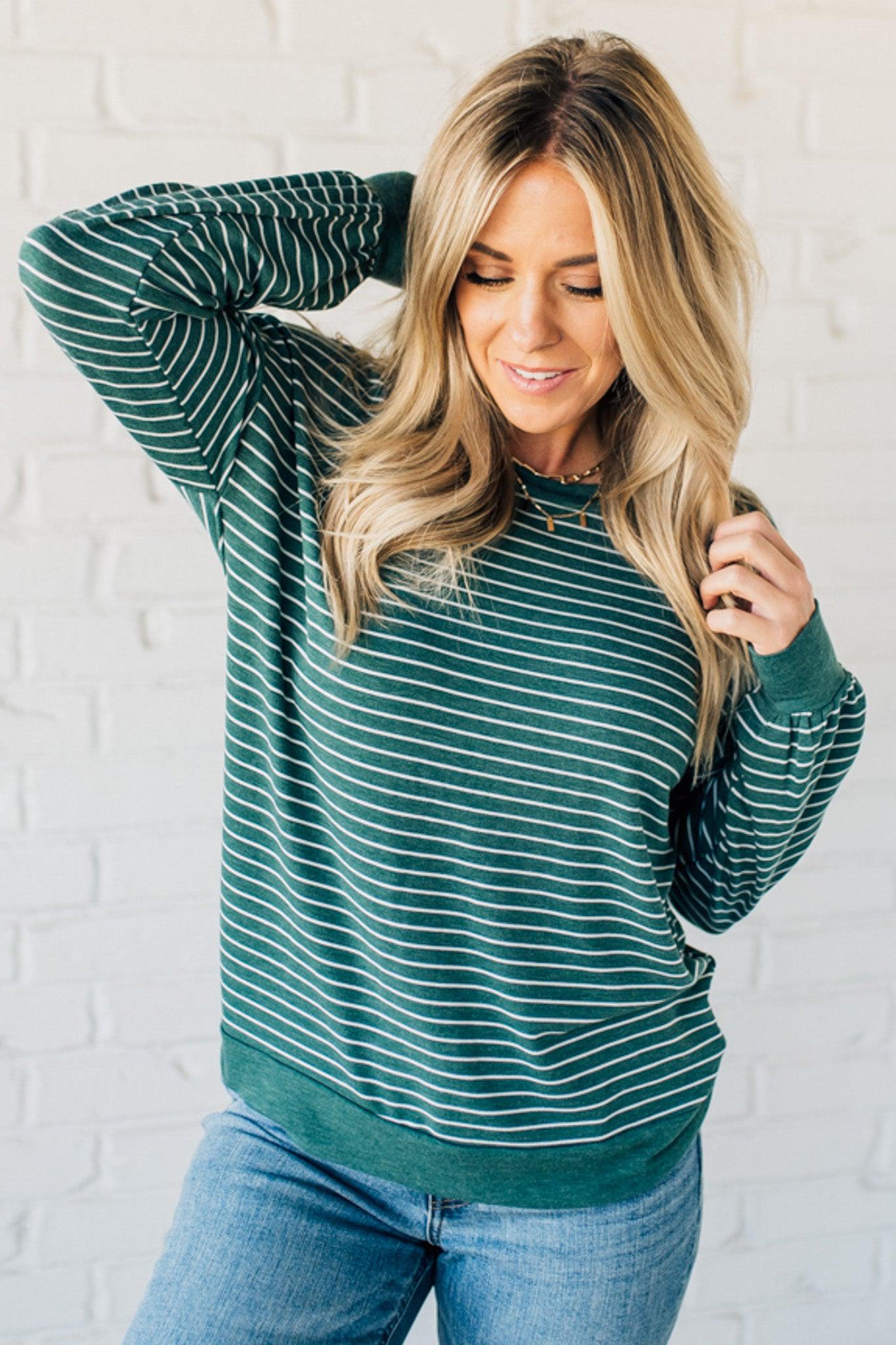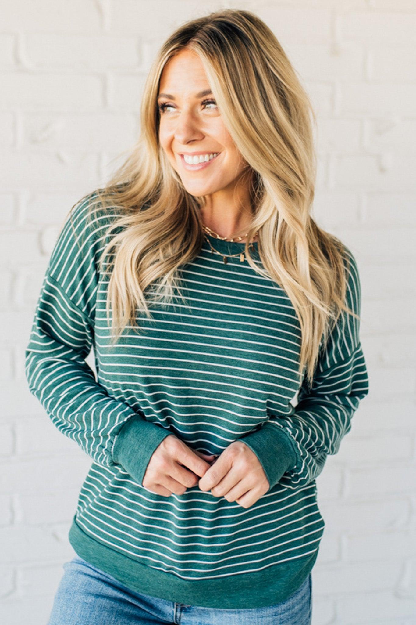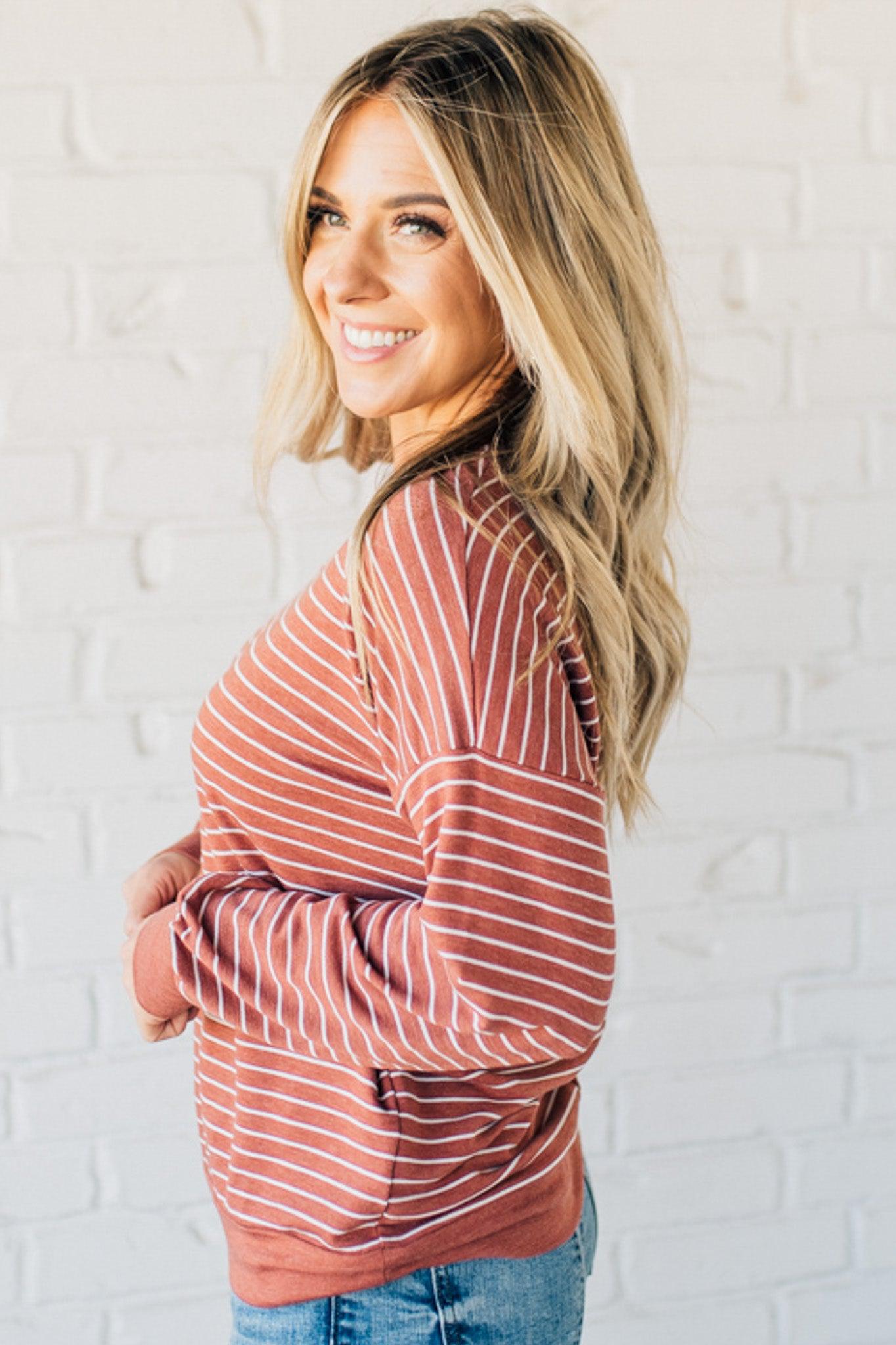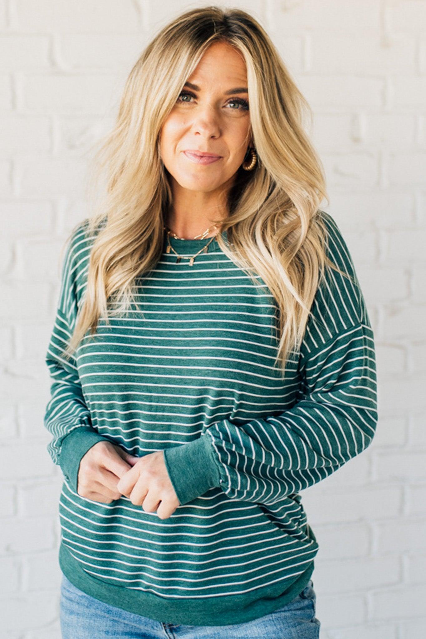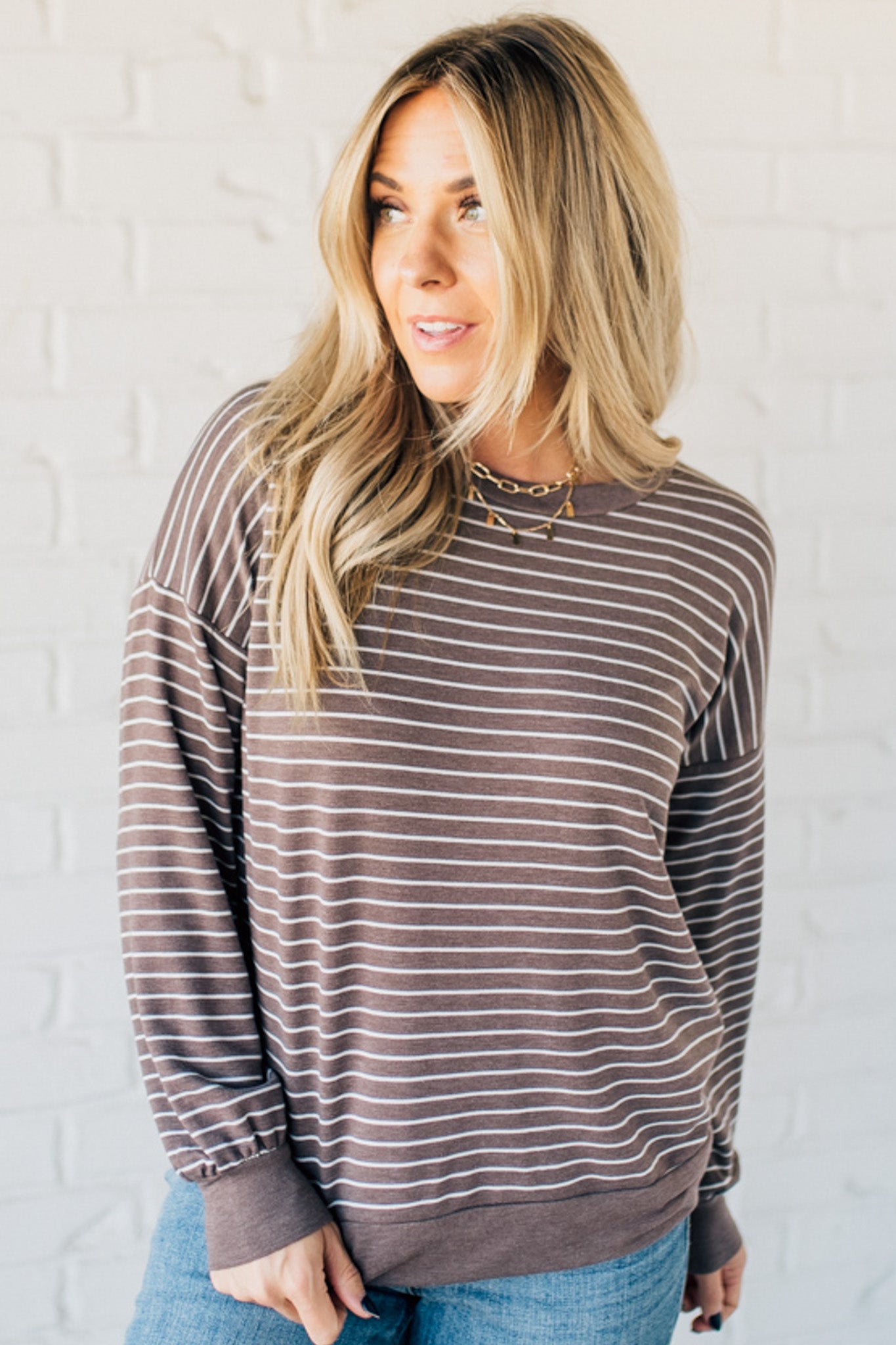 Introducing our Sunday Soft Striped Top - the perfect blend of style and comfort. With a round neck and long sleeves, this terry striped top is not only super soft, but also versatile for any occasion. Upgrade your wardrobe with this must-have piece!