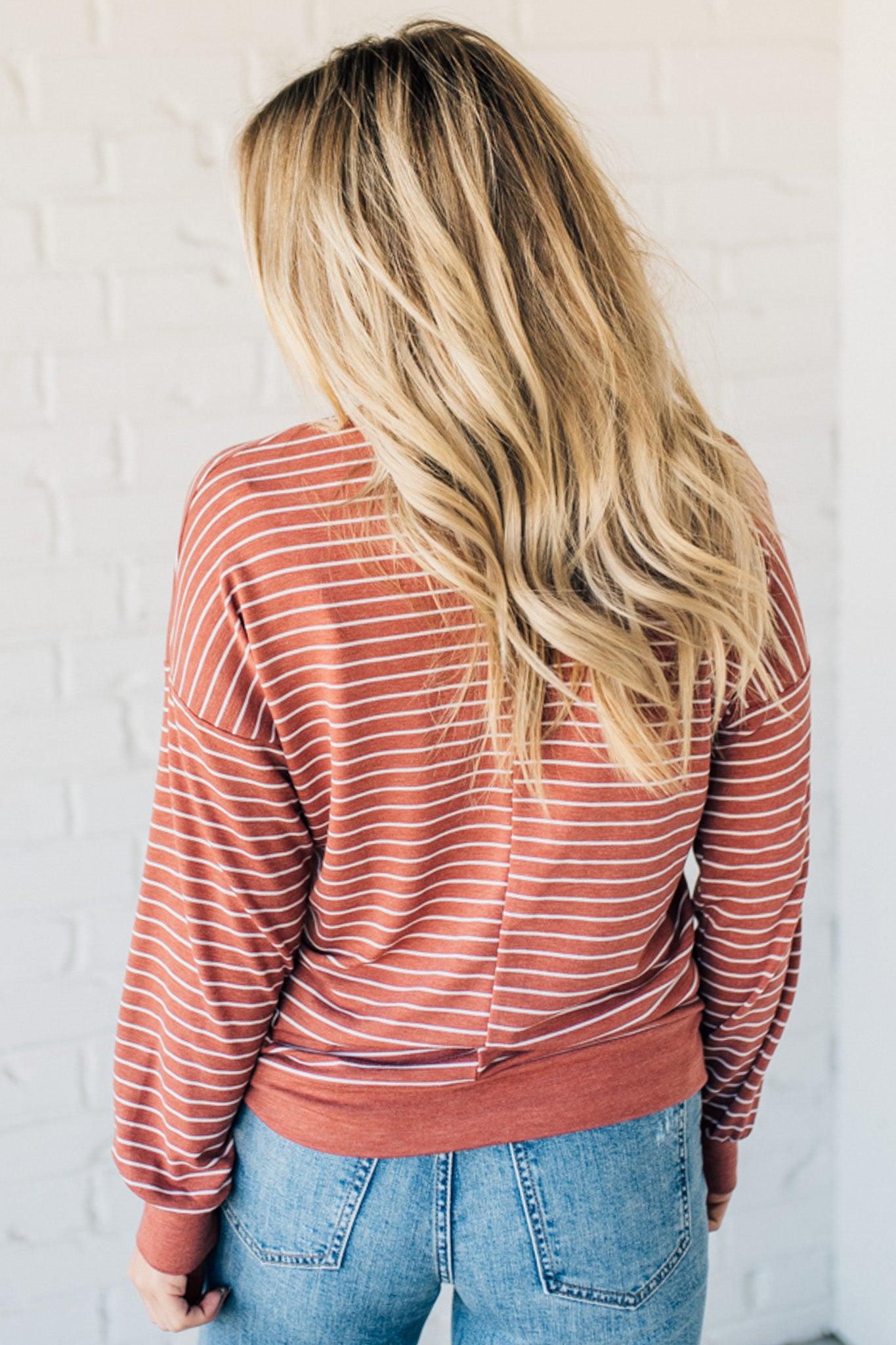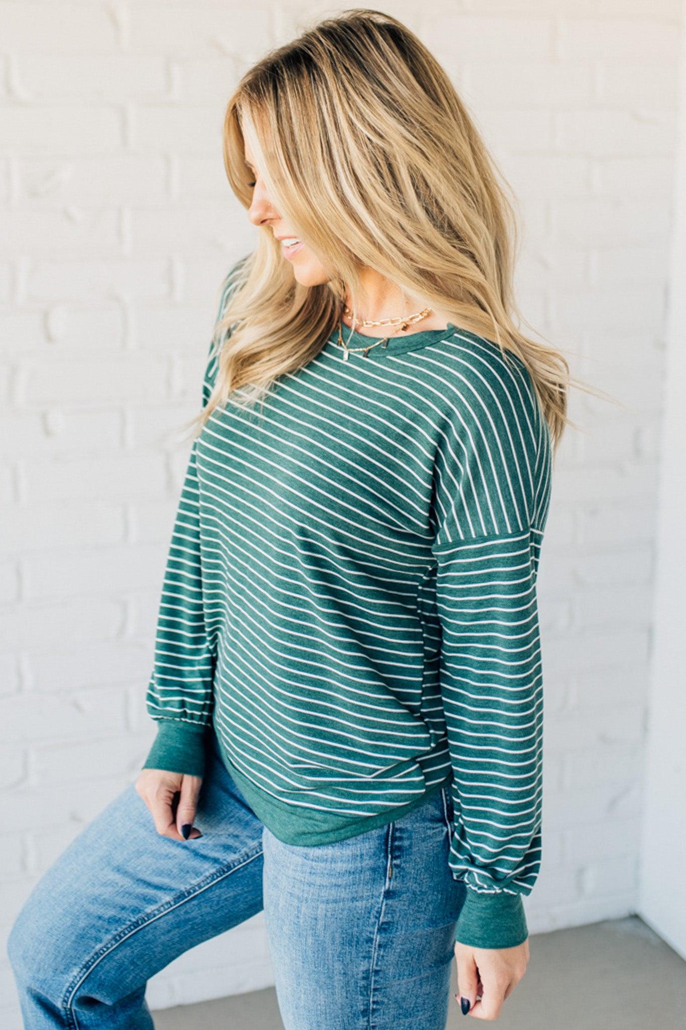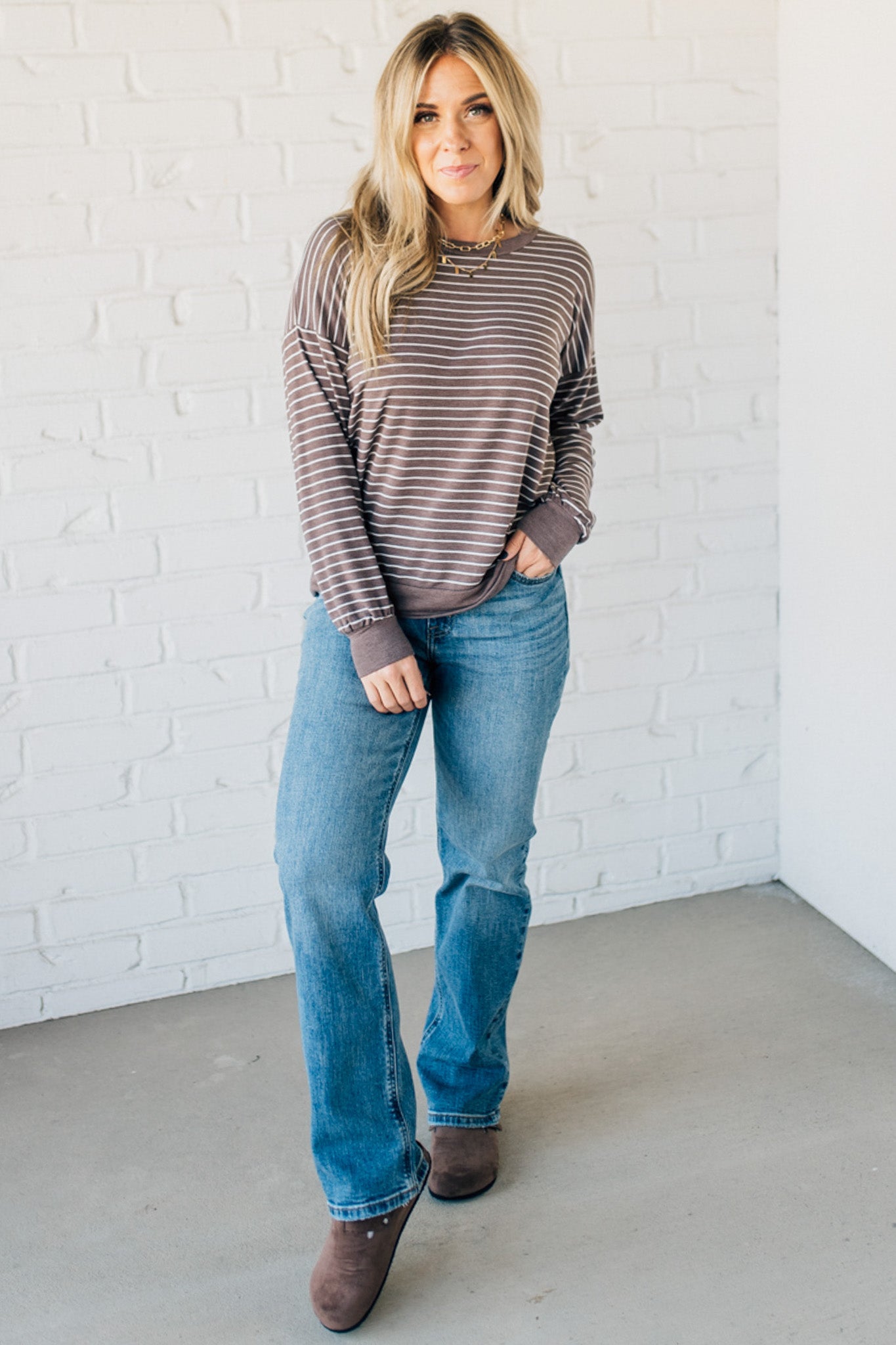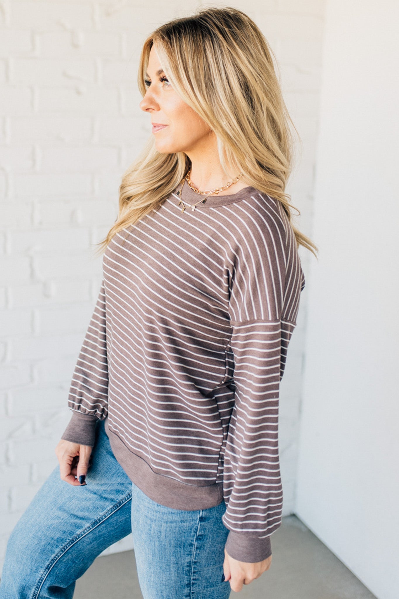 Introducing our Sunday Soft Striped Top - the perfect blend of style and comfort. With a round neck and long sleeves, this terry striped top is not only super soft, but also versatile for any occasion. Upgrade your wardrobe with this must-have piece!