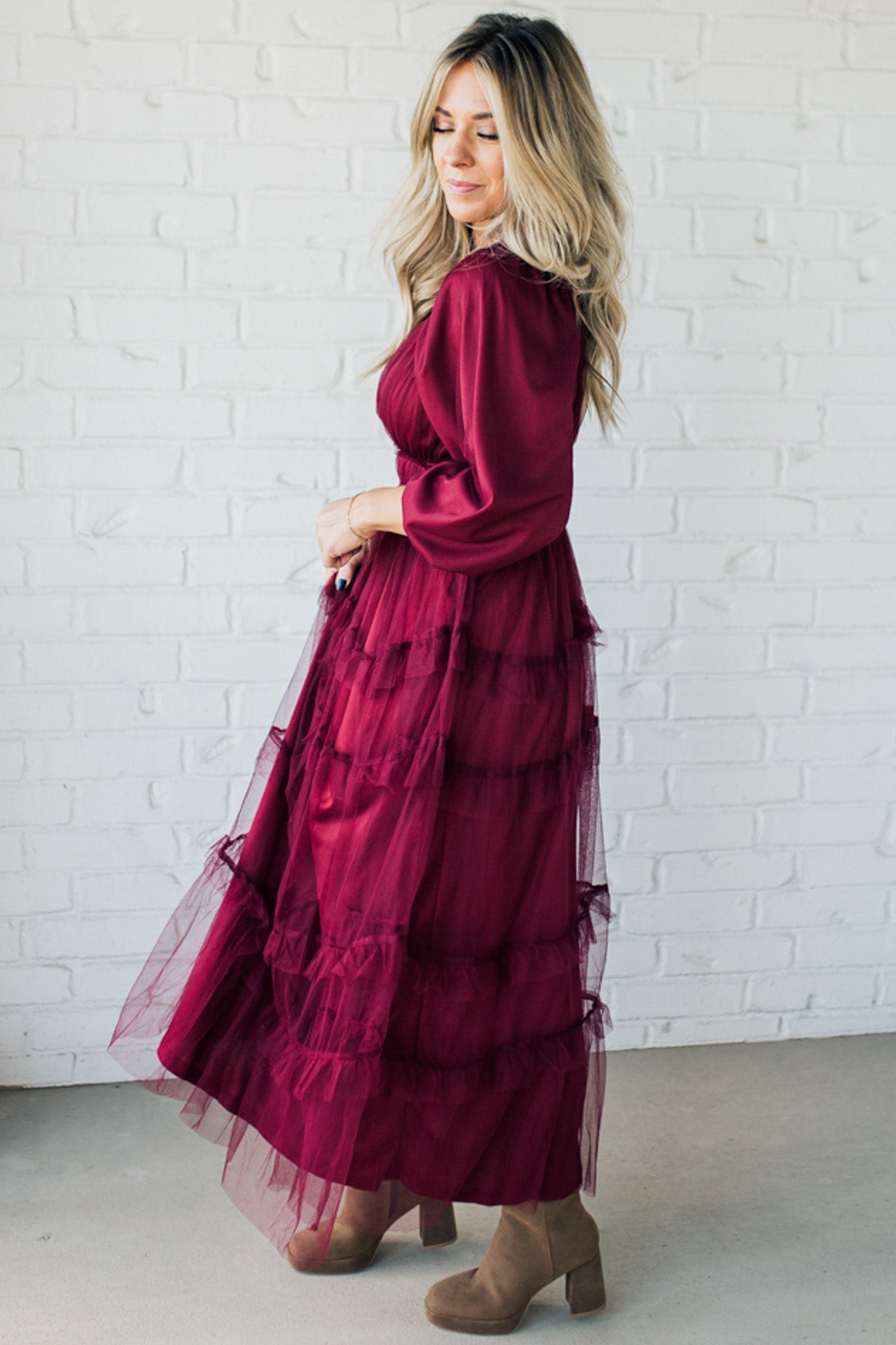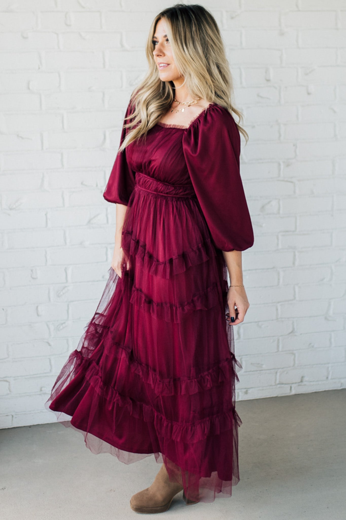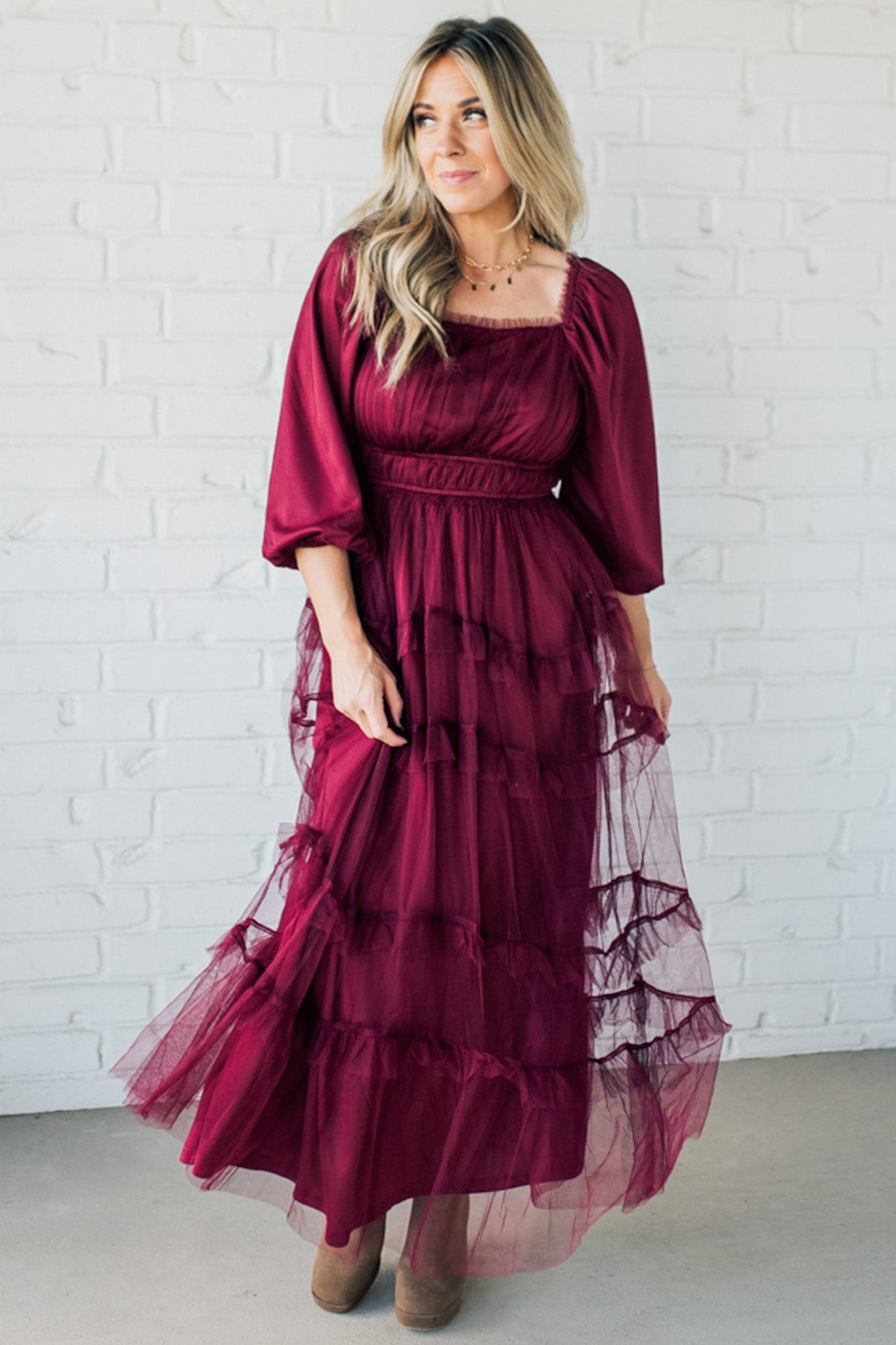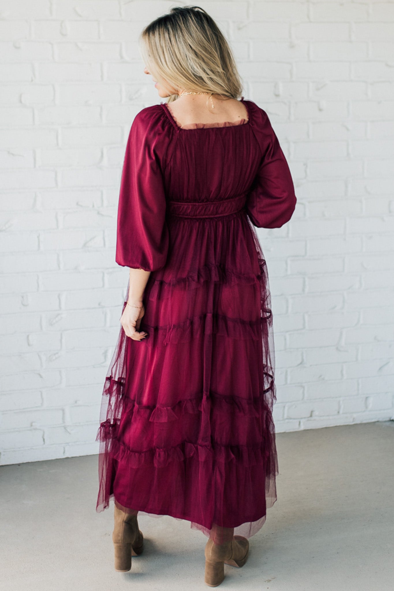 Be the belle of any ball in the Tessa Tulle Tiered Dress. With its sheer ruffle tiered tulle and long sleeves, this maxi dress pairs beautifully with a square neckline for a stunning and elegant look. Perfect for any special occasion. (Or just feeling extra fancy on a normal day.)