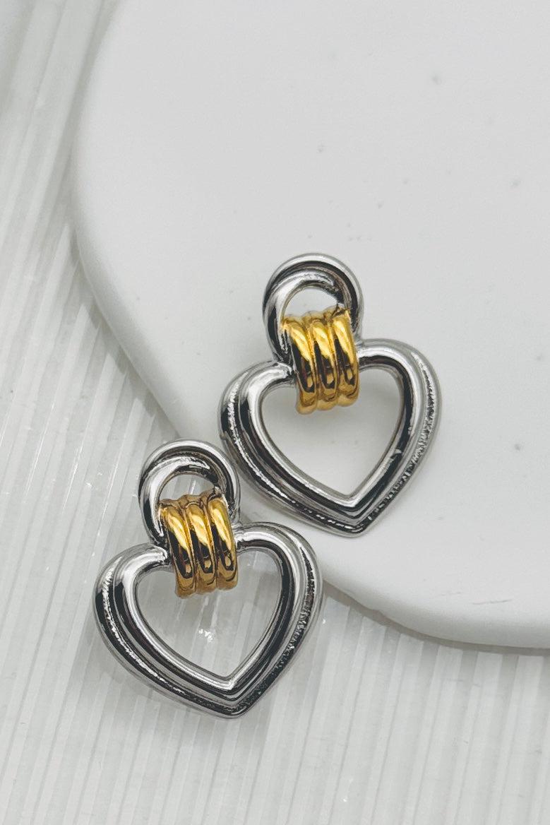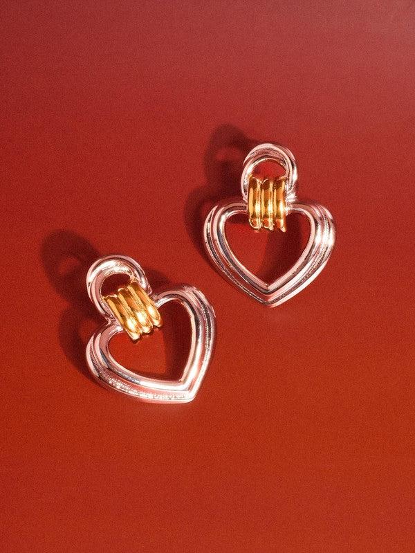 These LUXE Mixed Metal Heart Hoops are love at first sight! With a playful heart hoop design in silver and a touch of gold, these earrings add a hint of quirk to any outfit. Perfect for the fashion-forward and playfully mischievous!