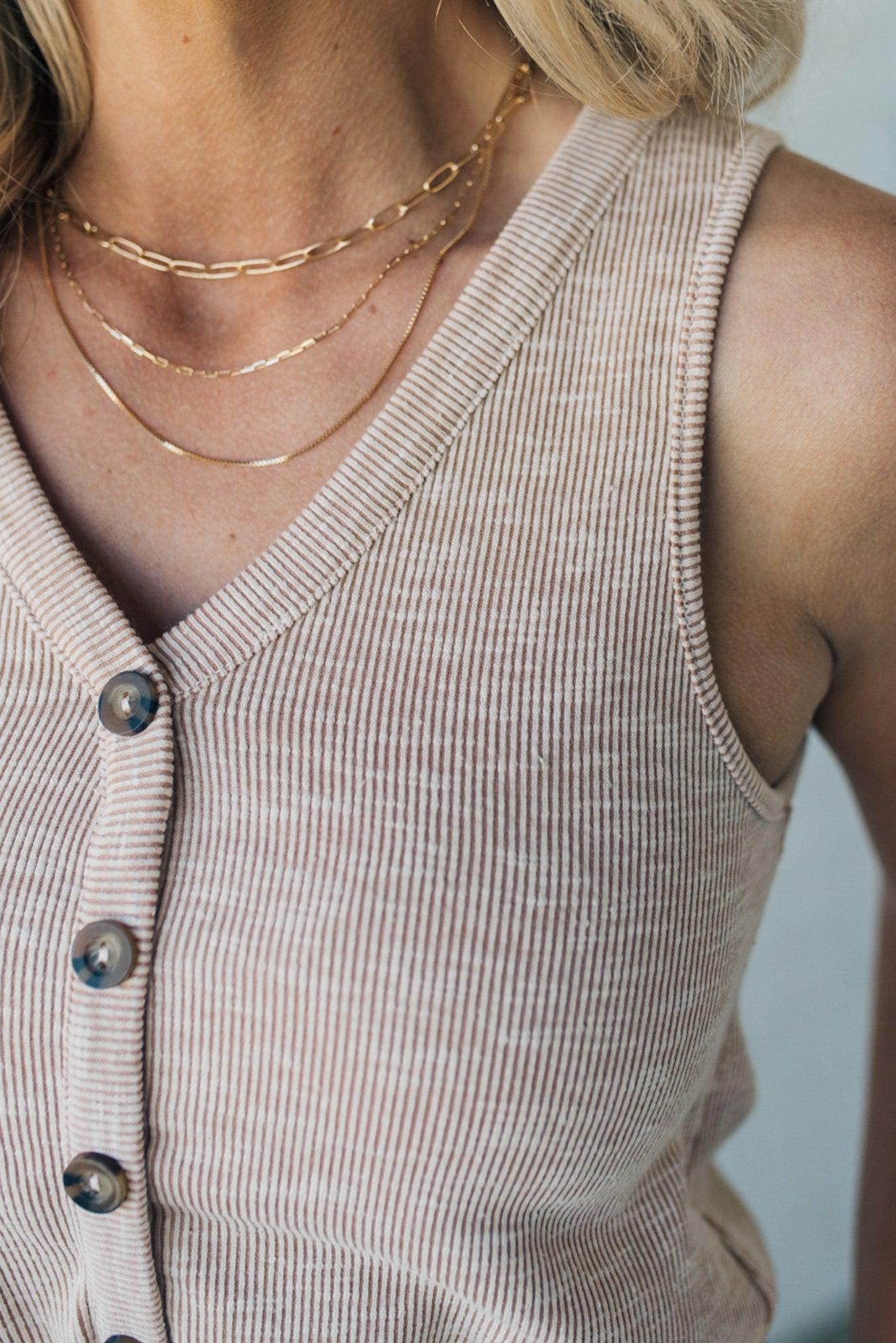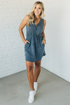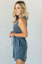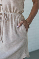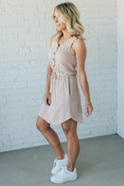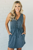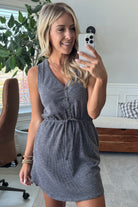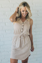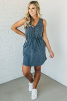 Two-toned ribbed sleeveless dress with an elastic waist accented with a faux drawstring and faux button detail! The mini ribbed material is soft and comfy with just the right amount of stretch to keep her super flattering and your new goto everyday dress!