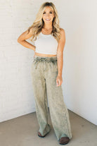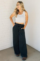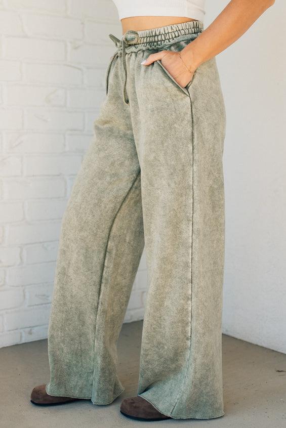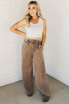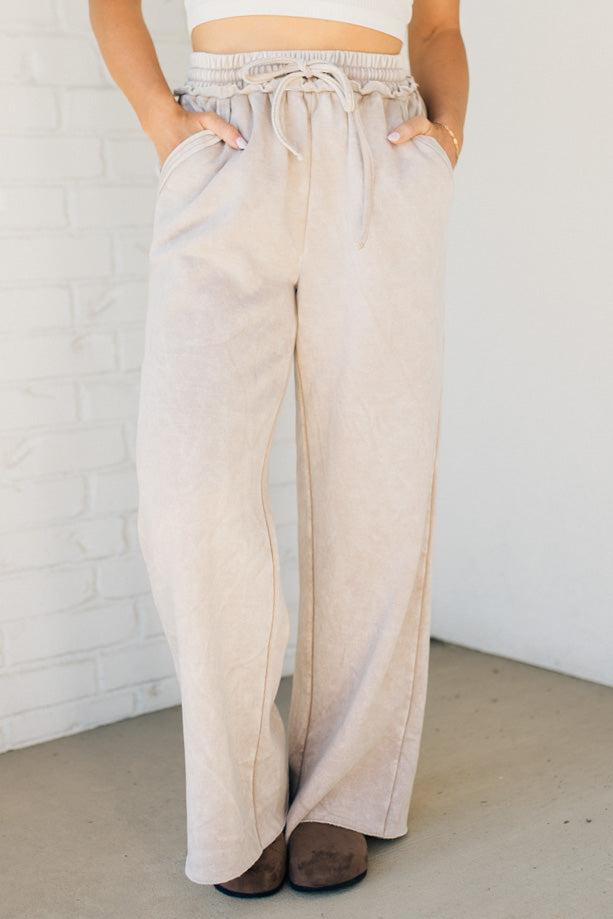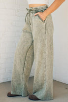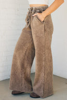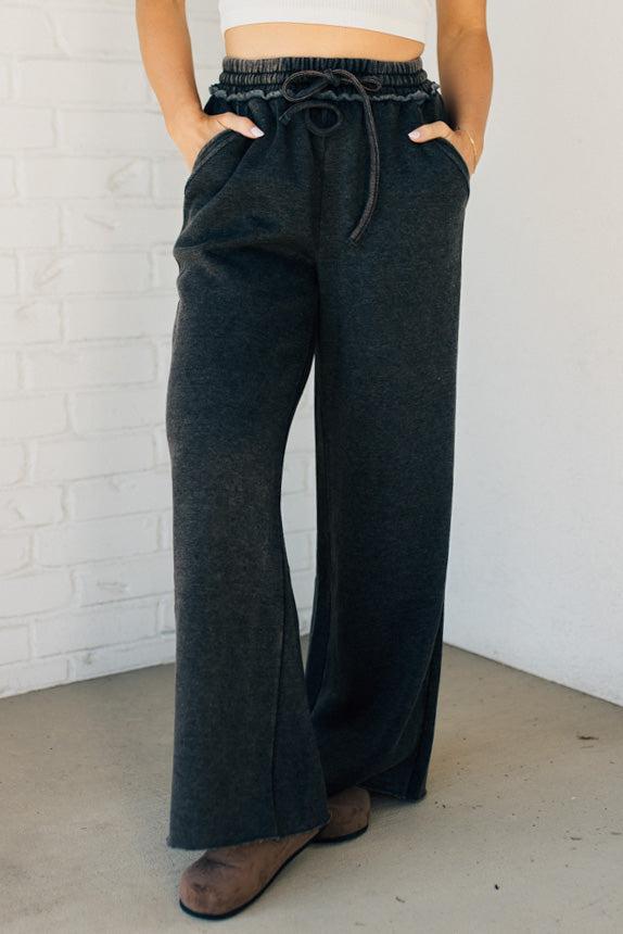 Get ready to lounge in style and comfort with Rissa Wide Leg Loungers. These acid wash fleece palazzo sweatpants feature a drawstring waistband and pockets for convenience. The raw hem adds a touch of edginess. Perfect for a cozy day in or a casual outing!