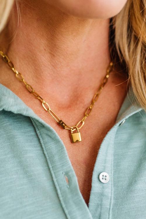 This chunky-meets-chic lock & clip chain is your new everyday statement piece. It’s got just the right weight, the shine that hits different, and the kind of vibe that turns basics into look at her. The oversized lobster clasp? Strong. The lock charm? Unapologetically bold.