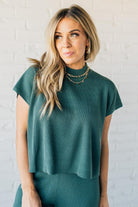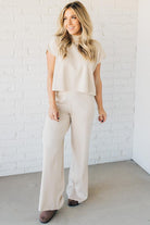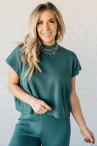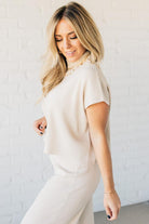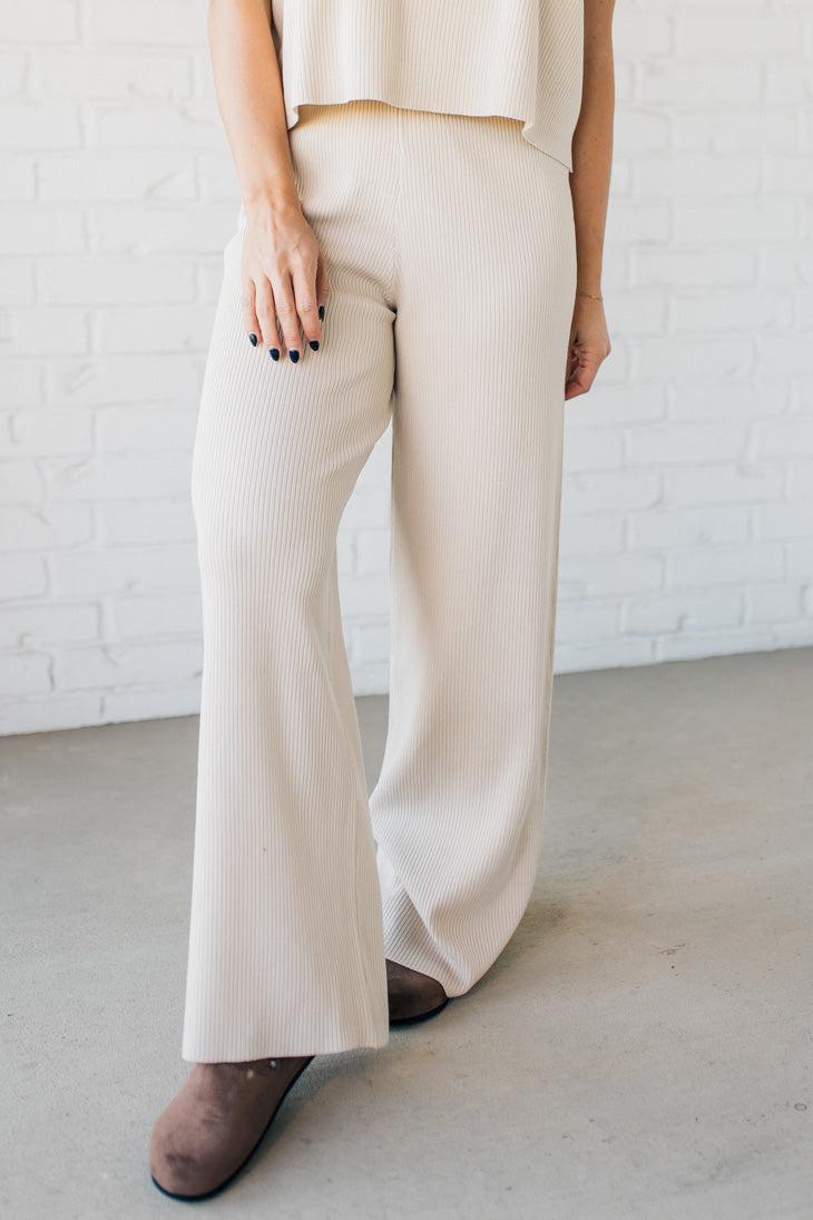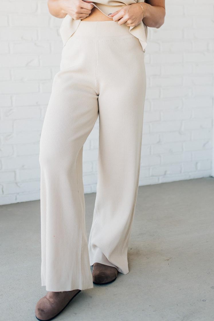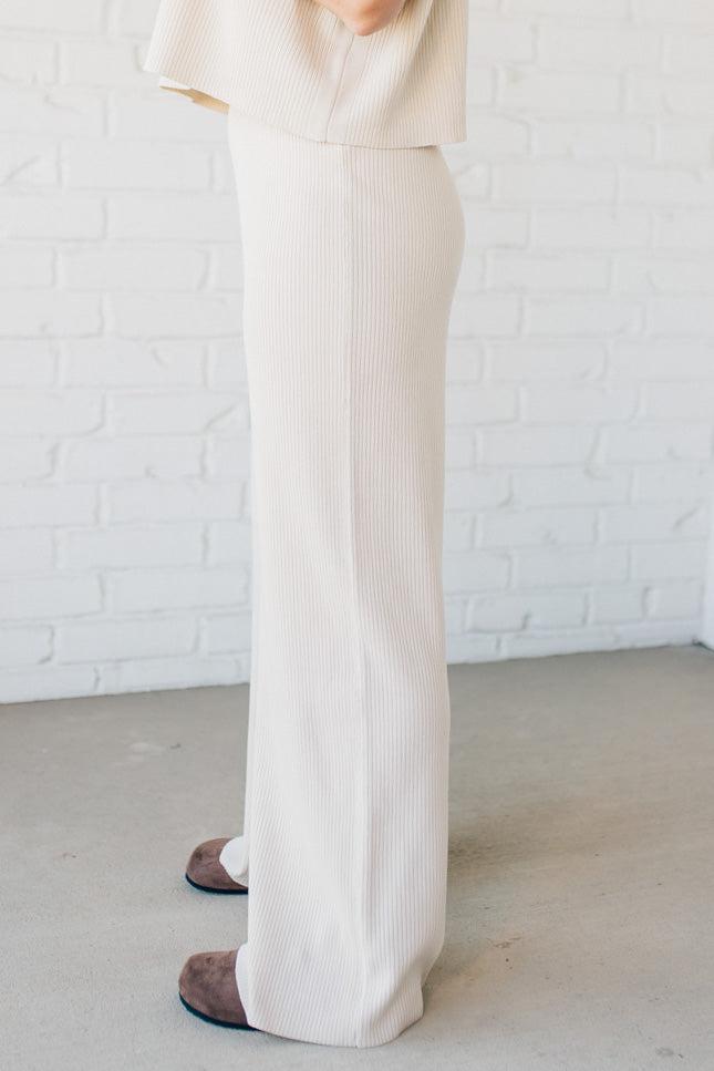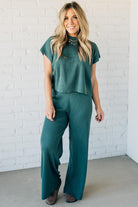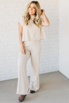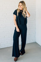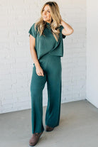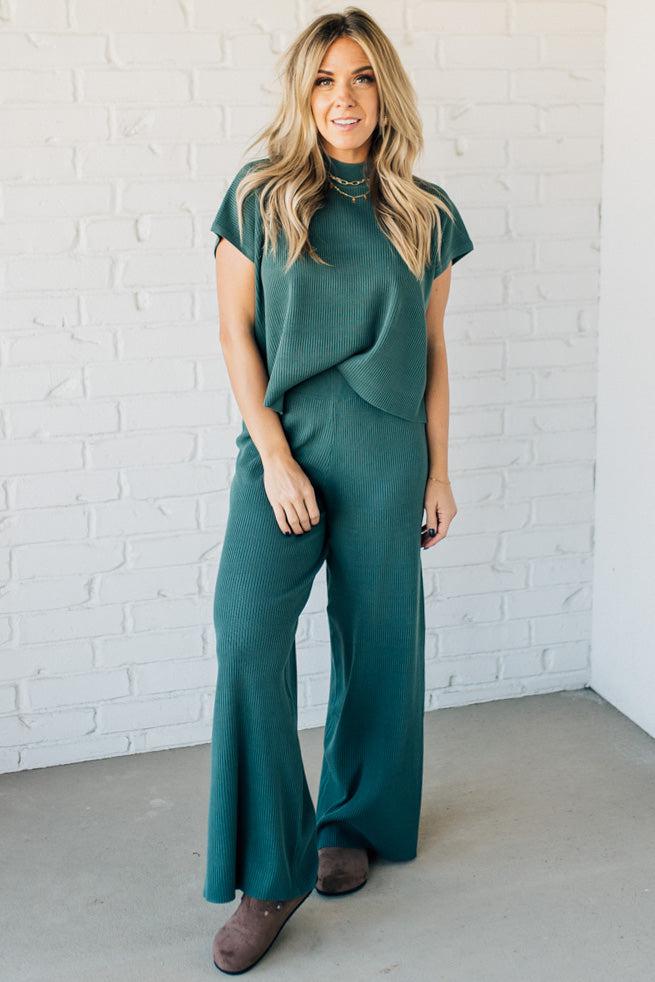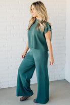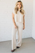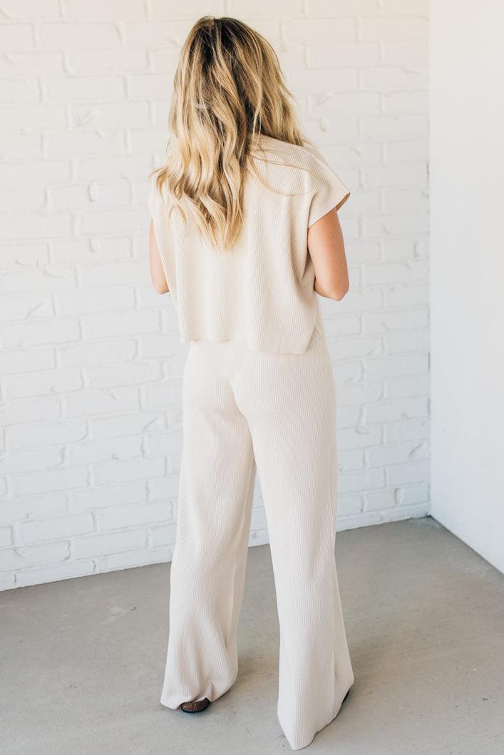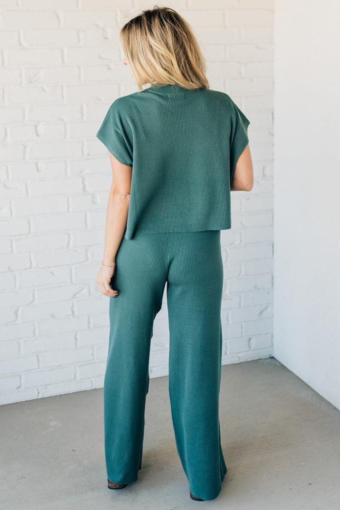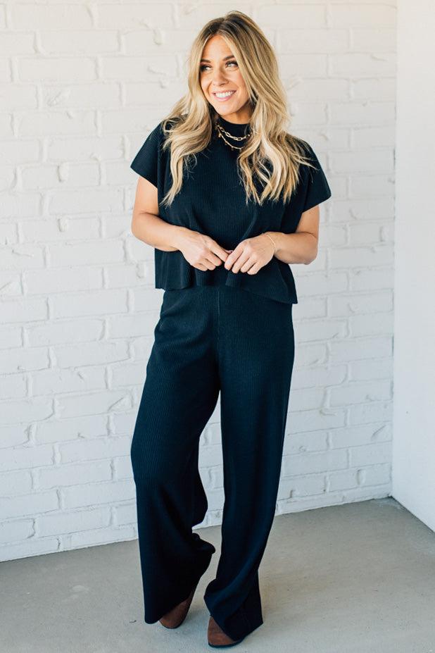 Get cozy with the Rey Ribbed Sweater Set! Made from soft viscose fabric, this set includes a stylish short sleeve boxy top and flowy high waist wide leg pants. Perfect for a casual day out or a comfortable night in. Sold as a complete set for easy styling.