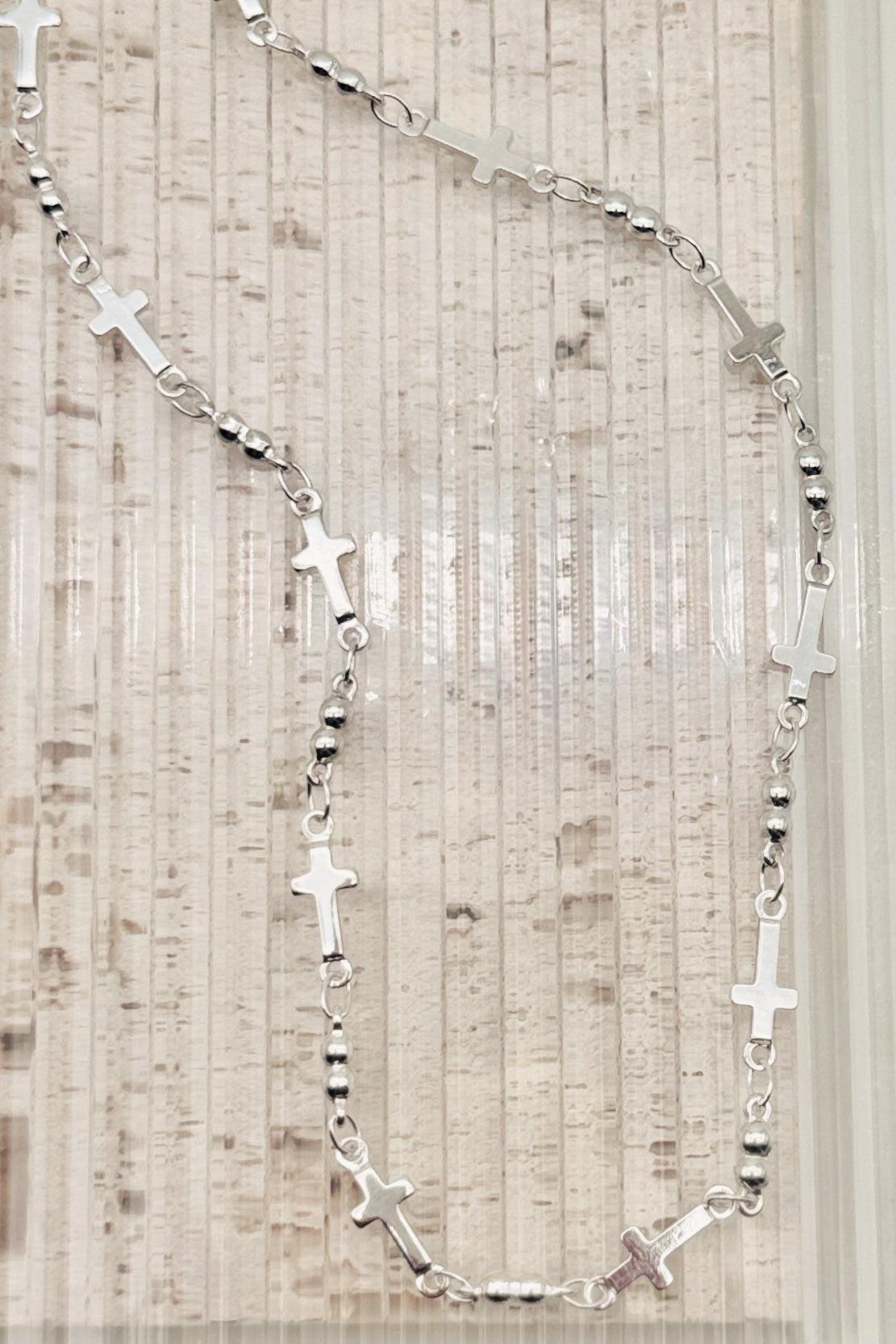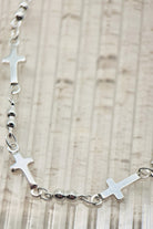 Multiple cross charms catch the light as you move, creating this gorgeous layered effect without the hassle of actually layering. The mixed chain design has weight to it – substantial enough to make a statement, delicate enough to wear every single day. At 14 inches with a 3-inch extender, it hits that perfect choker length that somehow makes everything look more intentional.