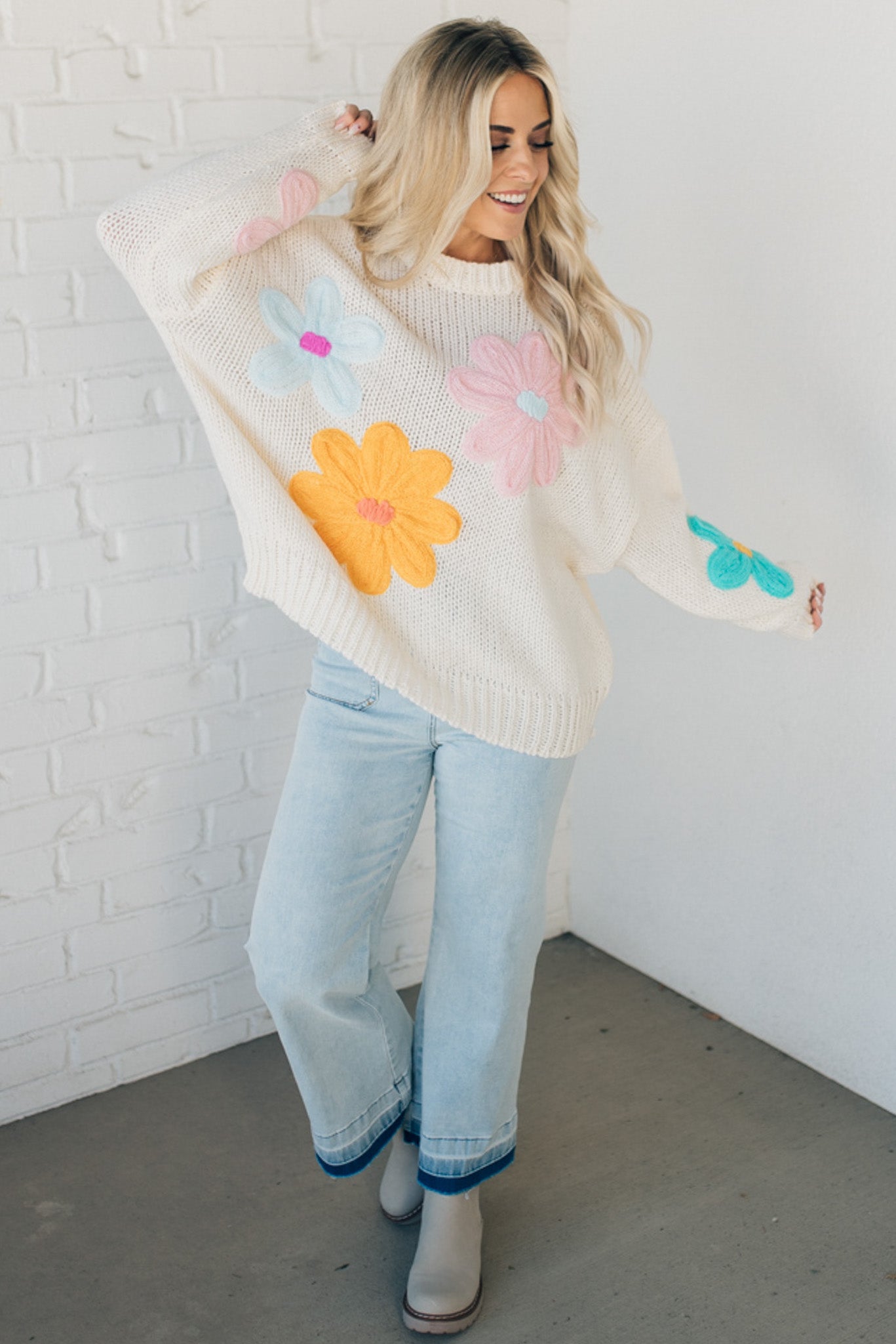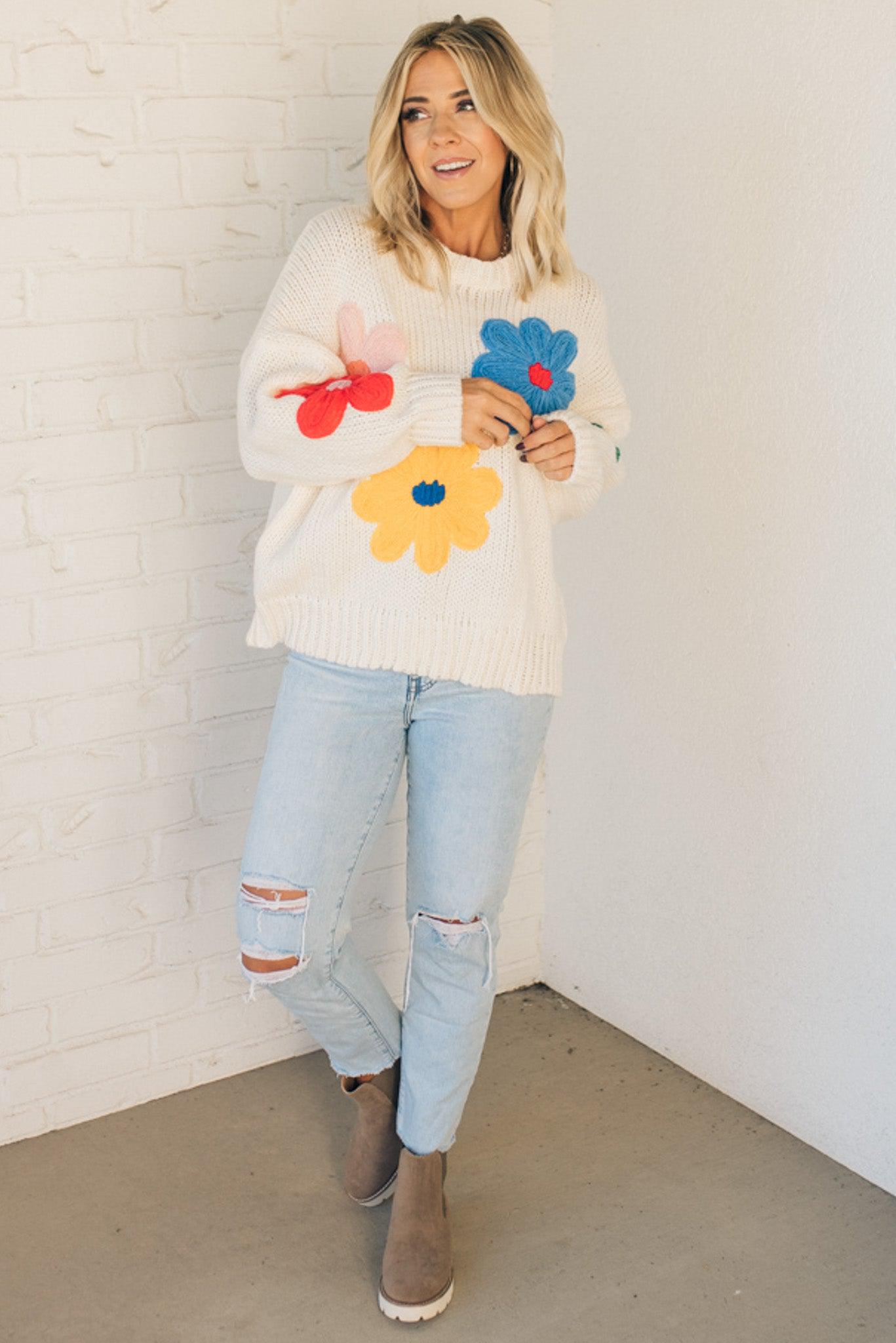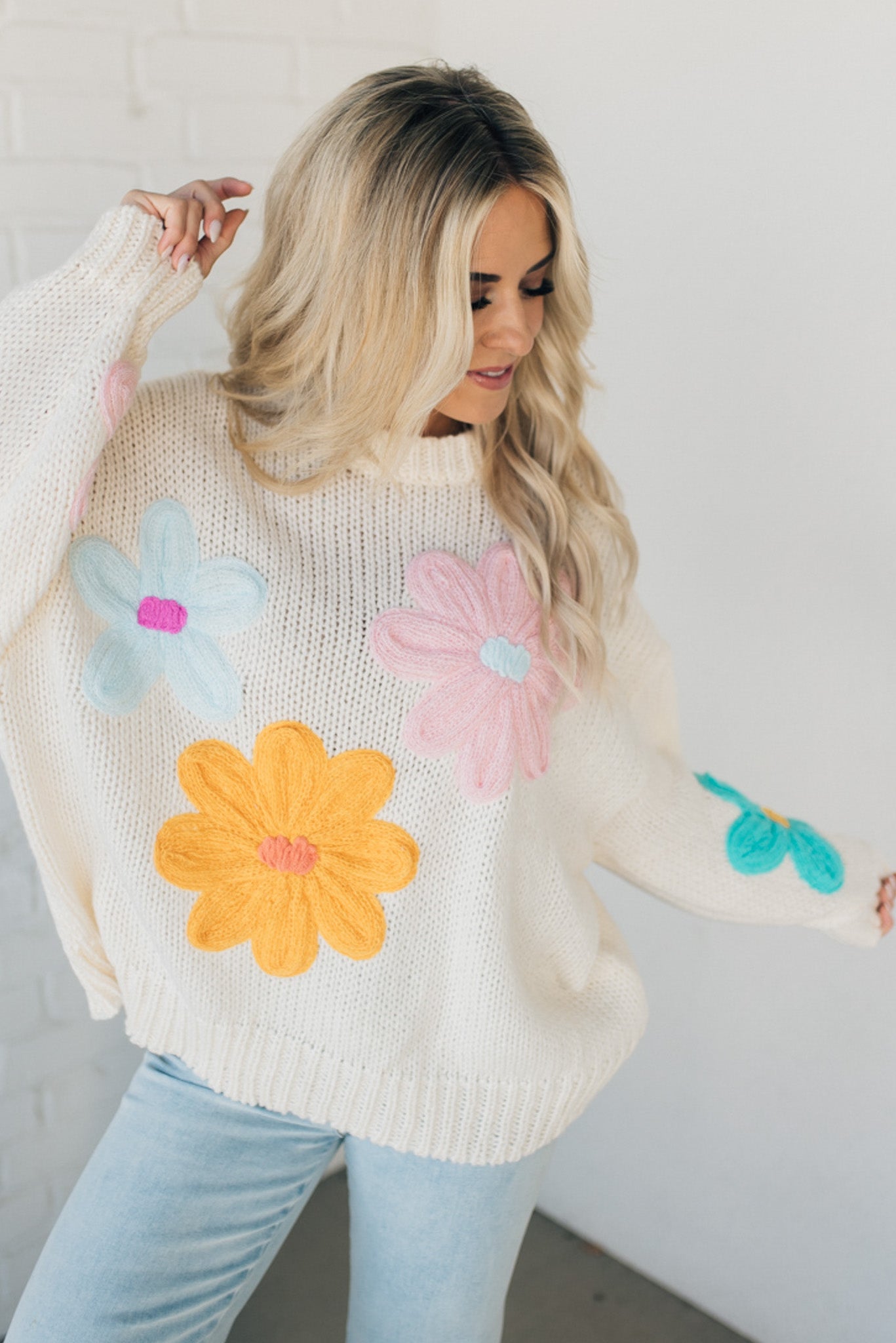 This Lennon Floral Woven Sweater is an ideal choice for chilly days. Crafted with a chunky weave, it features a bold crochet daisy applique and a relaxed boyfriend fit for added warmth and comfort. Let the fun, statement-making design keep you cozy all season long.