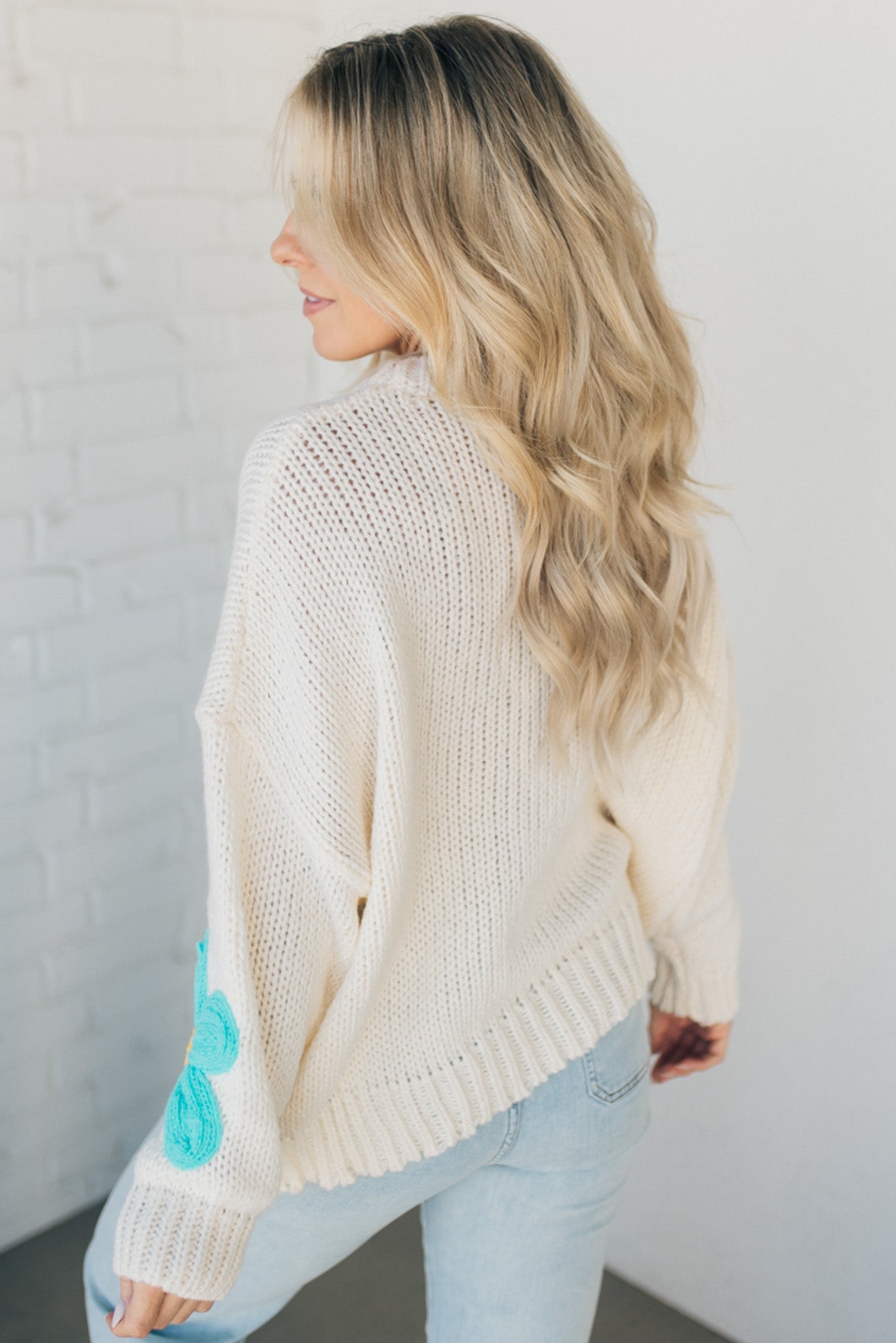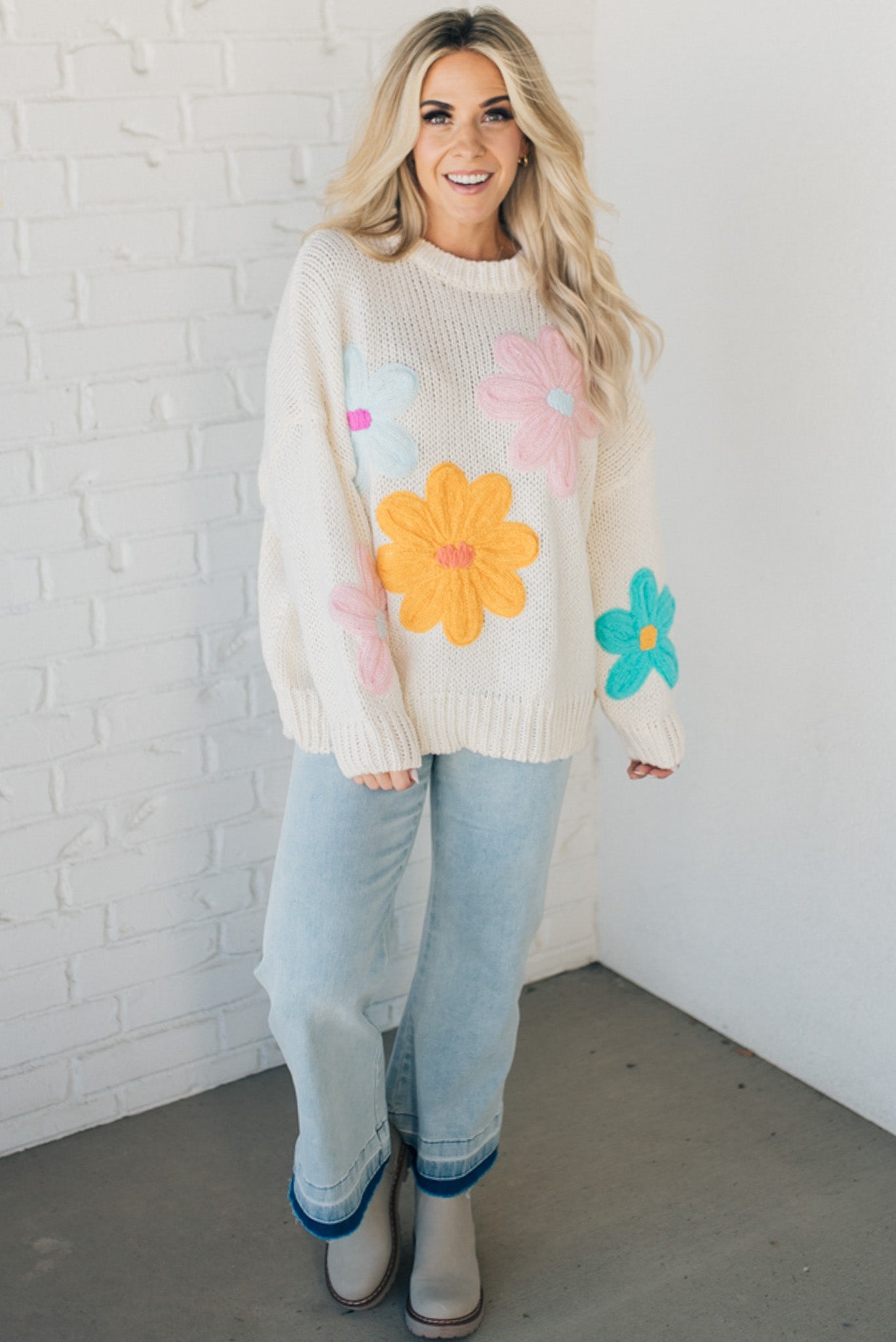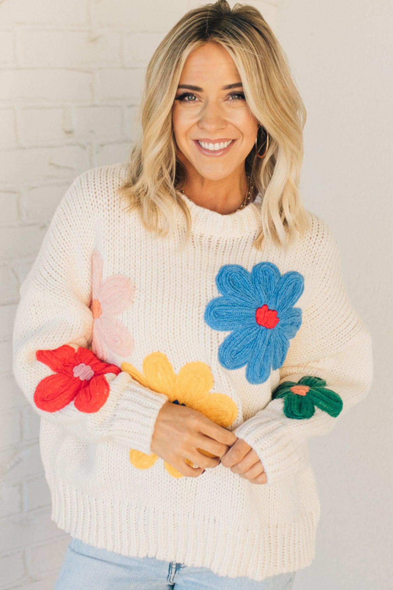 This Lennon Floral Woven Sweater is an ideal choice for chilly days. Crafted with a chunky weave, it features a bold crochet daisy applique and a relaxed boyfriend fit for added warmth and comfort. Let the fun, statement-making design keep you cozy all season long.