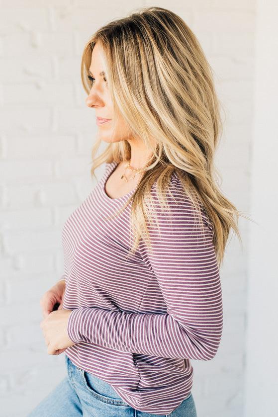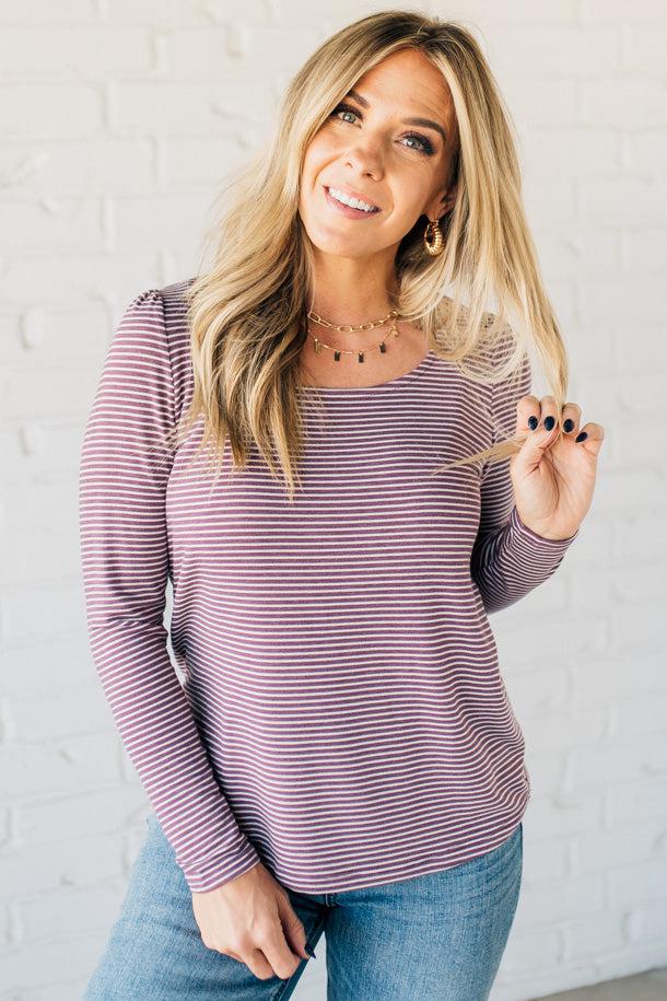 Introducing the Penny Pinstriped Scoopneck Tee - a playful twist on the classic tee! Made with a soft viscose blend, this lightweight tee features a flattering scoopneck, pintucked puff shoulder, and a loose fit with stretch for ultimate comfort. Perfect for adding a touch of fun to your everyday outfits. (Did we mention it's also super soft?!)
