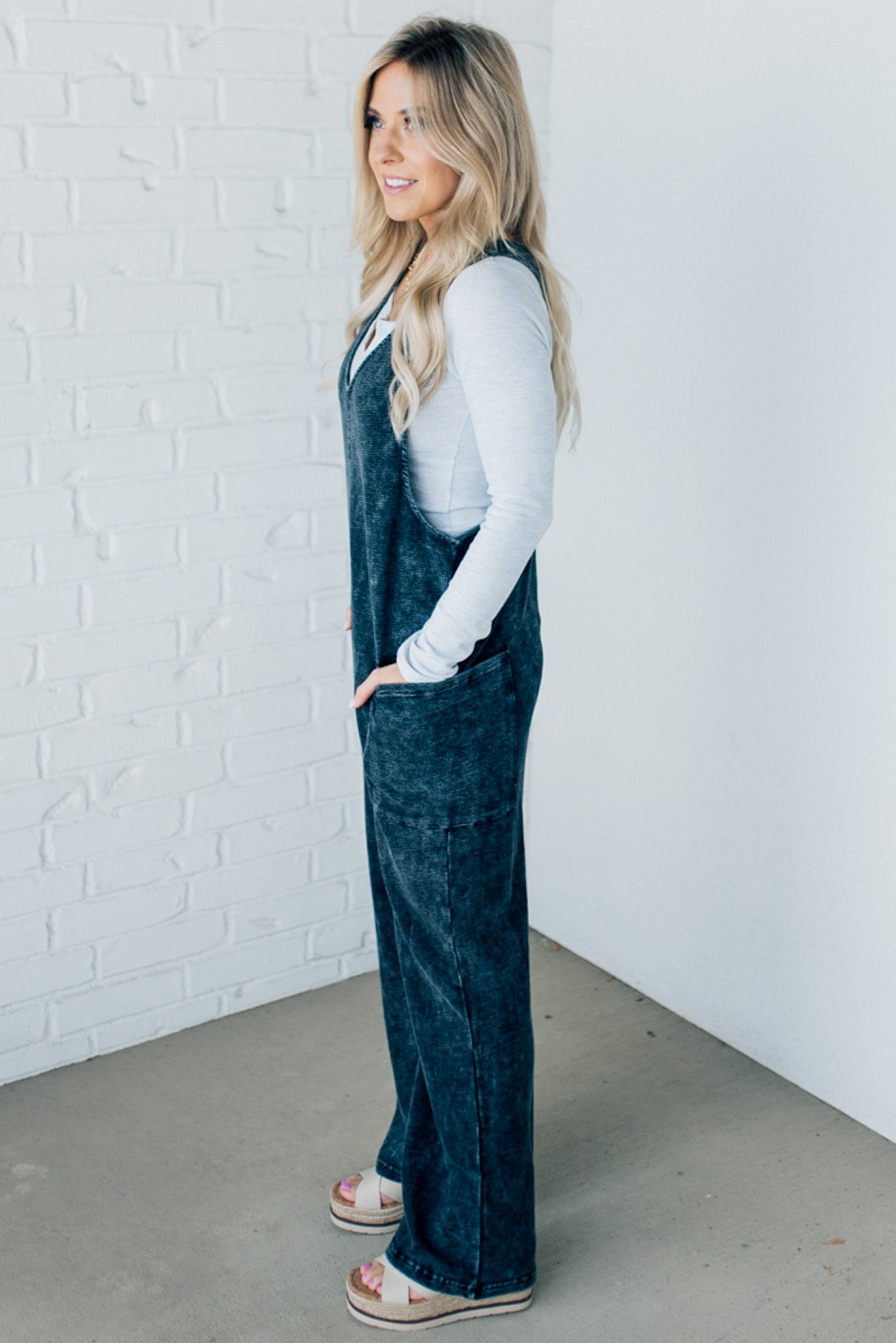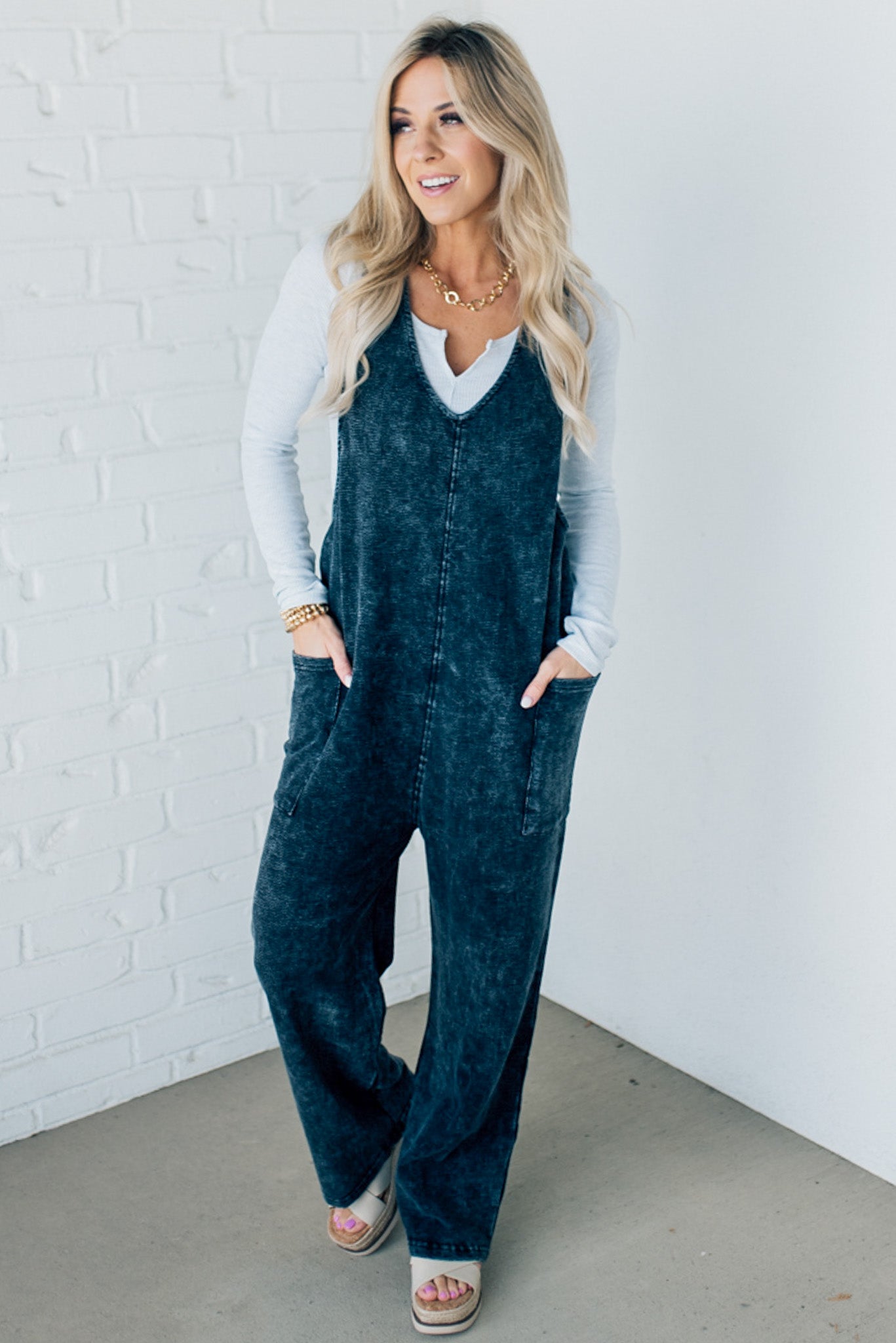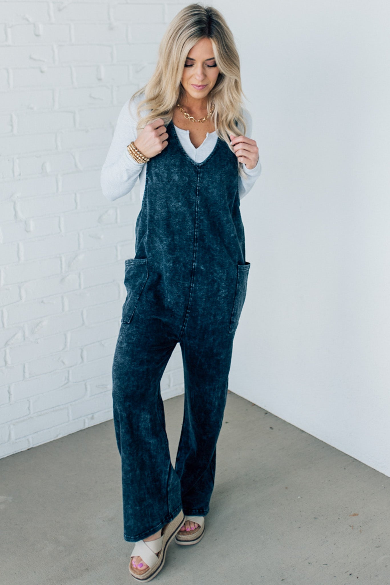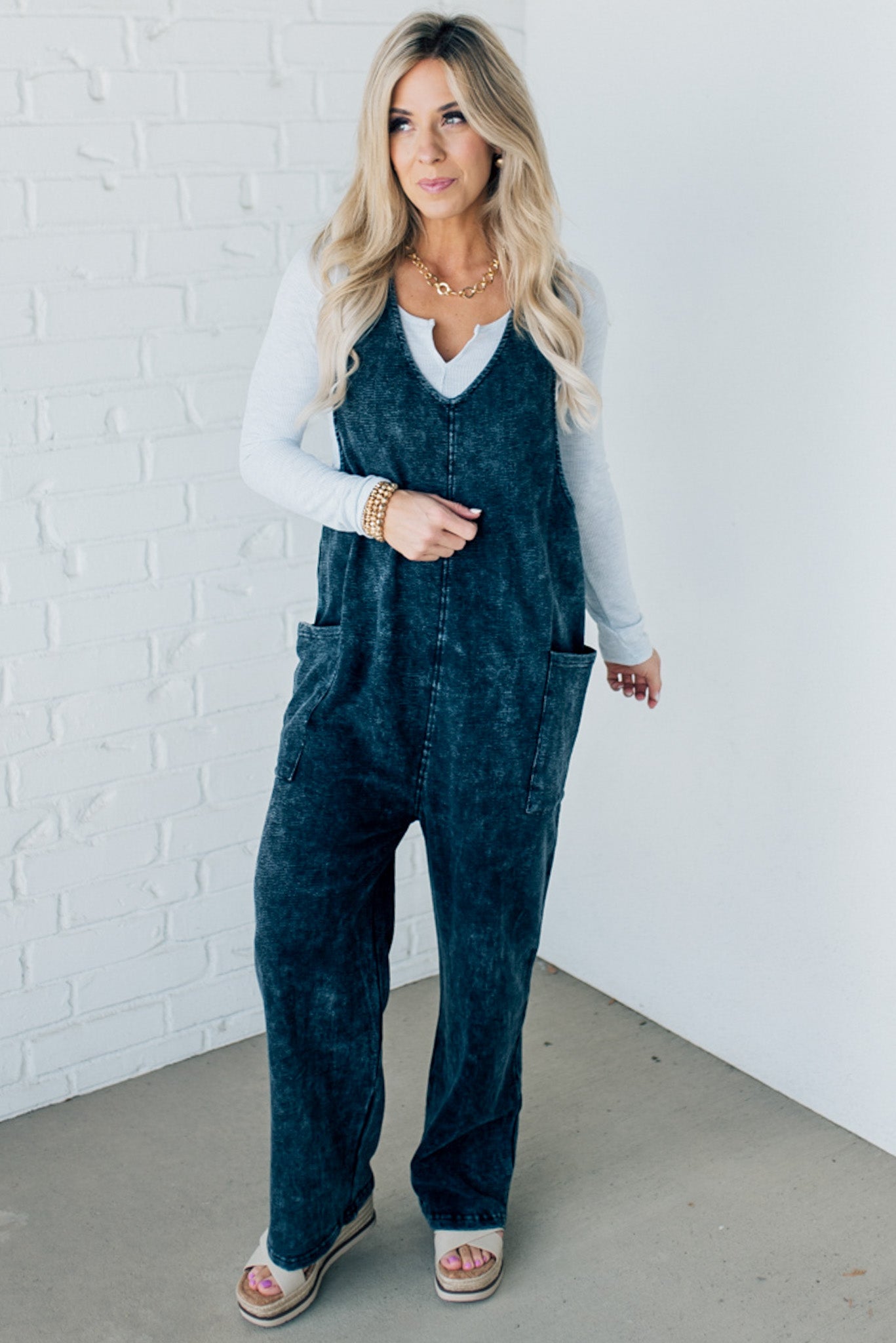 Introducing the Shauni jumpsuit, the ultimate combination of comfort and style. Made from mineral-wash jersey fabric, this oversized romper layers perfectly over tees or bralettes. With a unique knot detail at the back and patch pockets for added functionality, this jumpsuit is perfect for lounging or a casual day out.