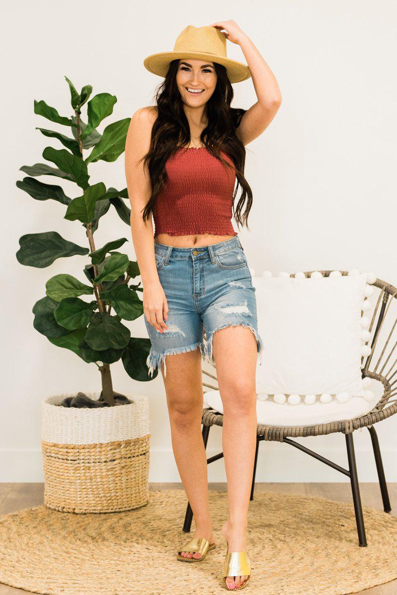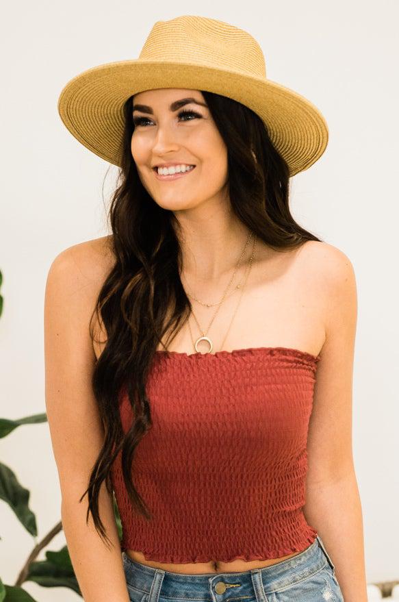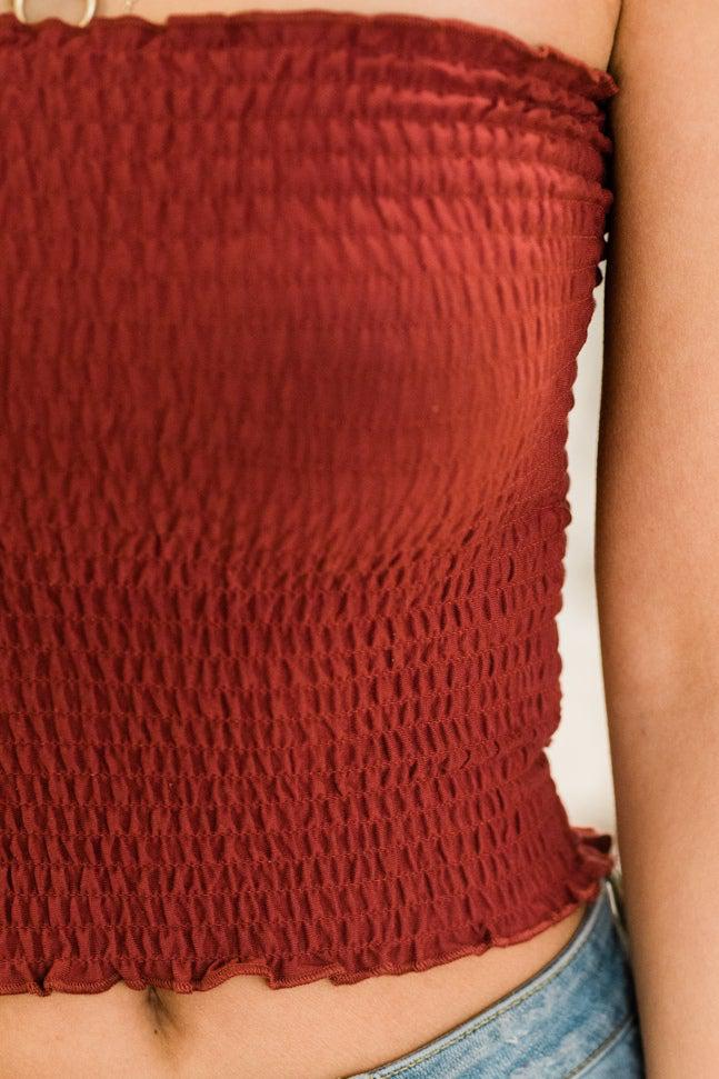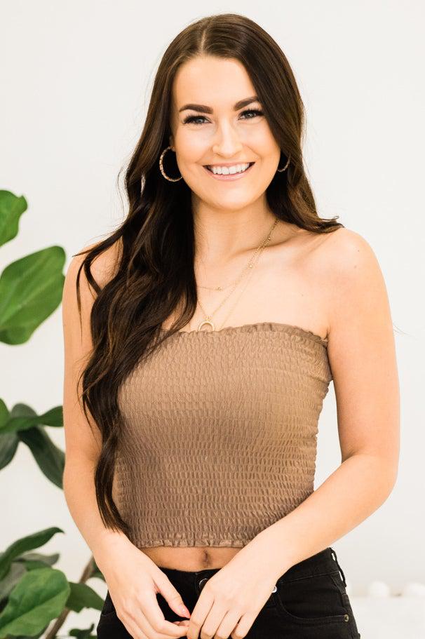 Perfectly smocked tube top ready to pop through as an accent to layer up as you head out in the morning, and stand out with her dreamy texture when the day warms up!