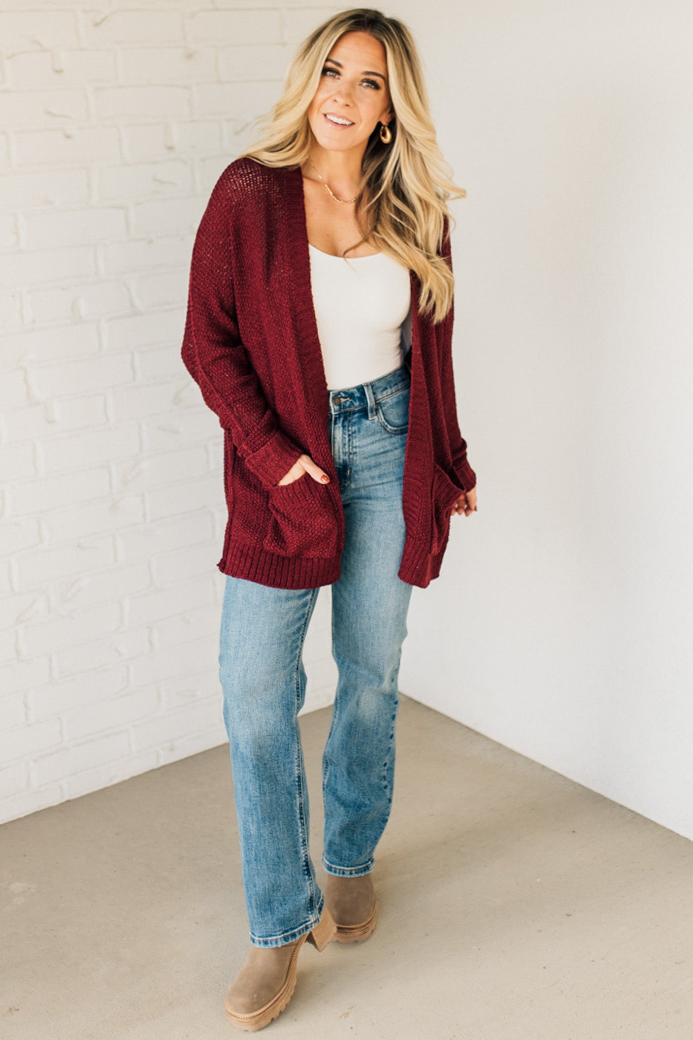 Stay cozy and stylish with our Waverly Slouchy Knit Cardi! This cardigan features a relaxed fit and open front design, complete with front pockets for added convenience. Perfect for lounging or running errands, this cardigan will elevate any outfit.
