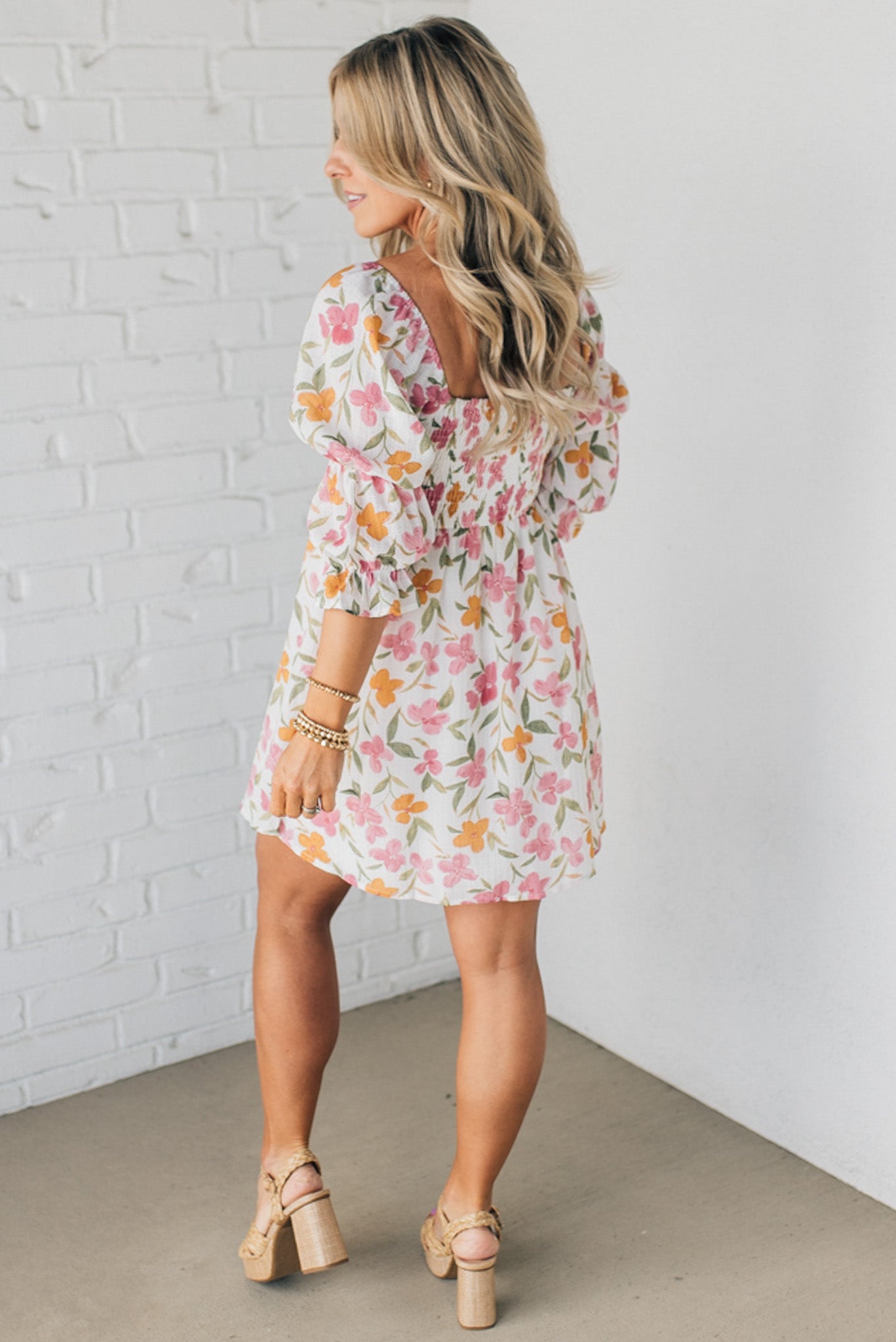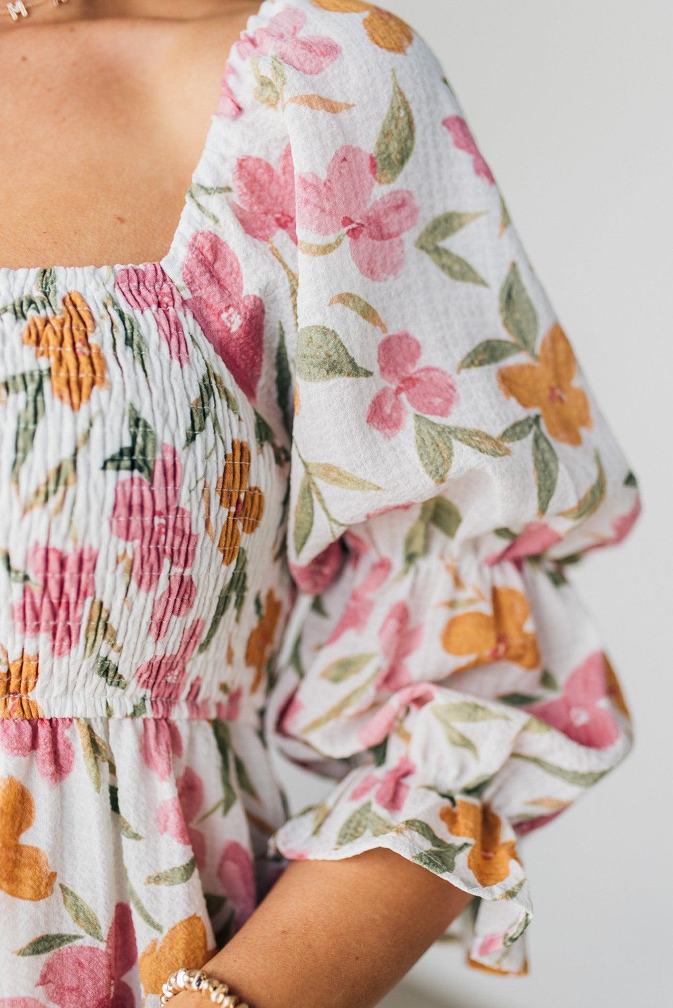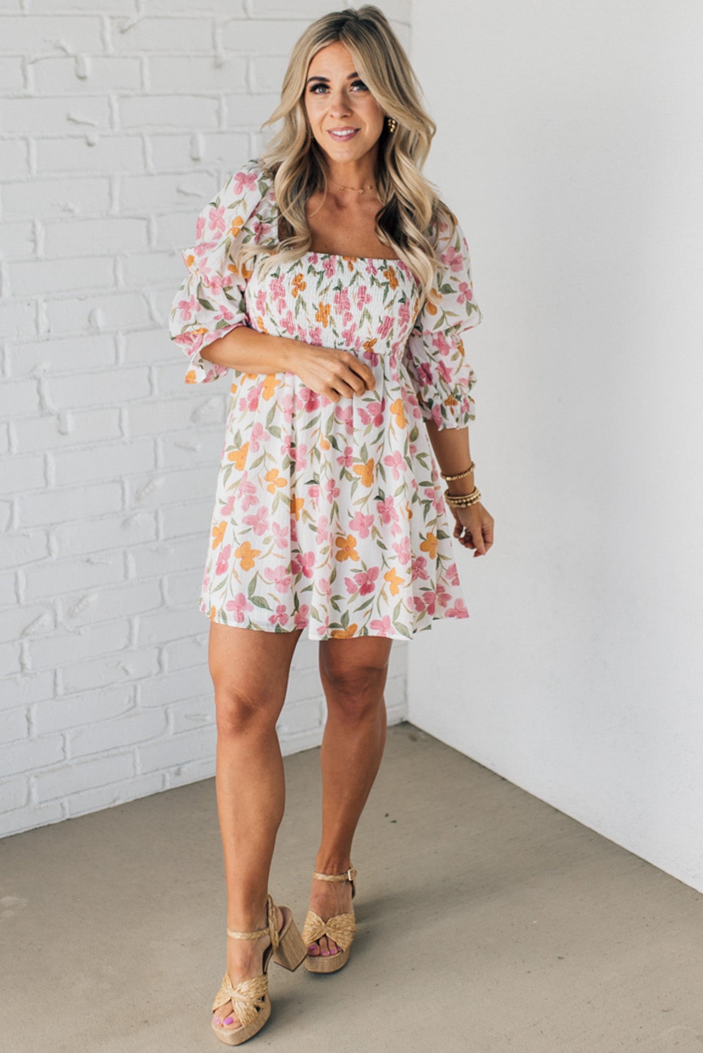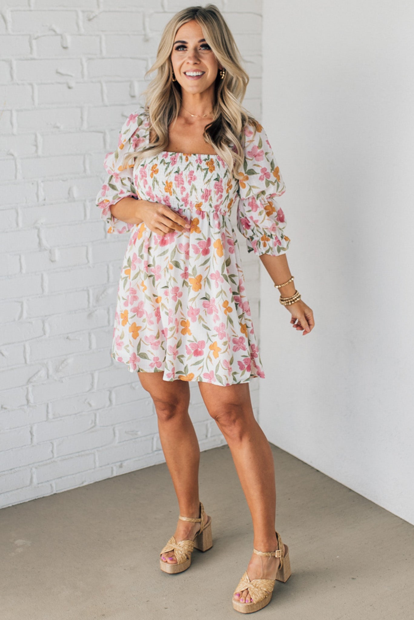 Get ready to turn heads in the Aurelia Floral Mini Dress. This fun and flirty dress features a gorgeous floral print, smocked details, and flowy peasant sleeves. The babydoll silhouette is perfect for any occasion, making you feel confident and stylish.