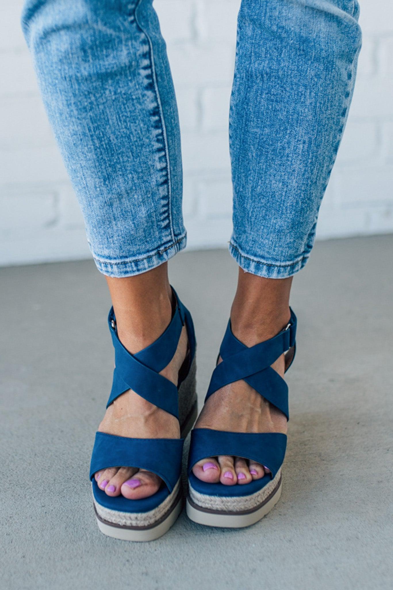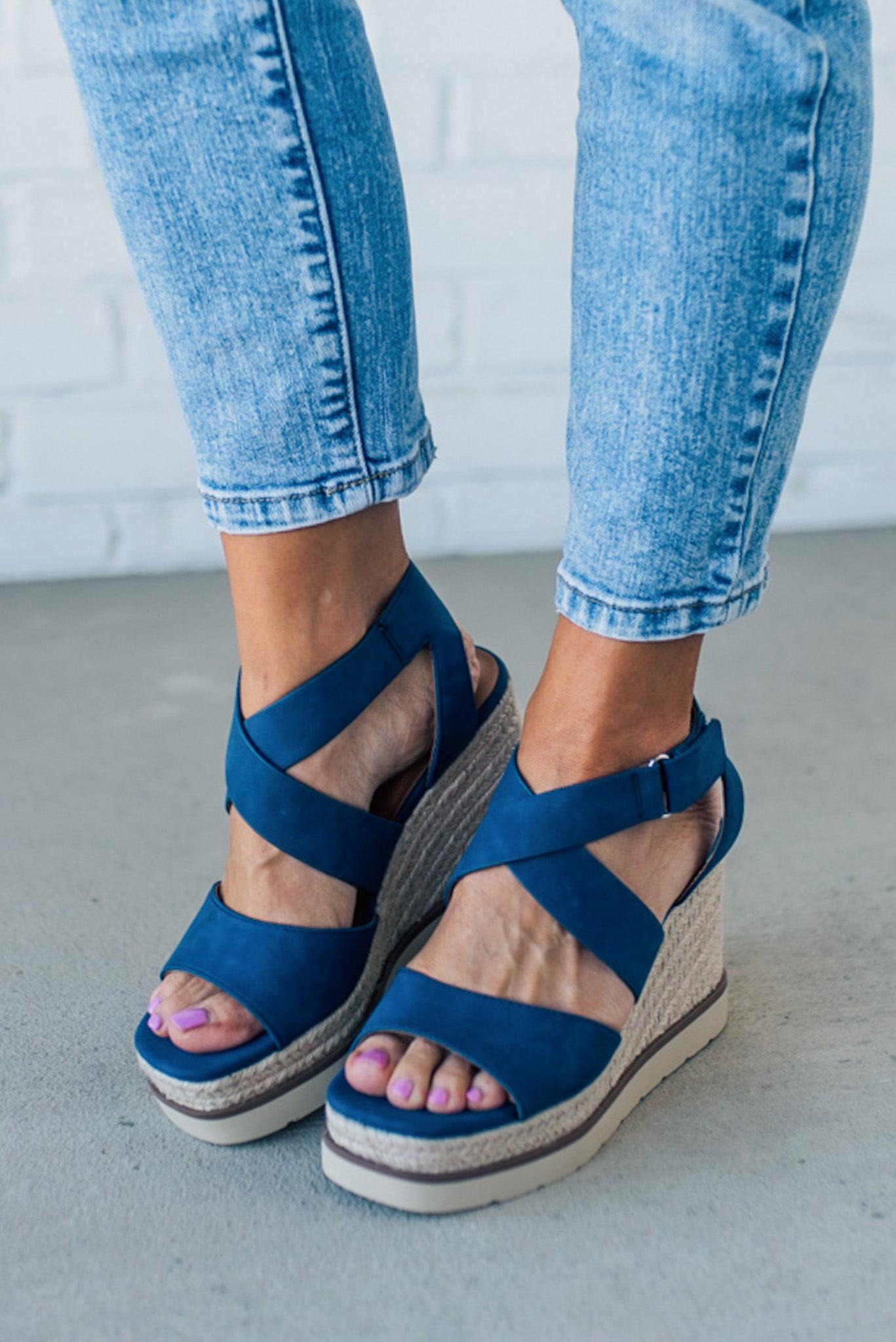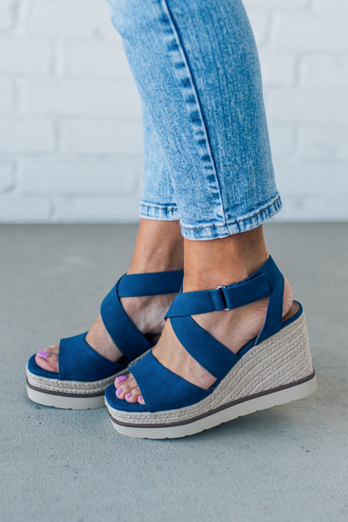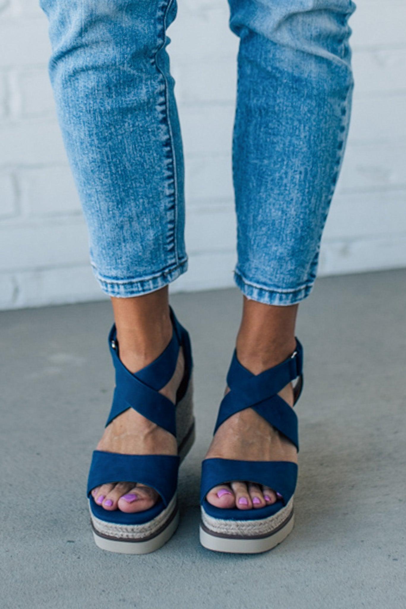 Elevate your style with the Courtney Espadrille Platform Wedges! These navy faux suede strappy sandals feature a trendy wedge heel for added height and comfort. Perfect for a night out or a day at the beach, these wedges will take your outfit to the next level. Step up your fashion game now!