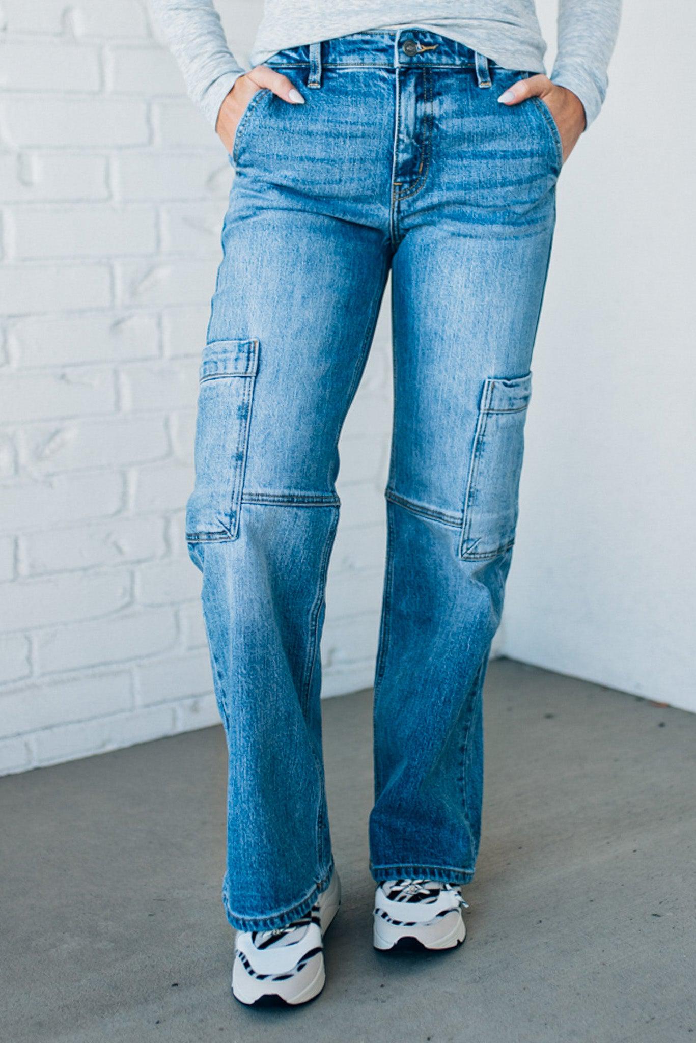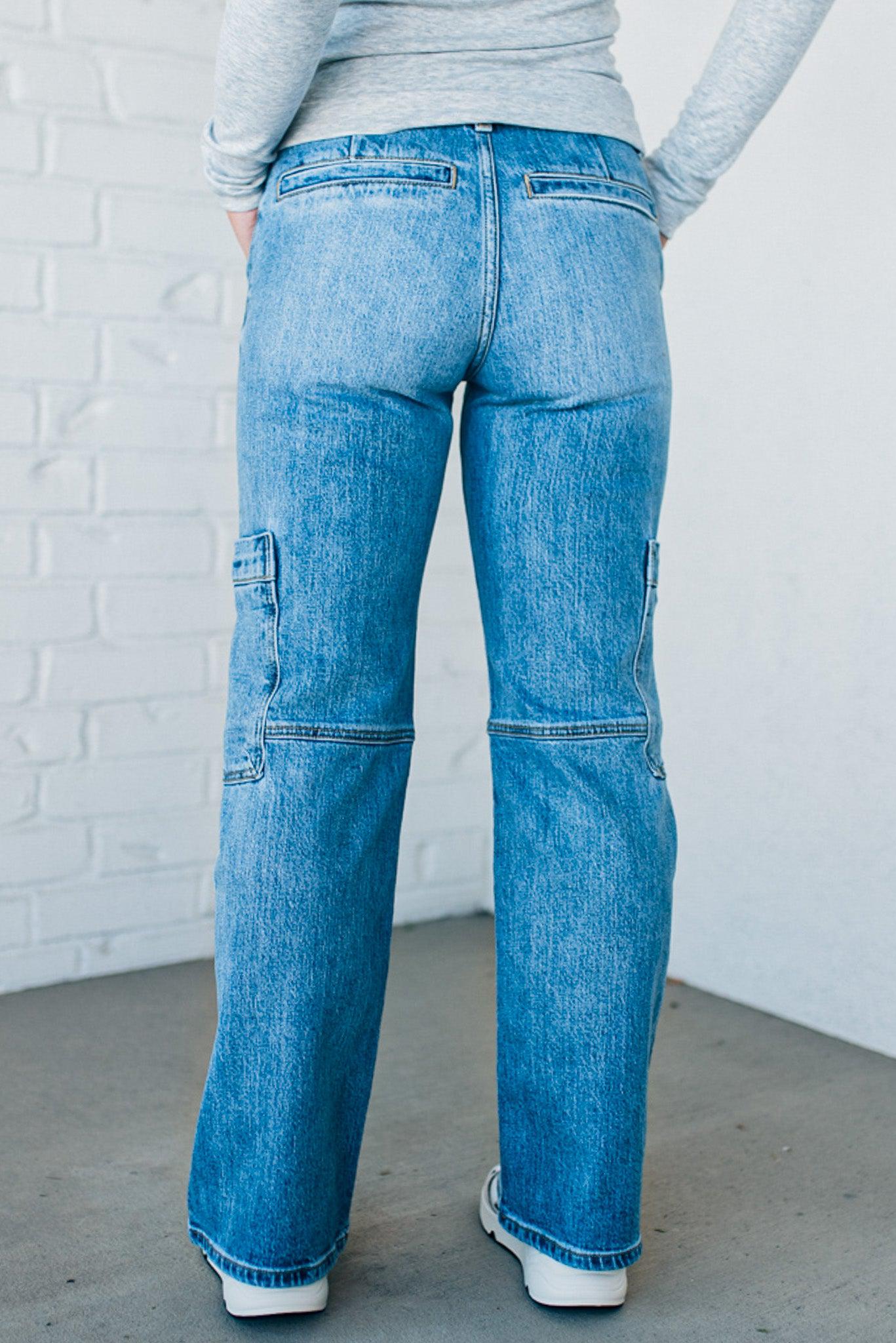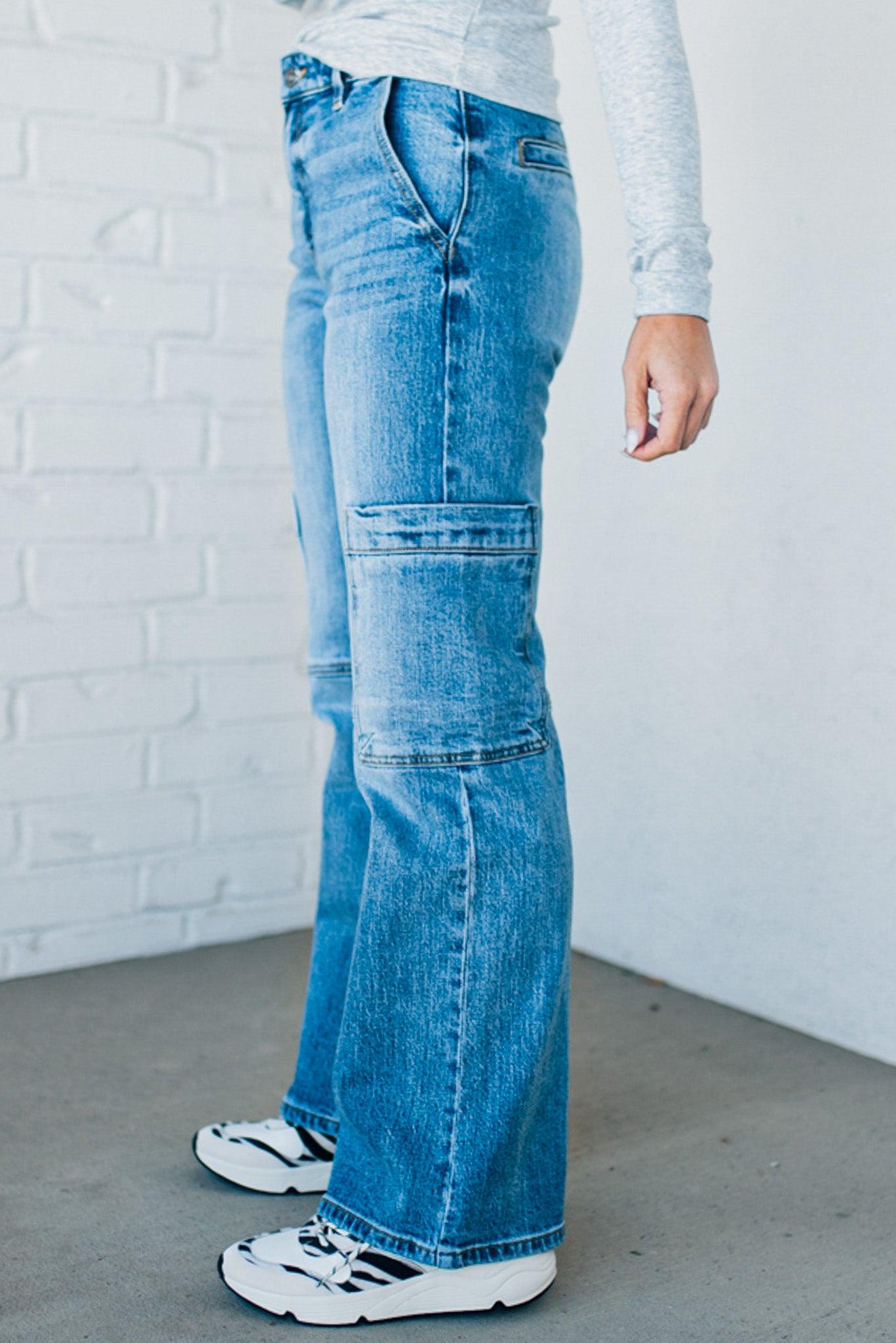 Heather Mid Rise Cargo Jeans - KANCAN
