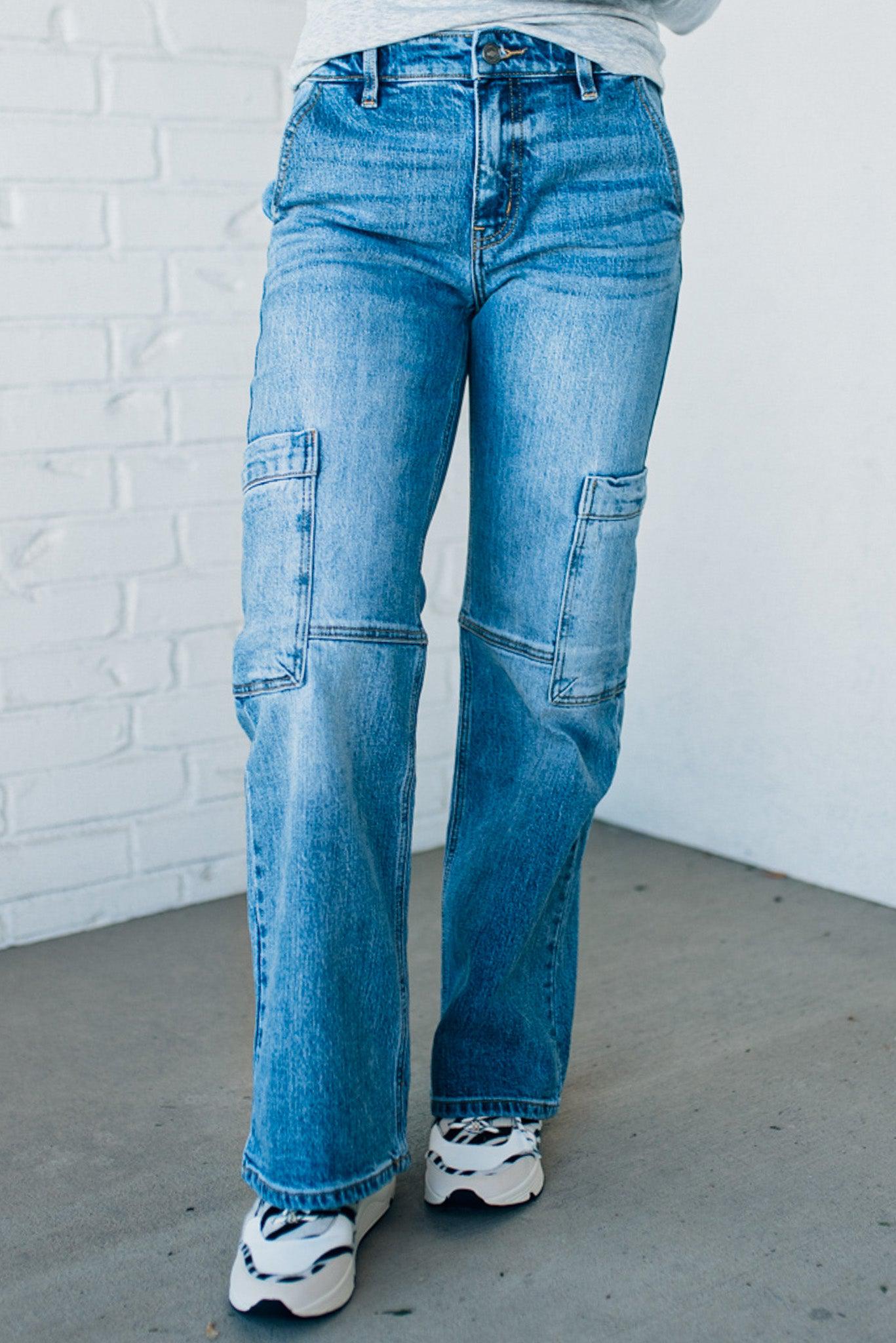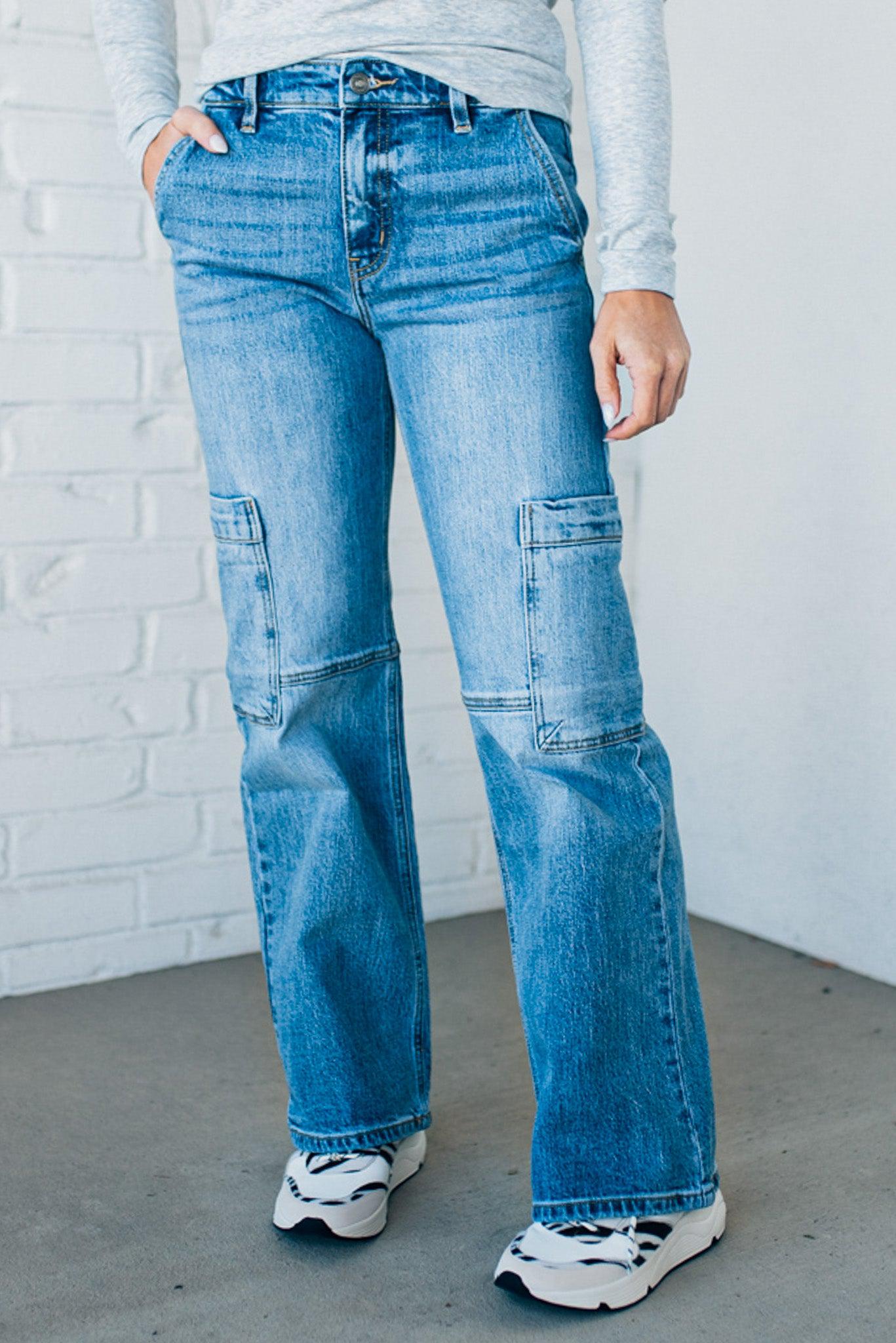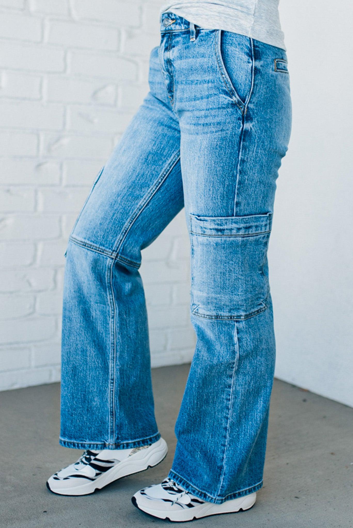 Heather Mid Rise Cargo Jeans - KANCAN