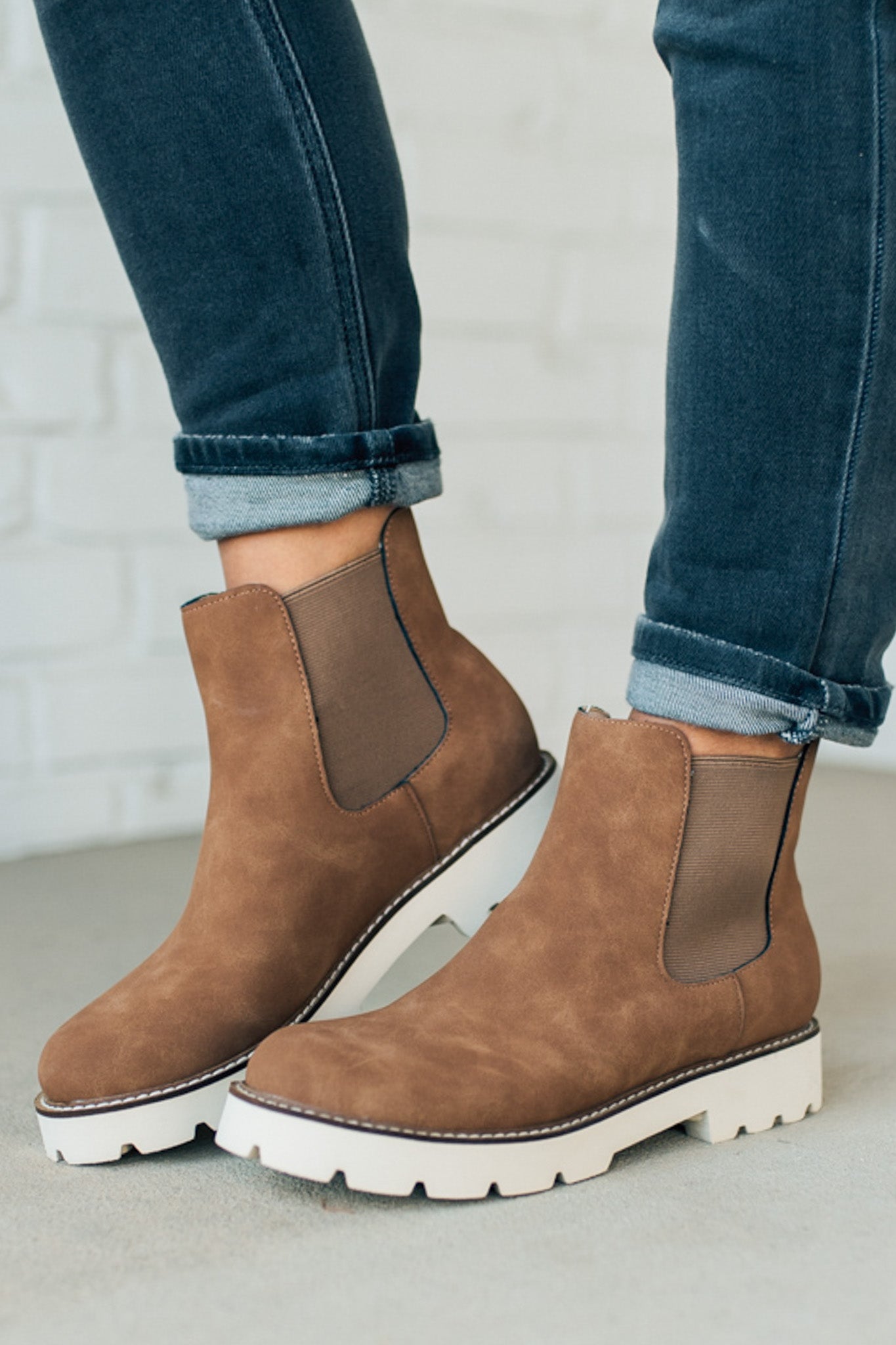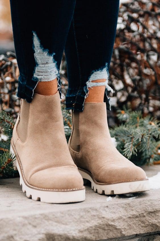 Super comfy pull on ankle height boots. With a stretch side, and chunky platform, these boots will keep your toes warm and dry all day!