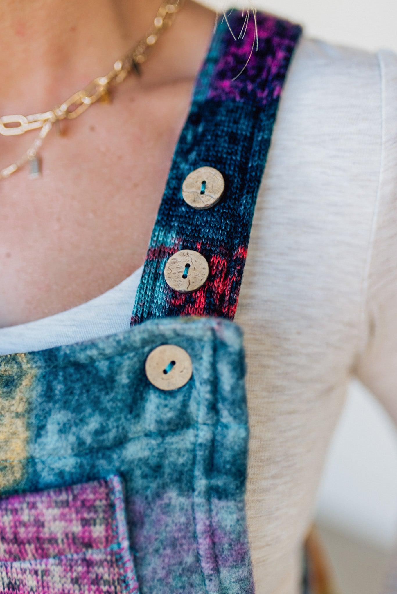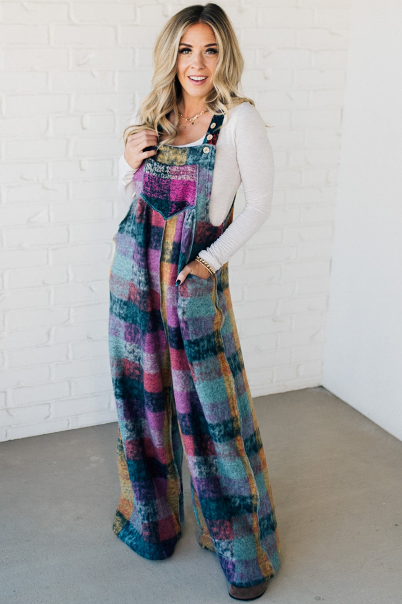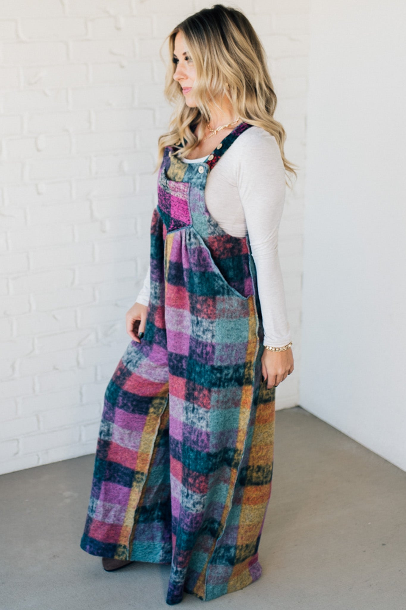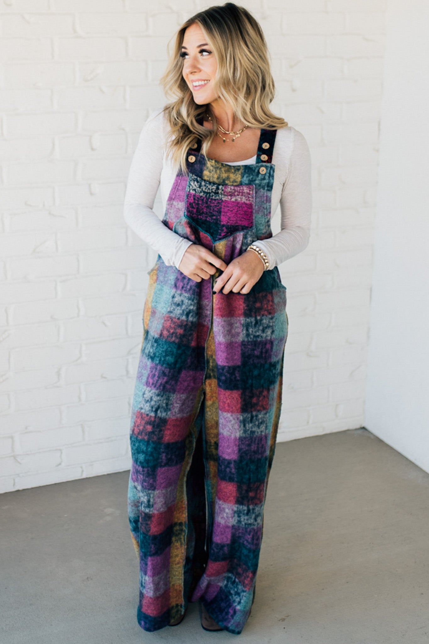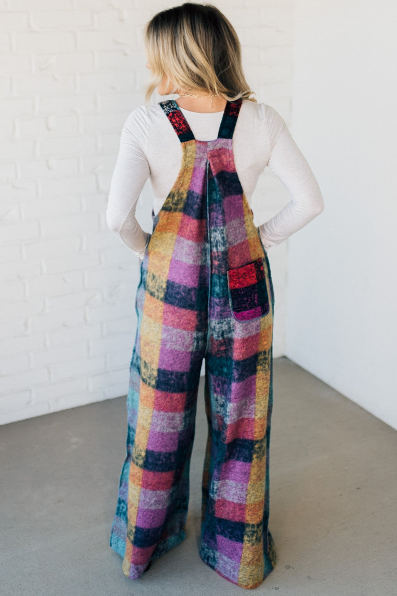 Add some sass to your wardrobe with our Brushed Multi Check Overalls! These soft and cozy overalls feature a playful multi-color plaid pattern and ultra-wide leg fit. The adjustable button straps make for a customizable and comfortable fit. A perfect addition for those looking to make a statement (and stay warm!) this season.