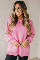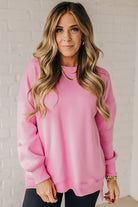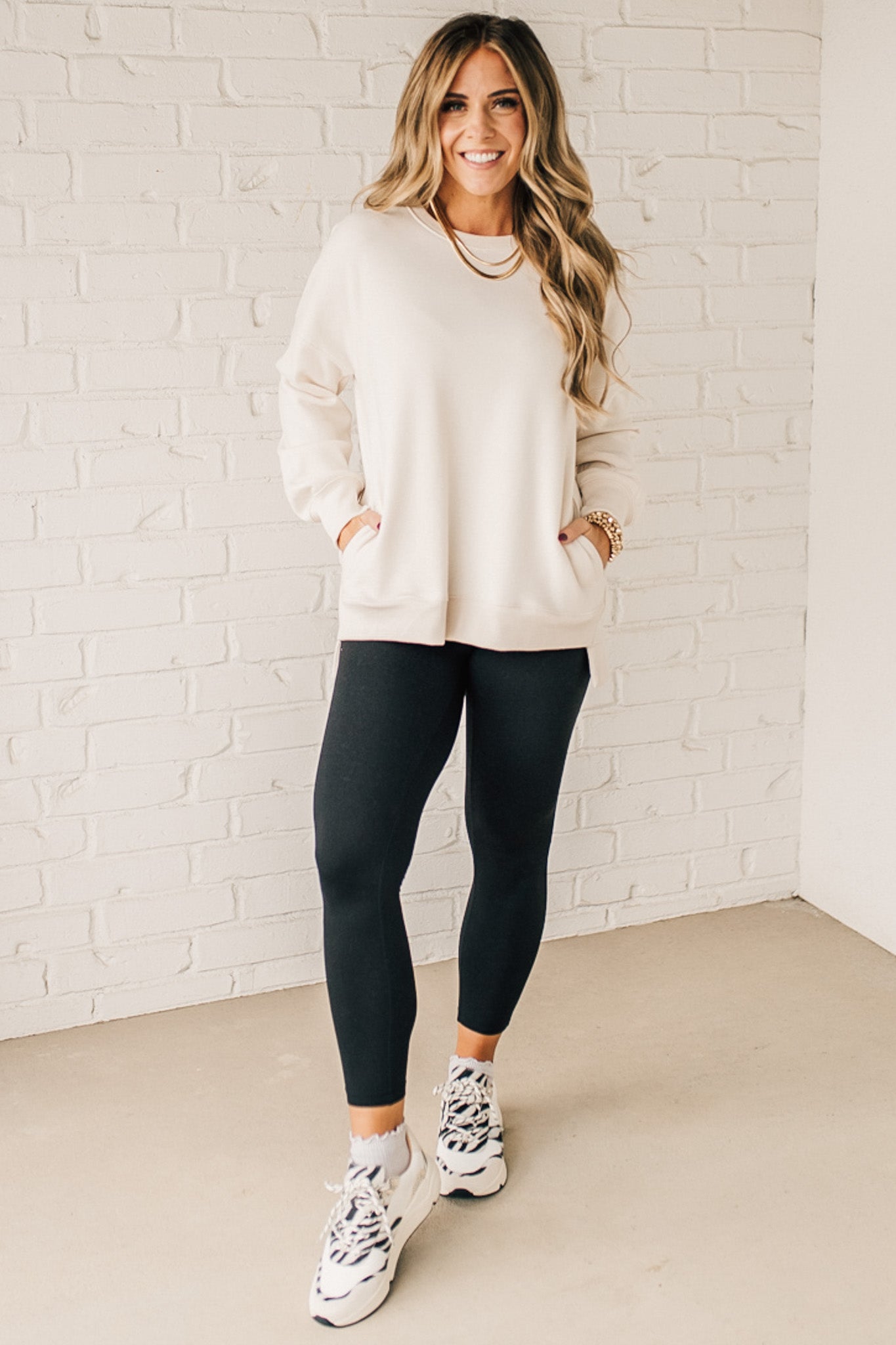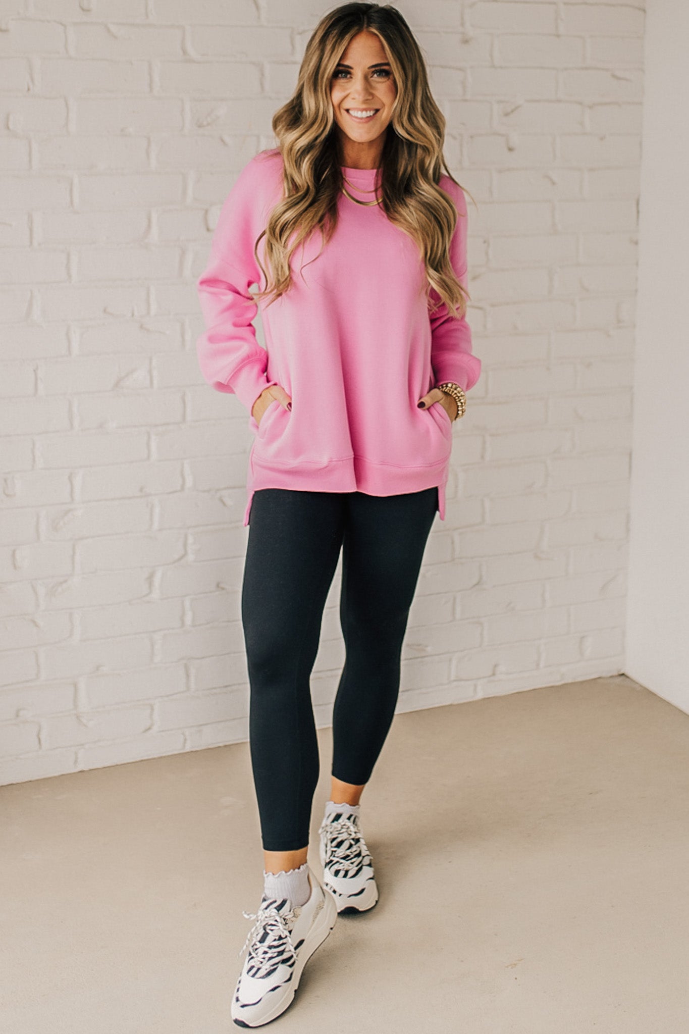 Stay cozy in style with our Mandi High Low Fleece Pullover! Made with soft fleece, this boyfriend-style sweatshirt features a trendy high-low hem and convenient pockets. Perfect for lounging or running errands, it's a must-have addition to your wardrobe. (Fleece + high-low hem + pockets = maximum comfort and chicness!)