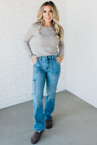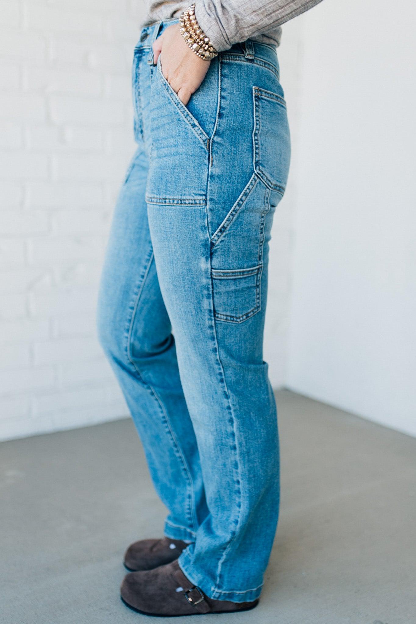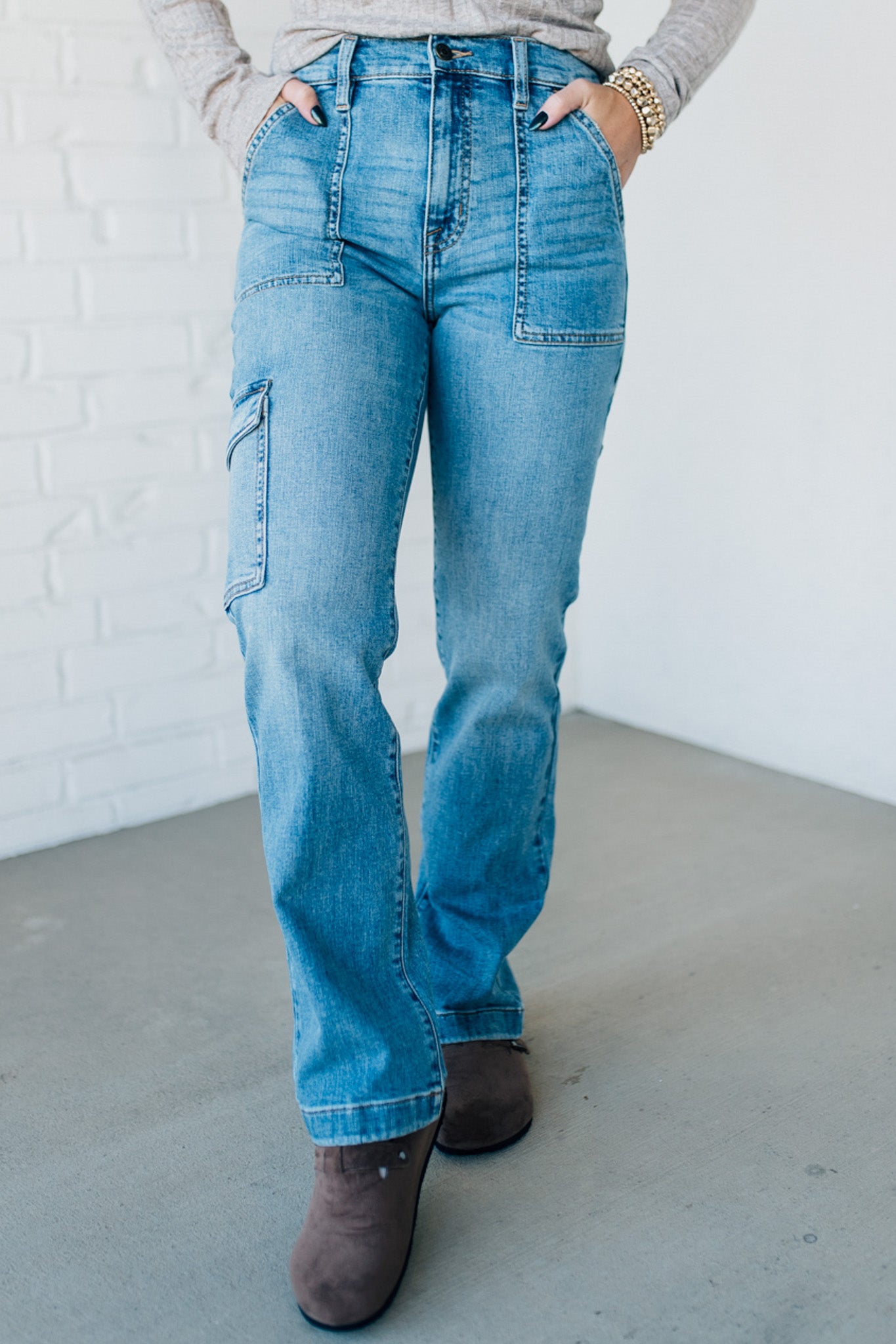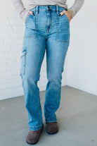 Get ready to rock the dad jean trend with our Maverick High Rise Cargo Dad Jeans! These relaxed fit straight jeans come in a medium wash with fading, whiskering, light tinting, and slight distressing for that effortlessly cool look. The cargo pocket design and belt loops provide both style and functionality, while the hidden zip fly with button closure keeps it sleek. With an 11 inch high rise and 31 inch inseam, these jeans offer a loose fit from thigh down for ultimate comfort. Say goodbye to boring jeans and hello to the ultimate cool dad look!