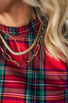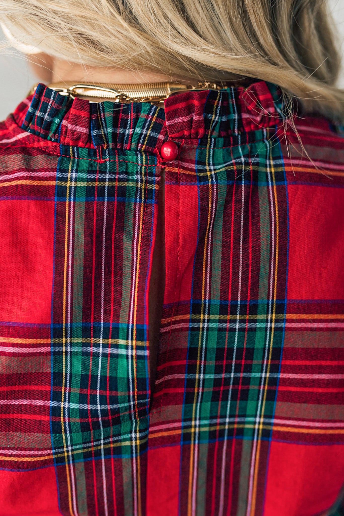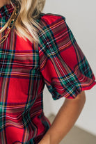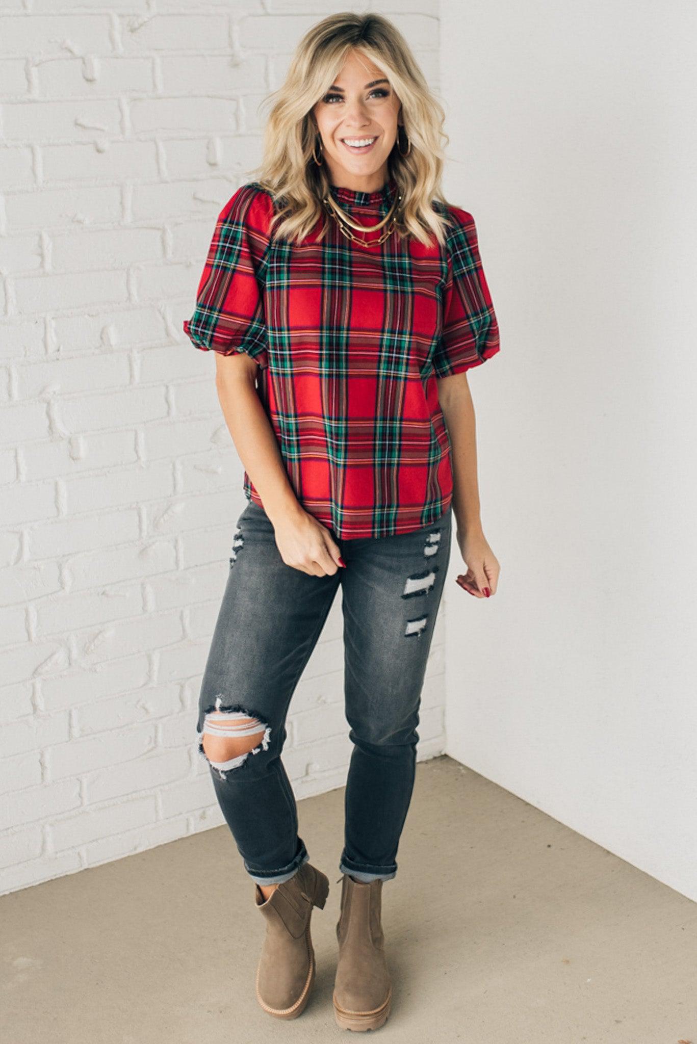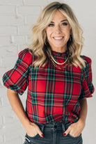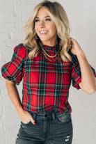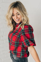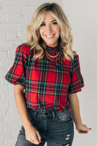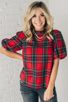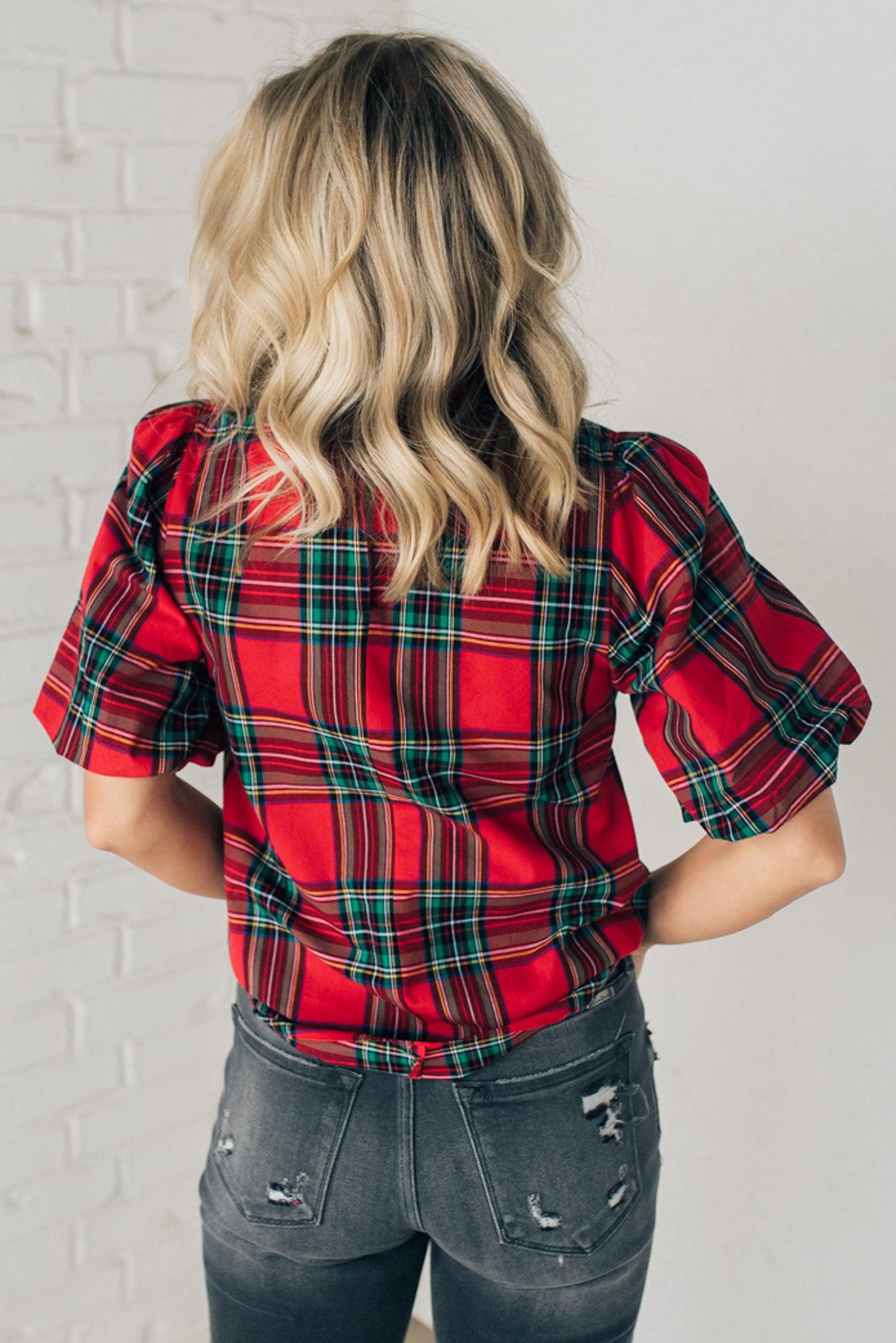 Holiday Plaid Bubble Sleeve Top