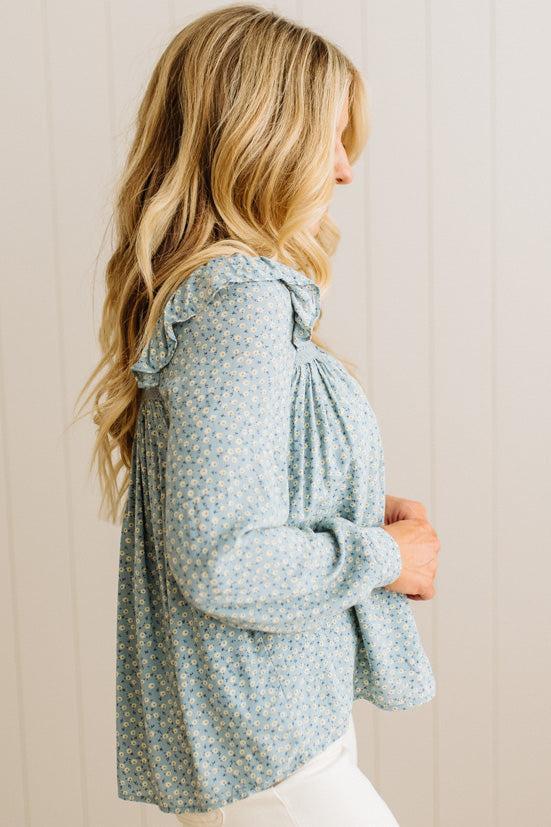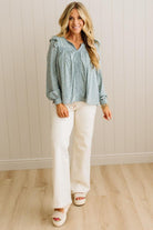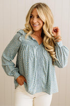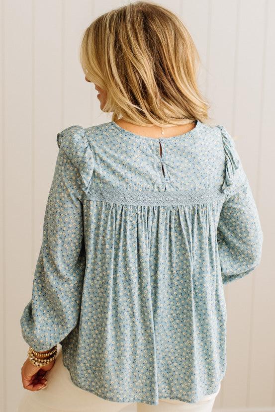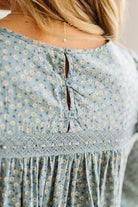 The sage blue floral print whispers instead of shouts, while delicate cotton lace details add that special something that makes people ask where you got it. The flowing silhouette skims your body in all the right ways, and those three buttons at the back? Pure thoughtful design that keeps everything sitting just right.