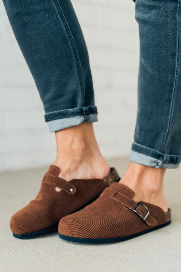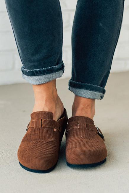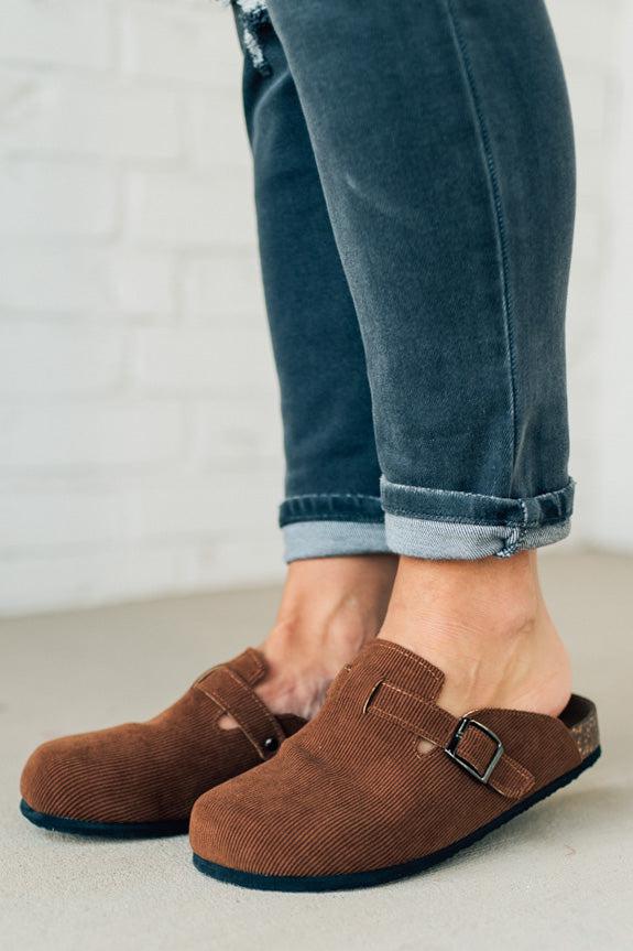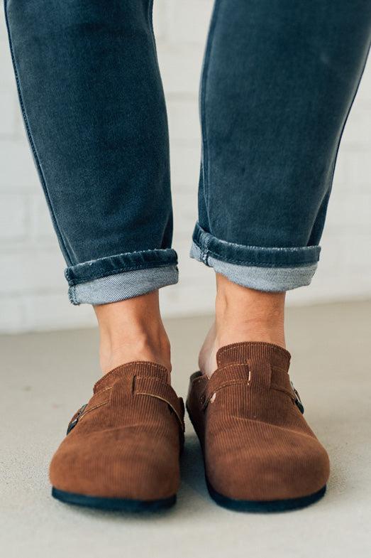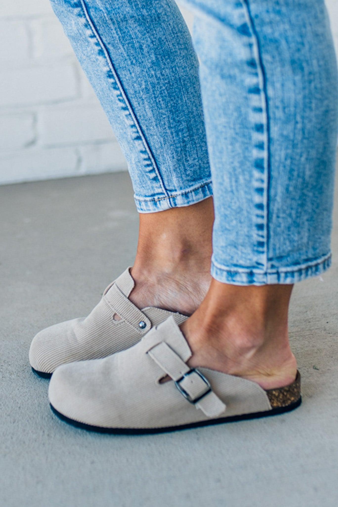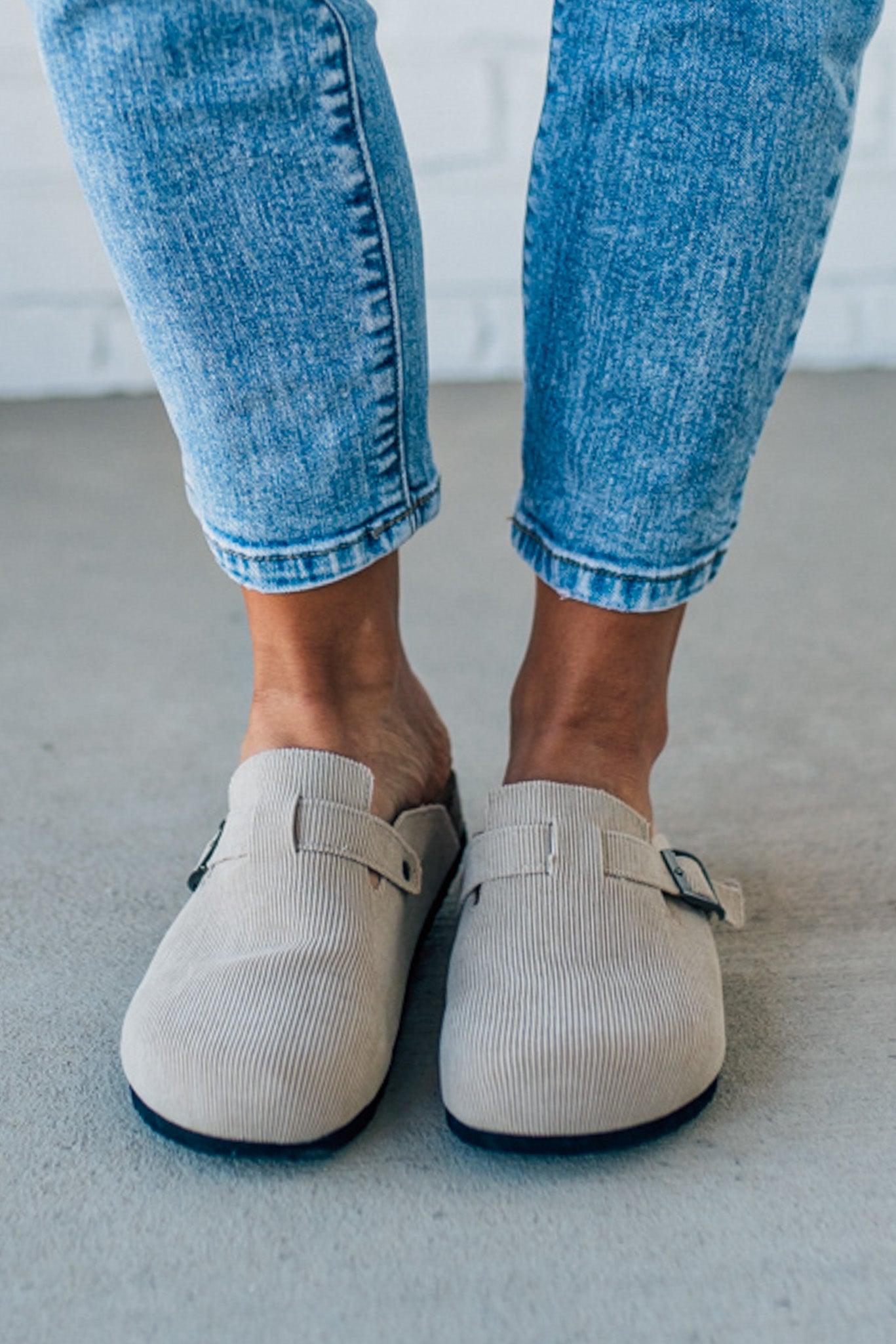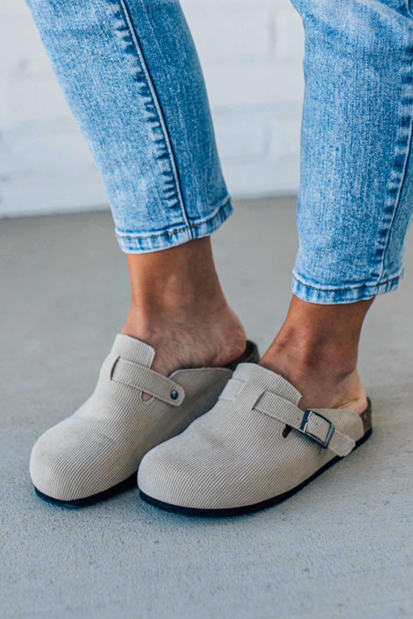 The Nolan Slip On Mules are a fashionable and comfortable option for every day. Crafted from soft mini ribbed corduroy and detailed with a cute side buckle, they provide a roomy wide width and easy on and off design. Perfect for work, play or a night out.
