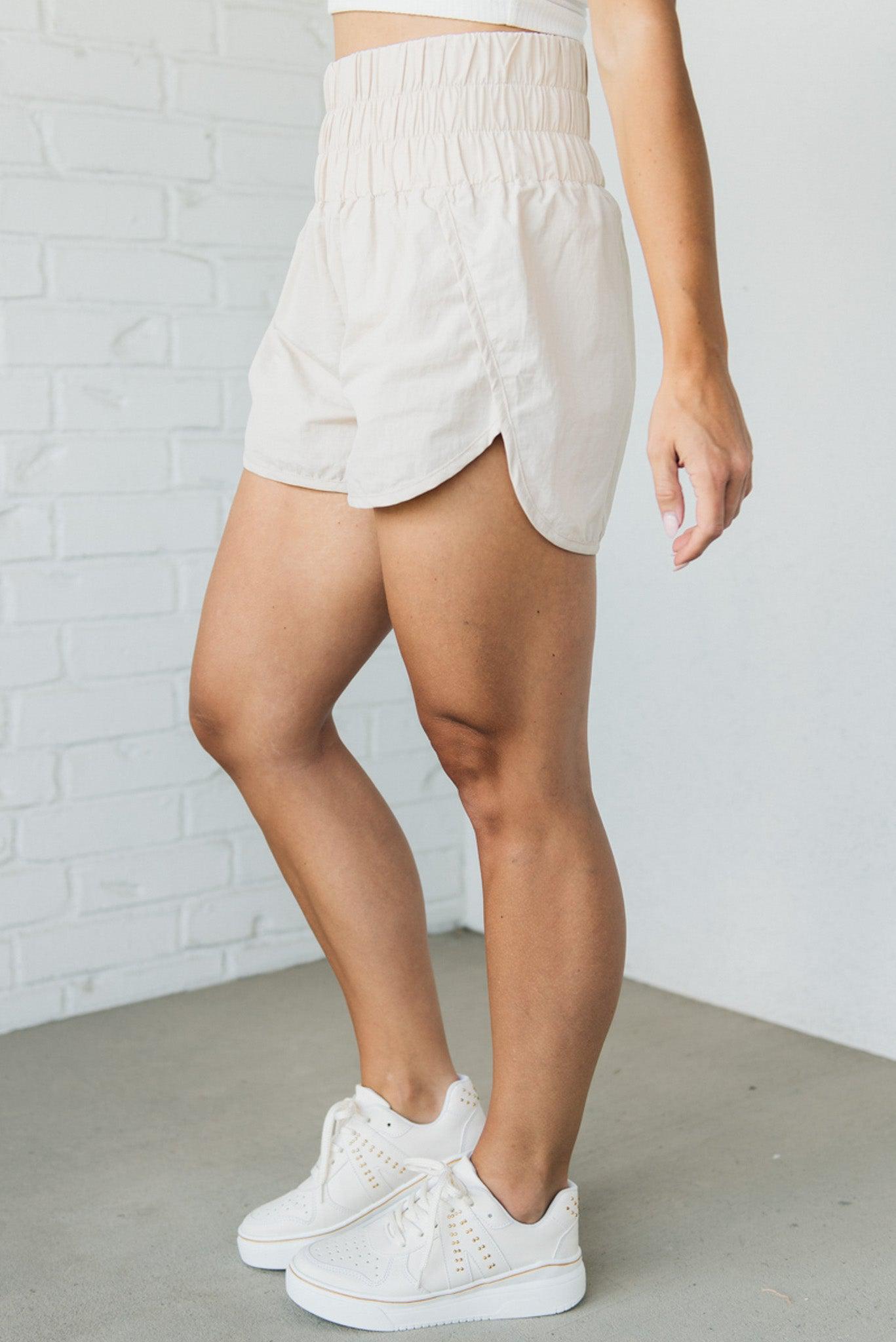 Our Smocked Waist Athletic Shorts are a must-have for any fitness enthusiast. They have a wide, smocked waistband for a comfortable and secure fit, a high-low cut for maximum movement, a parachute style for a relaxed fit, a high thigh hidden liner for extra coverage, a center back hidden pocket, and a rounded hem for an effortlessly stylish finish.