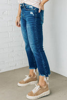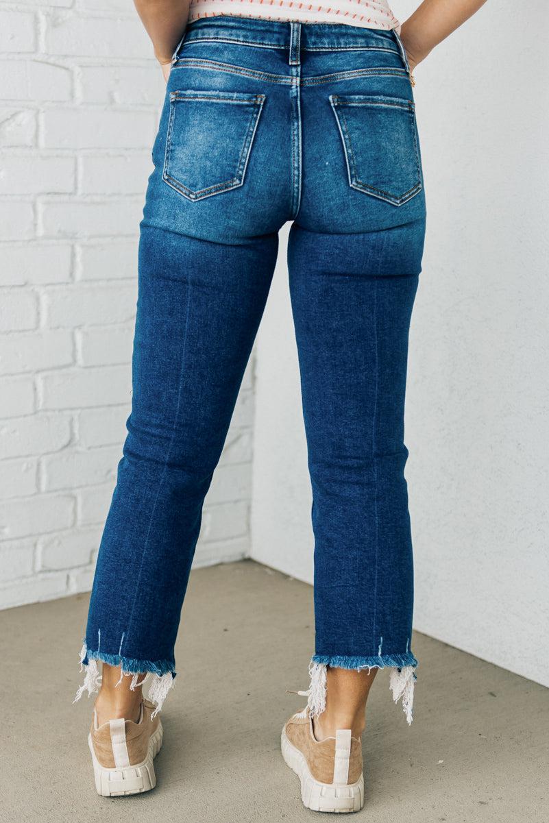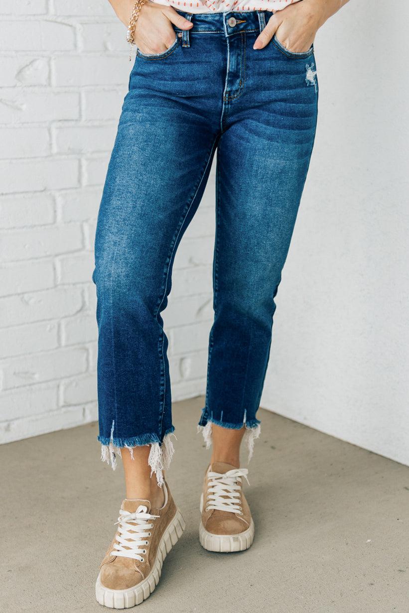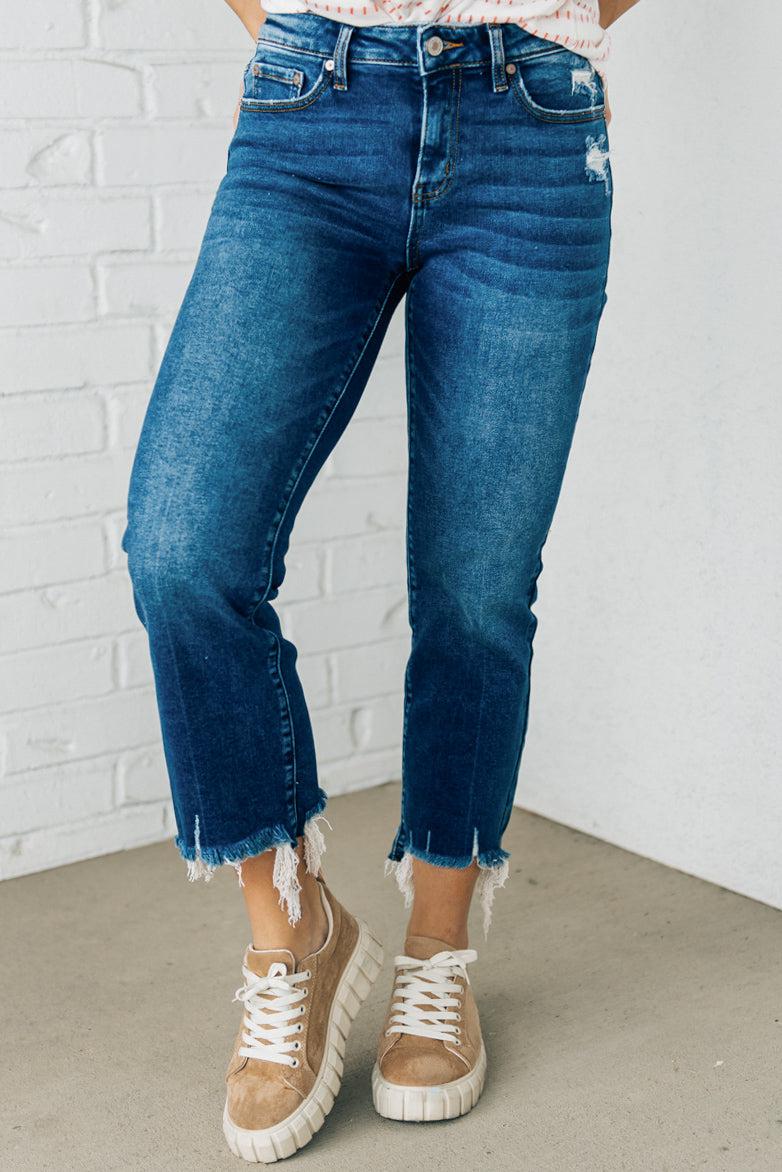 The Theo frayed crop jeans will be your go-to for any occasion! These ultra-chic jeans boast a stylish kick flare, a frayed edge and a dark-wash denim hue. Show off your sass-factor with a cropped hem and have them envy-ing your bold fashion sense! Feel confident and ready to take on anything the world throws your way, while still looking your best.
